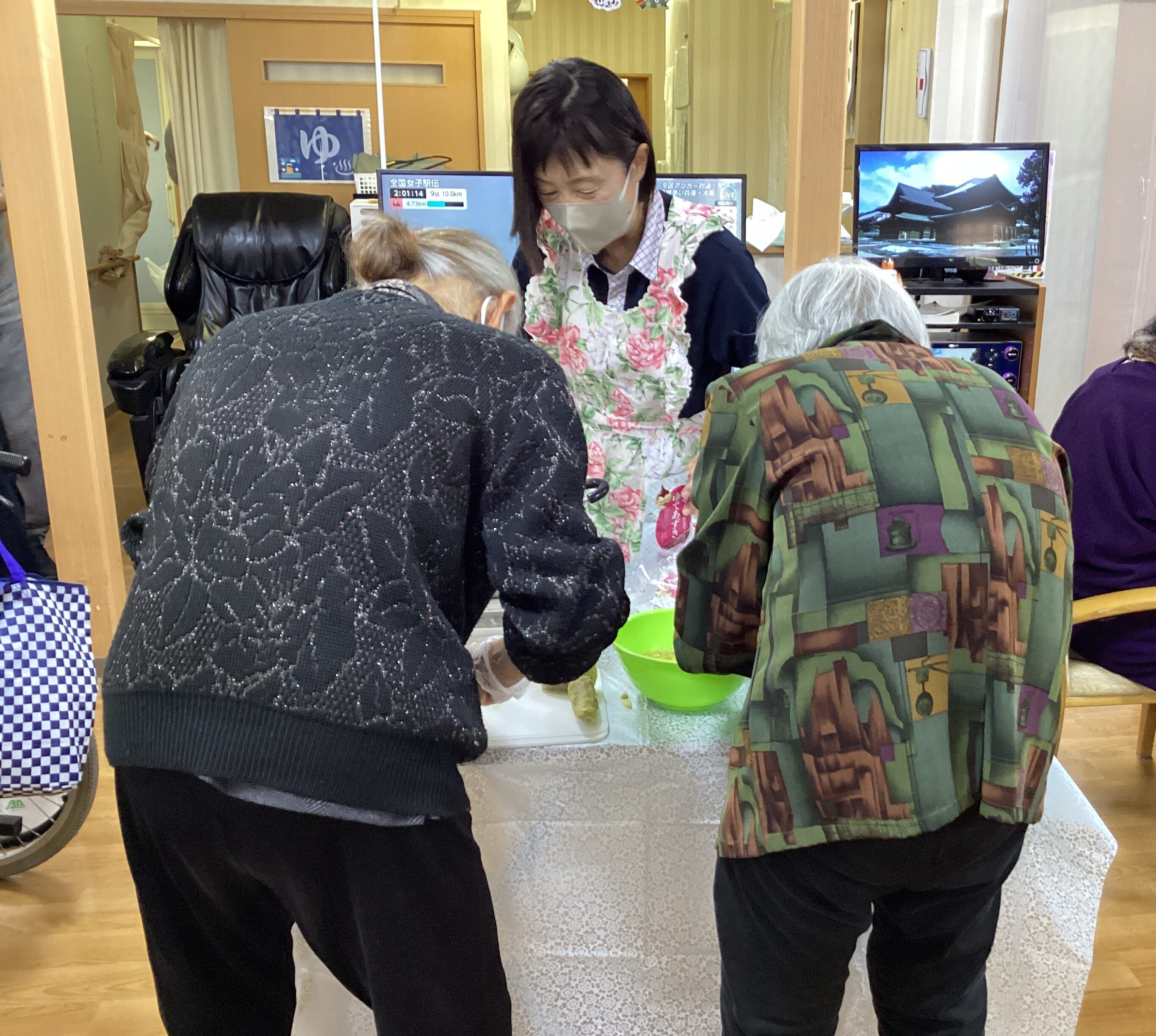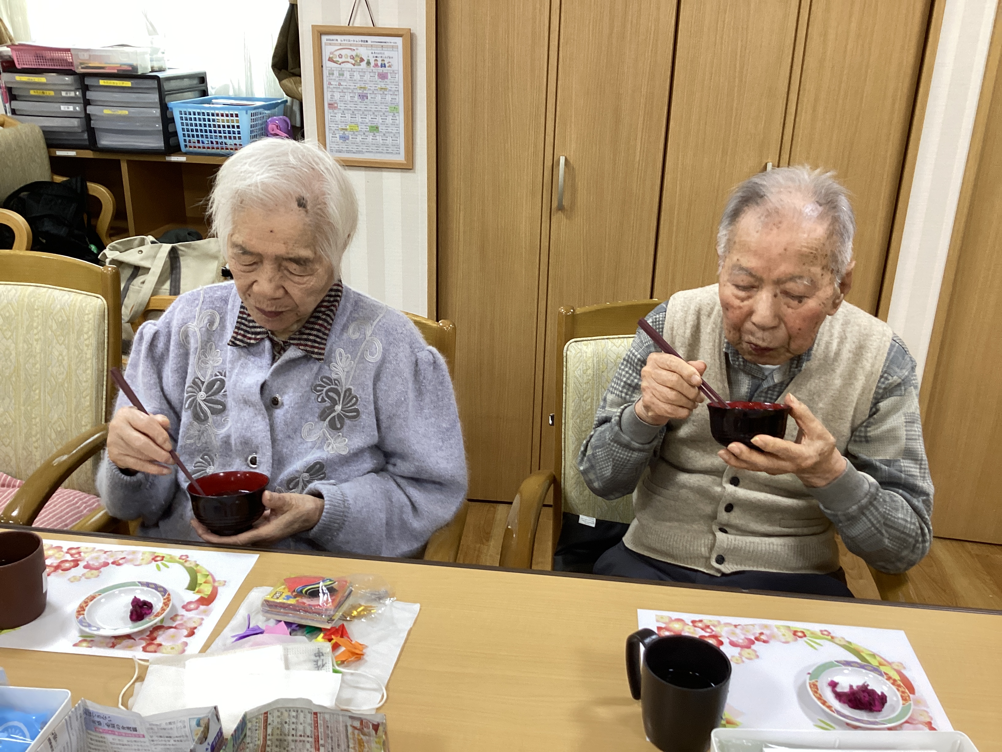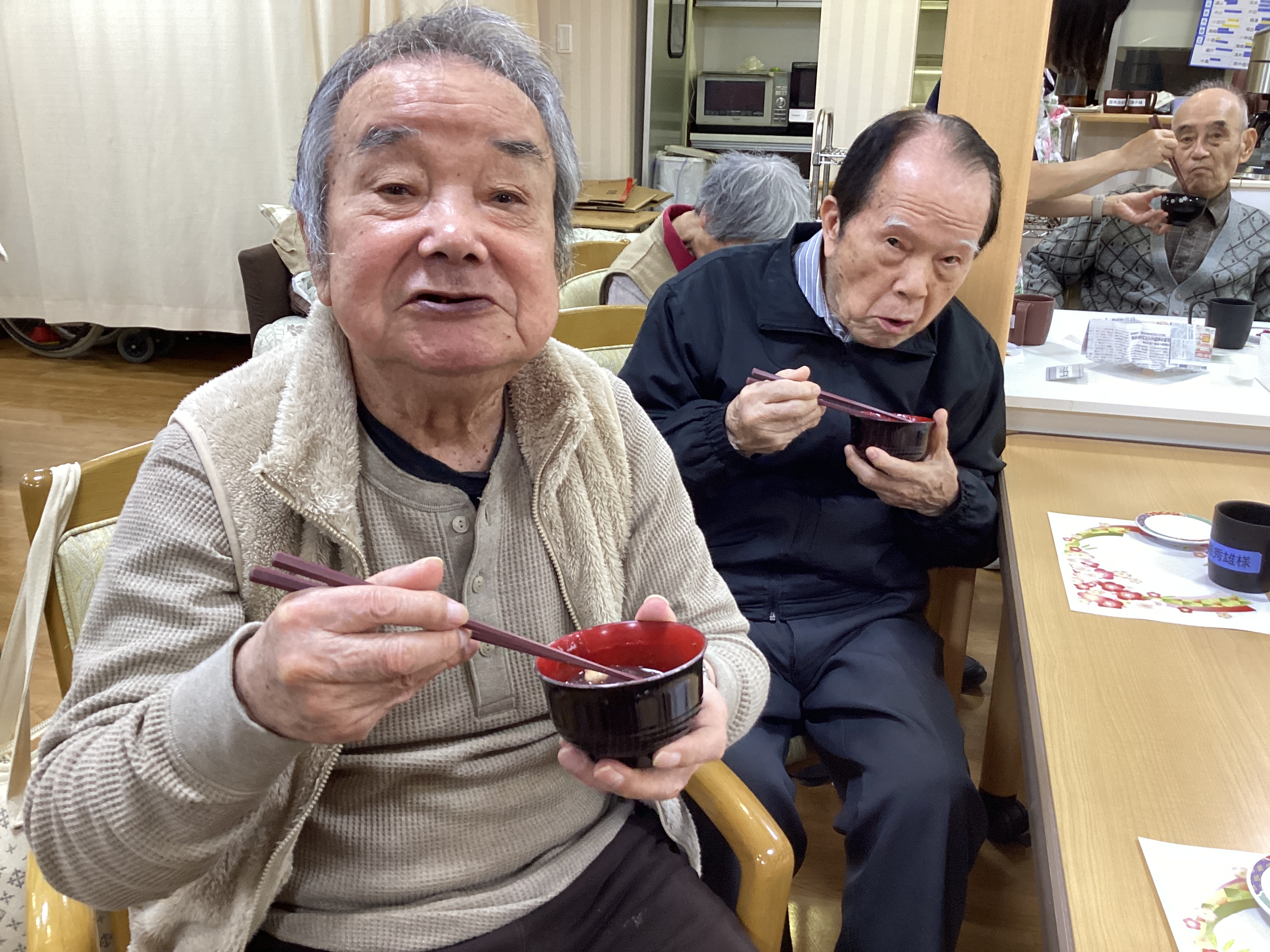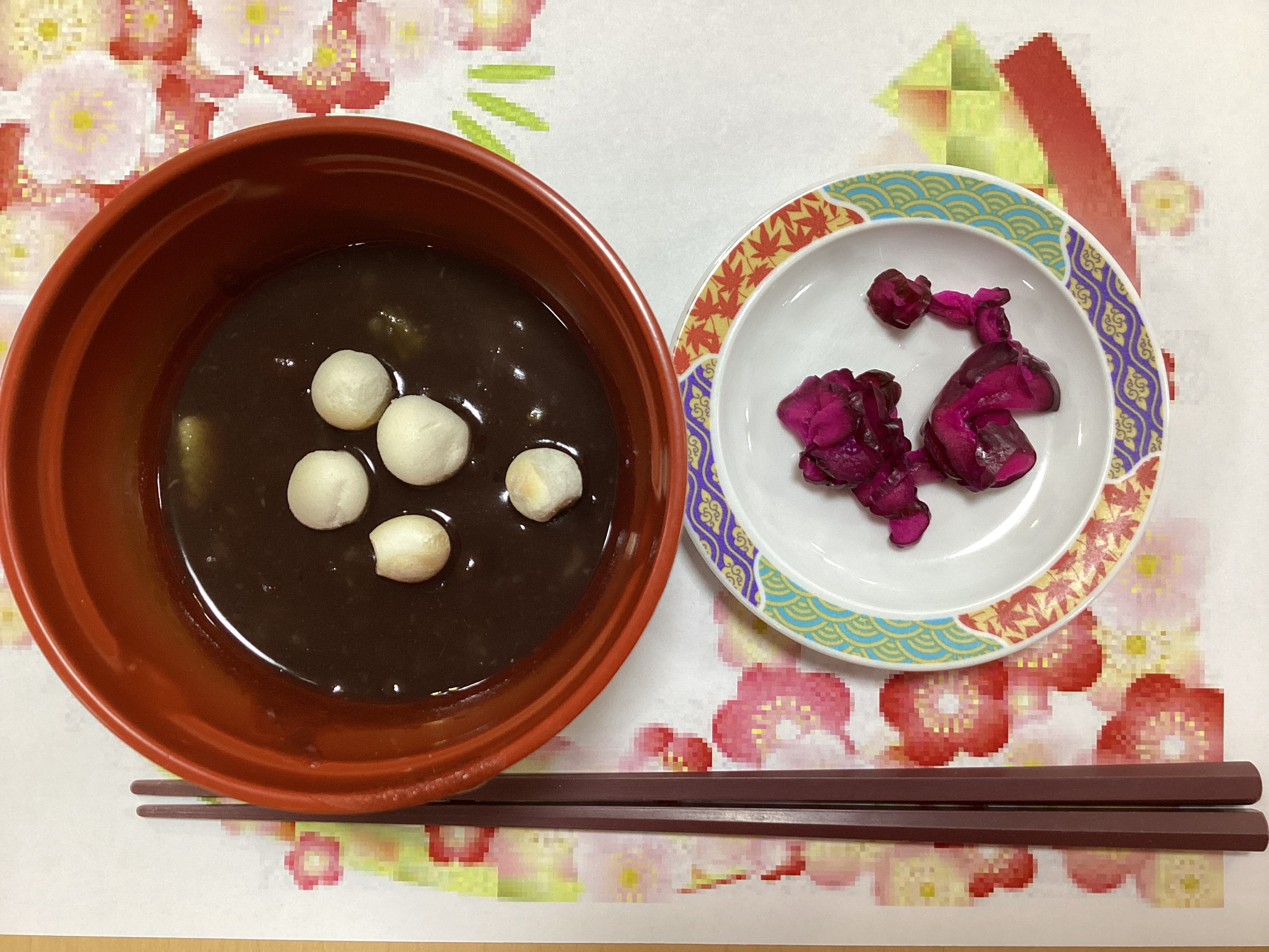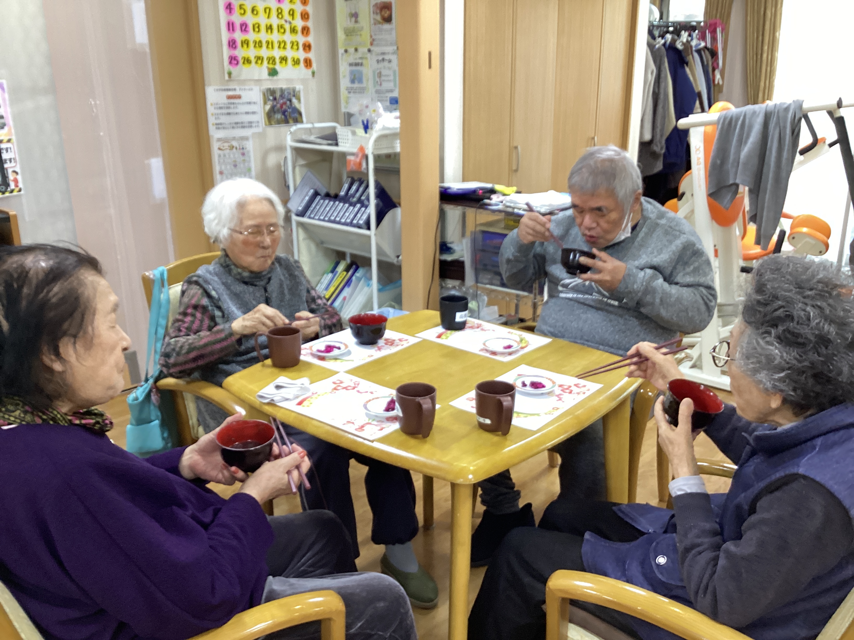 1月11日、鏡開きのこの日のおやつは白玉ぜんざいです! 皆さんと一緒にぜんざいを作り美味しくいただきました♪