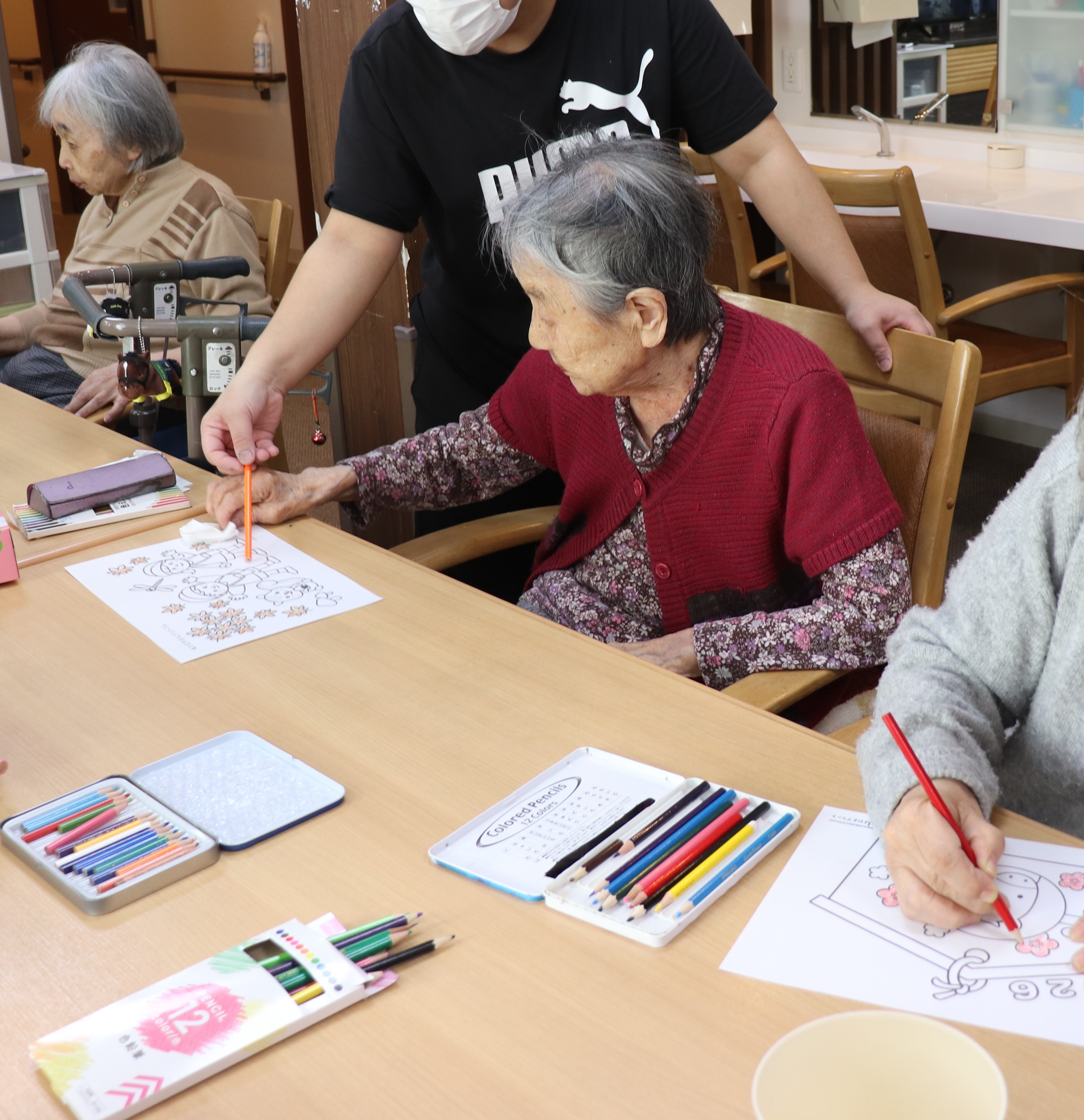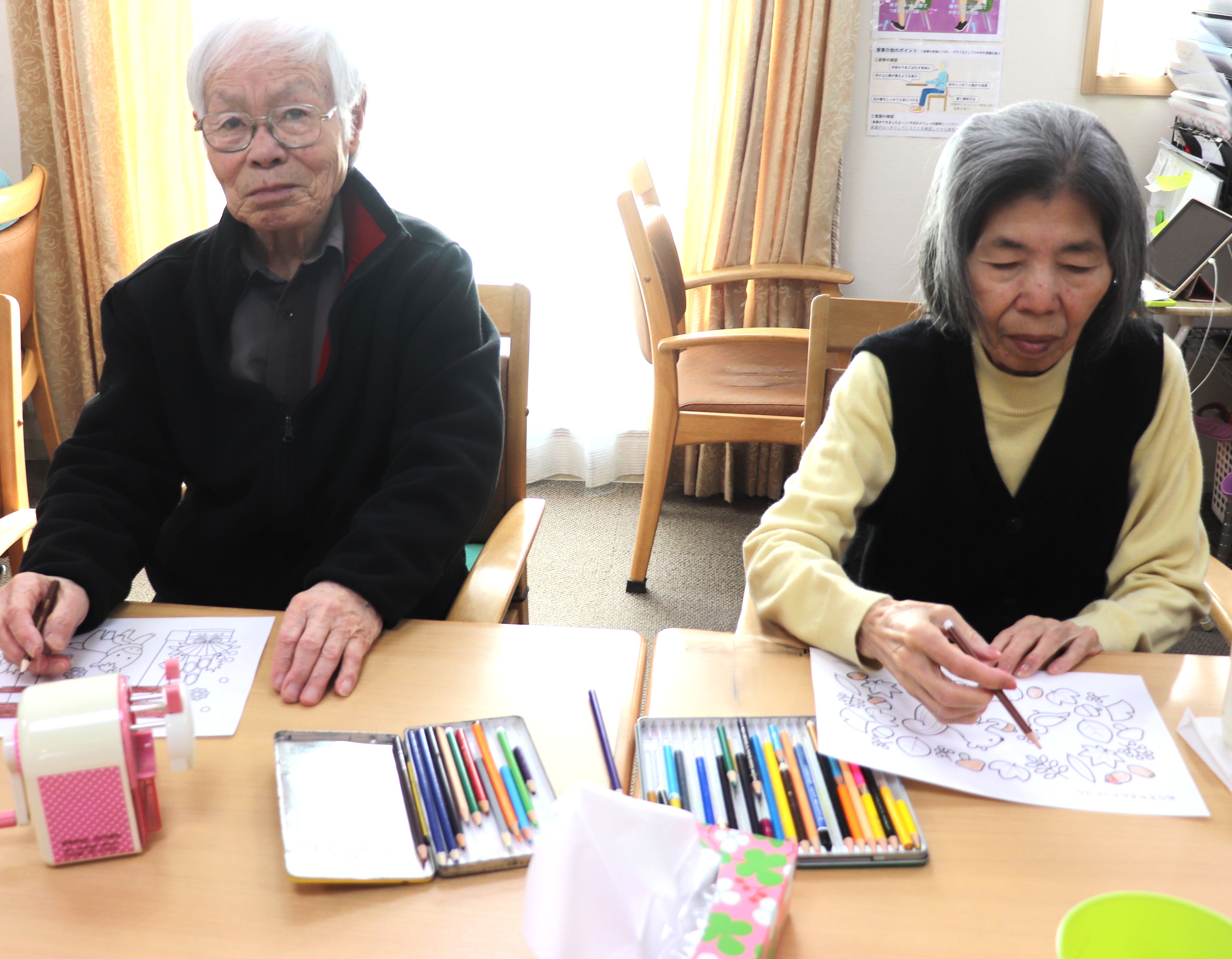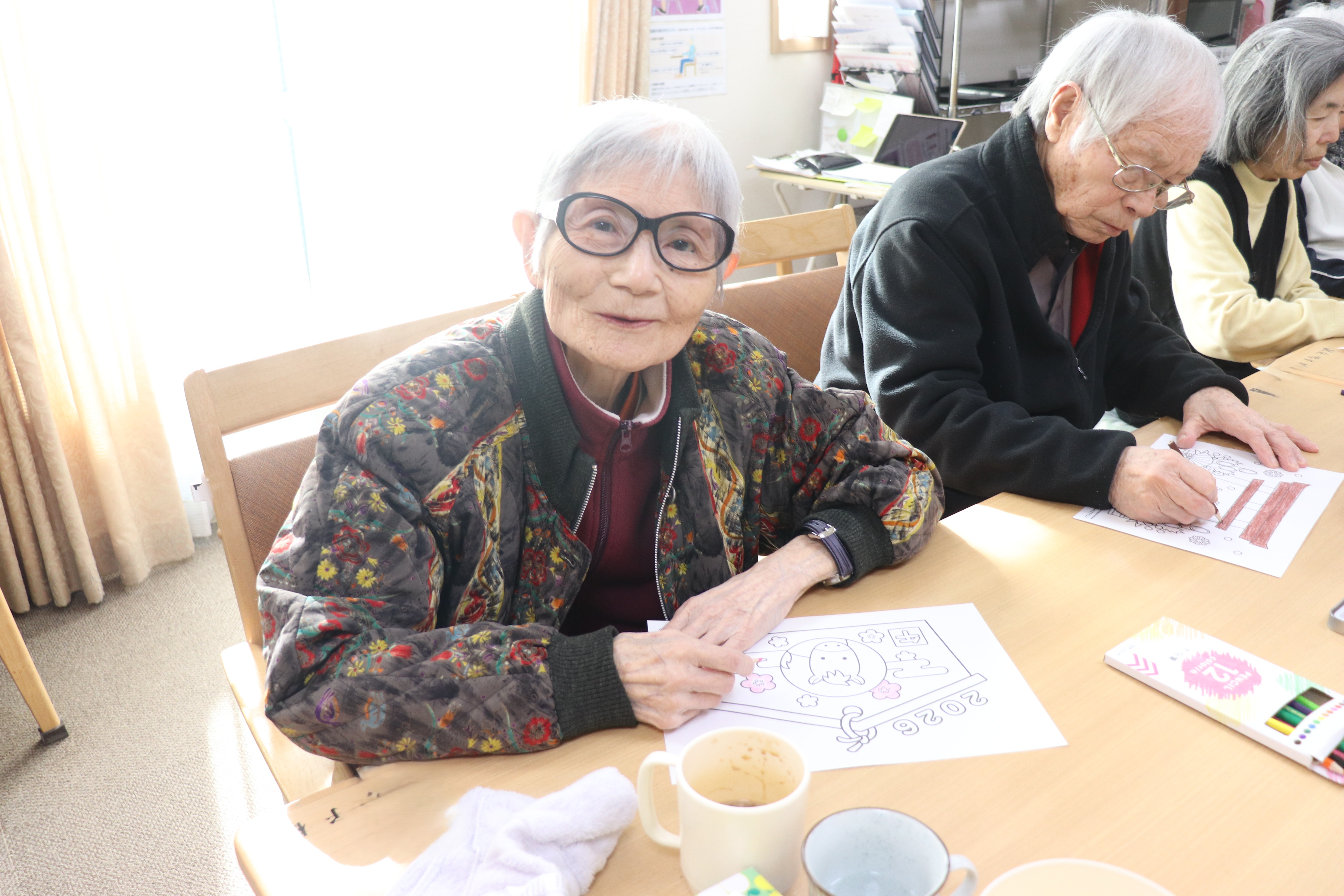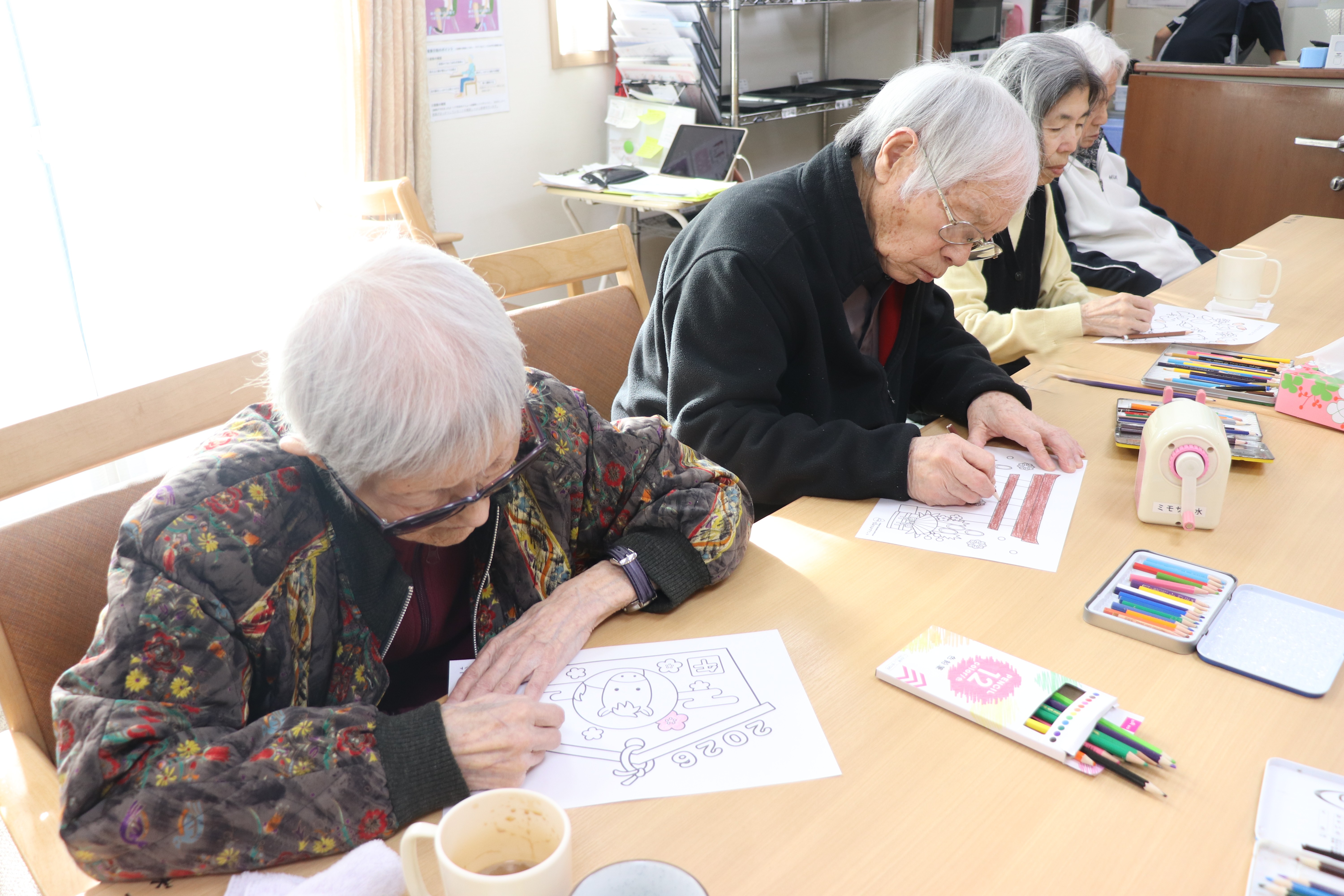 この日は1月にちなんだ塗り絵という事で絵馬の塗り絵を楽しみました(^^♪皆様集中しています(#^.^#)