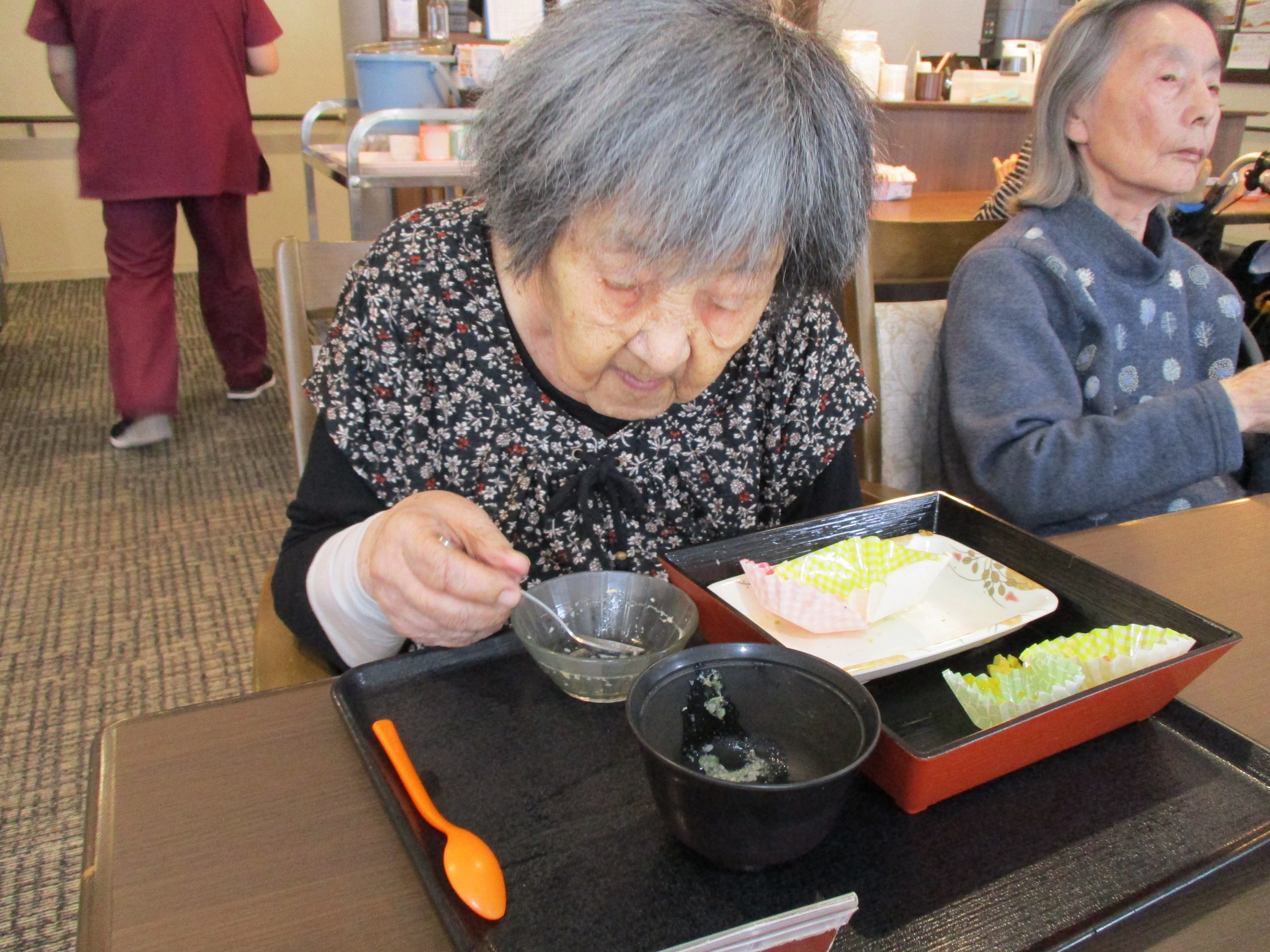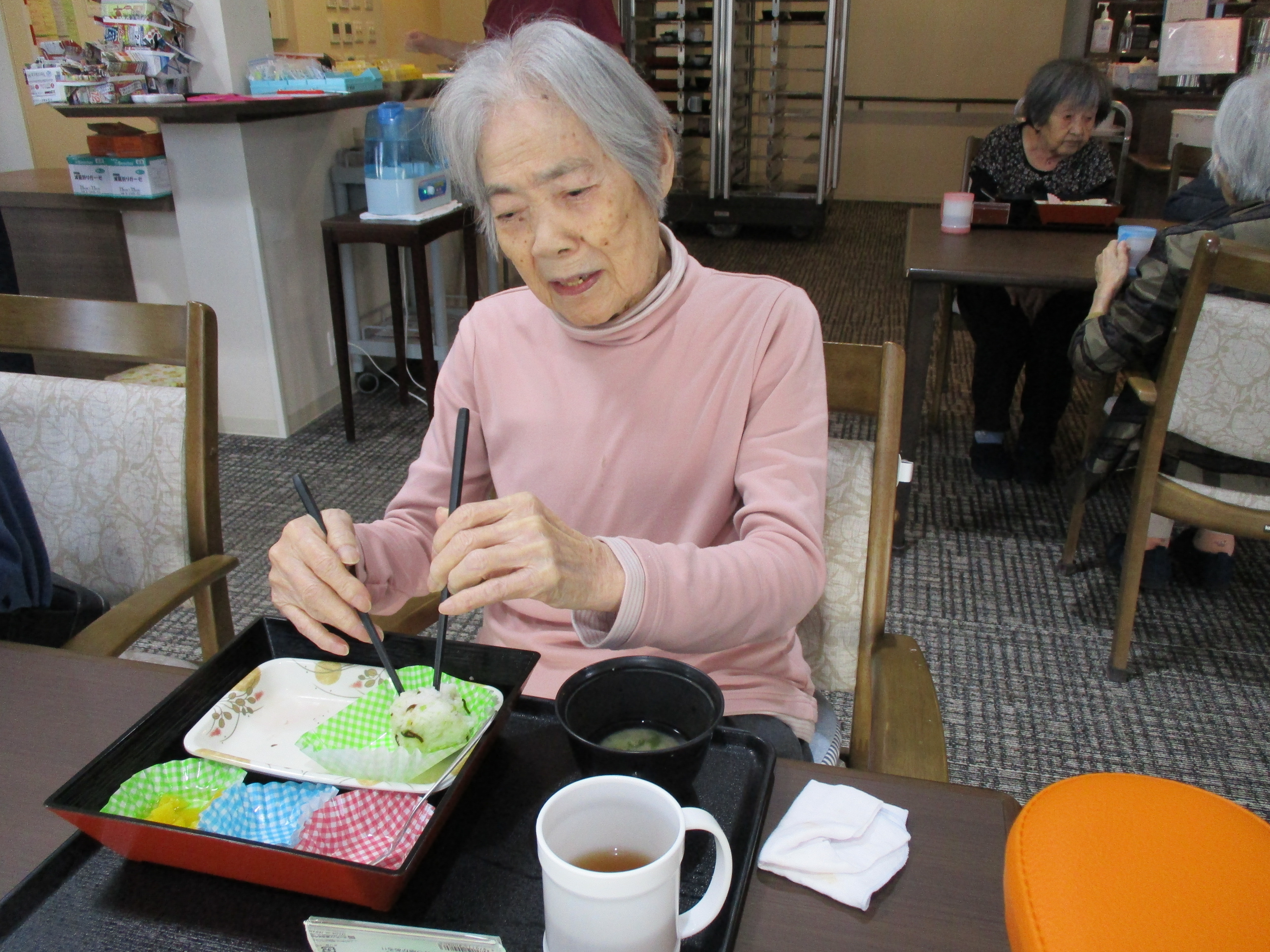 本日は唐揚げとおにぎりのお弁当風のお食事でした。 「昔作った弁当を思い出すね」等お話しされながら皆様召し上がっていました。