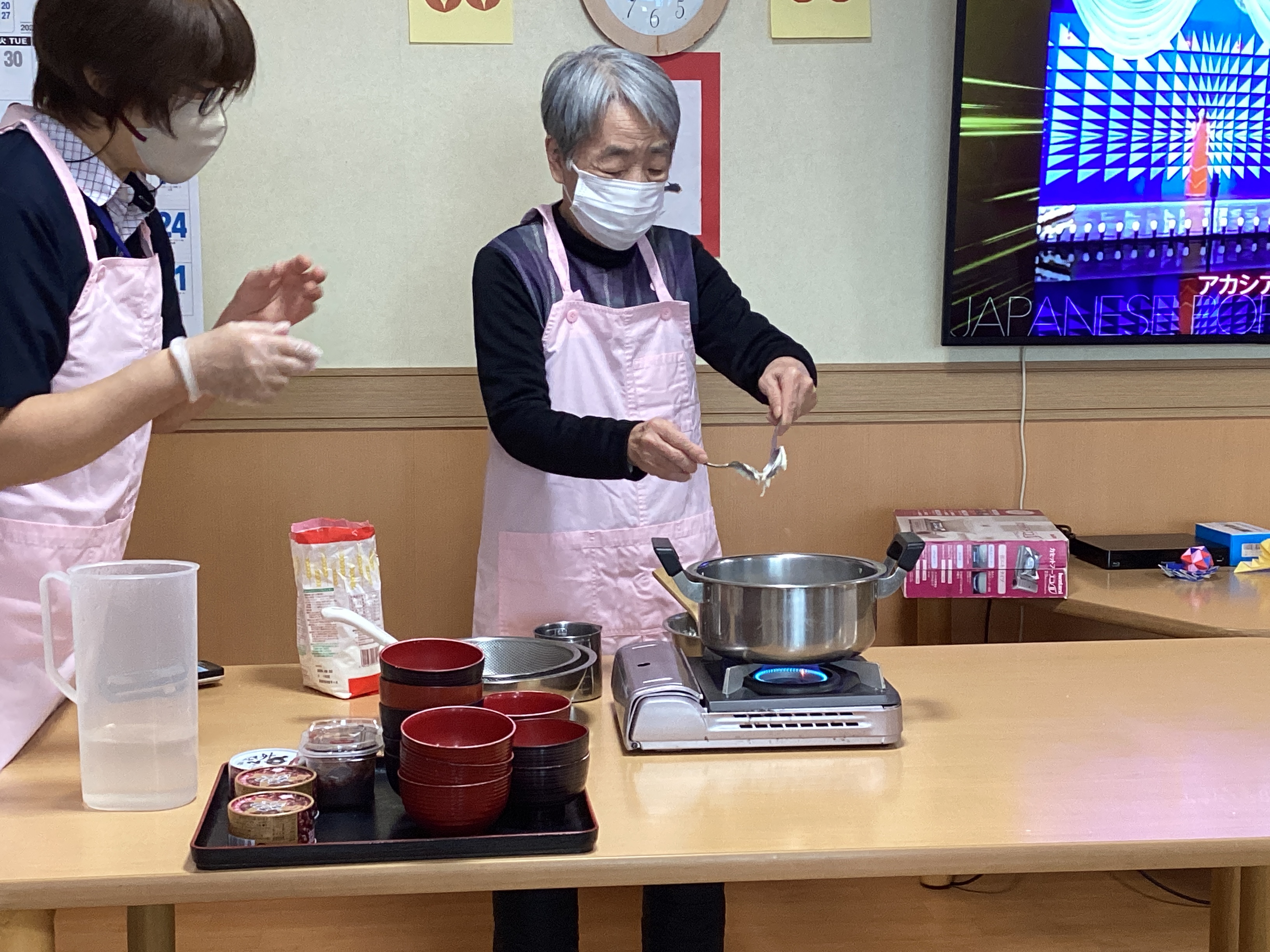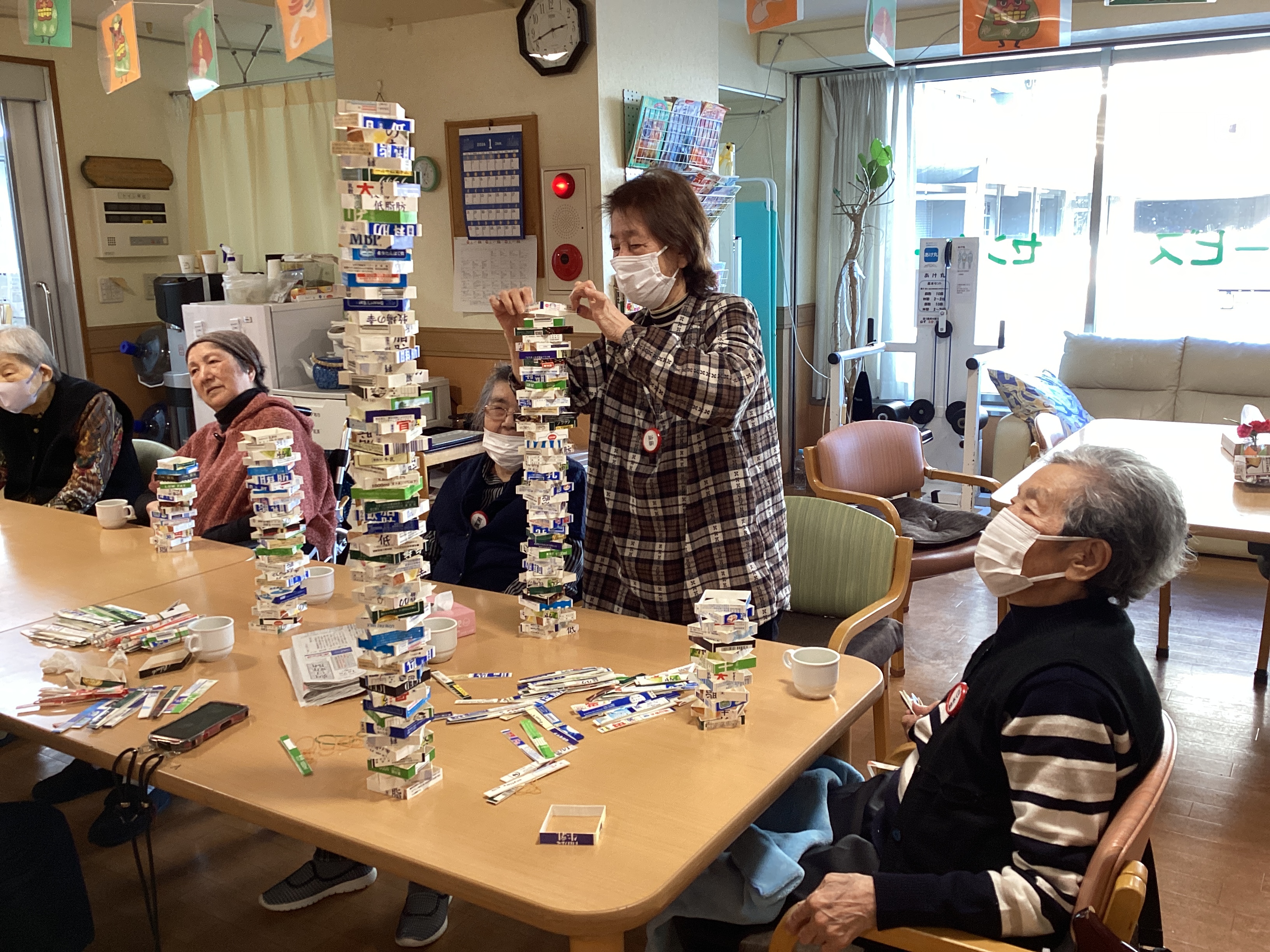 あけましておめでとうございます。お正月五日から皆さんお元気に来所され、お習字や絵馬の作成や、のんびりとランプゲームなどをして楽しみました。又、白玉団子のお汁粉を作りました。