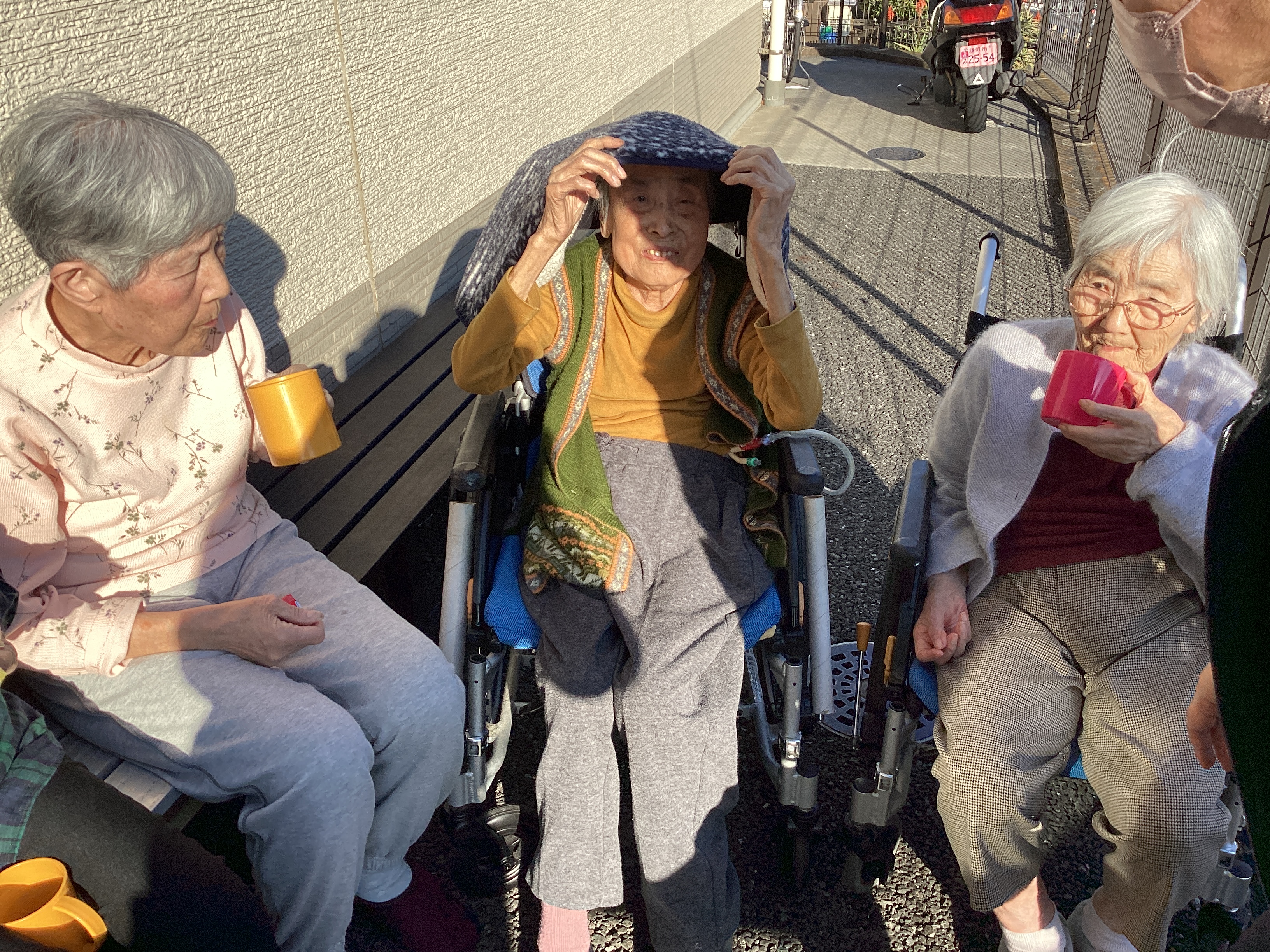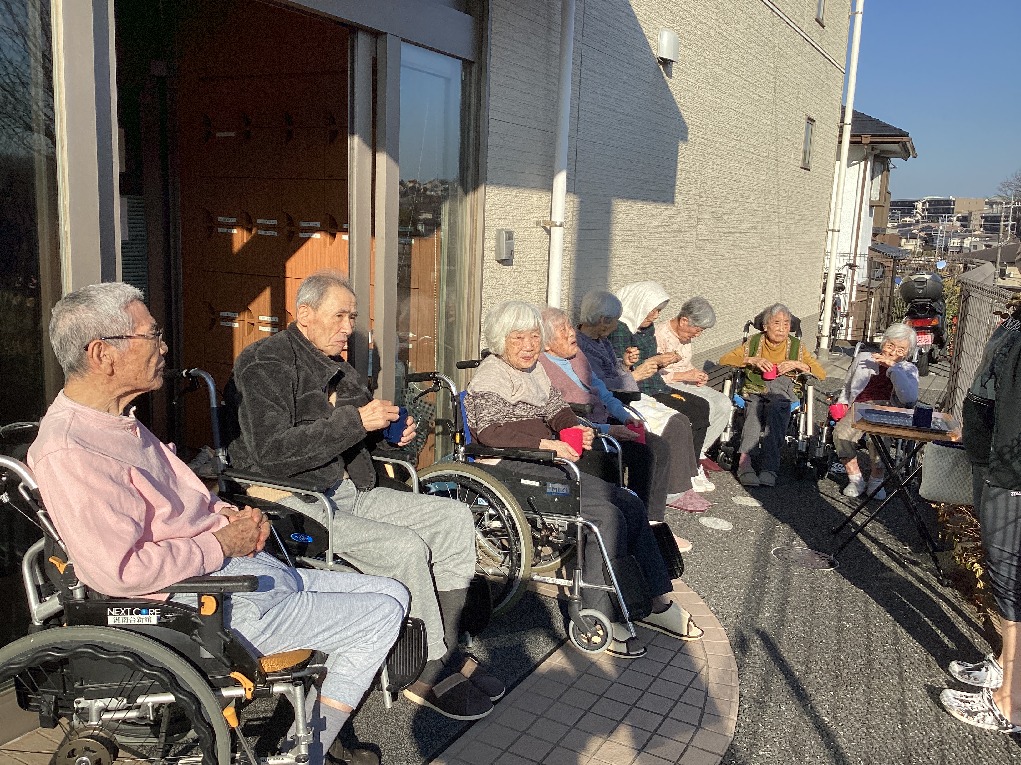 寒い日もありますが、暖かい日もあり、玄関前は天気が良いととても強い日差しで、暑いくらいです(^^♪ 皆さんで日光浴をした時の様子です!