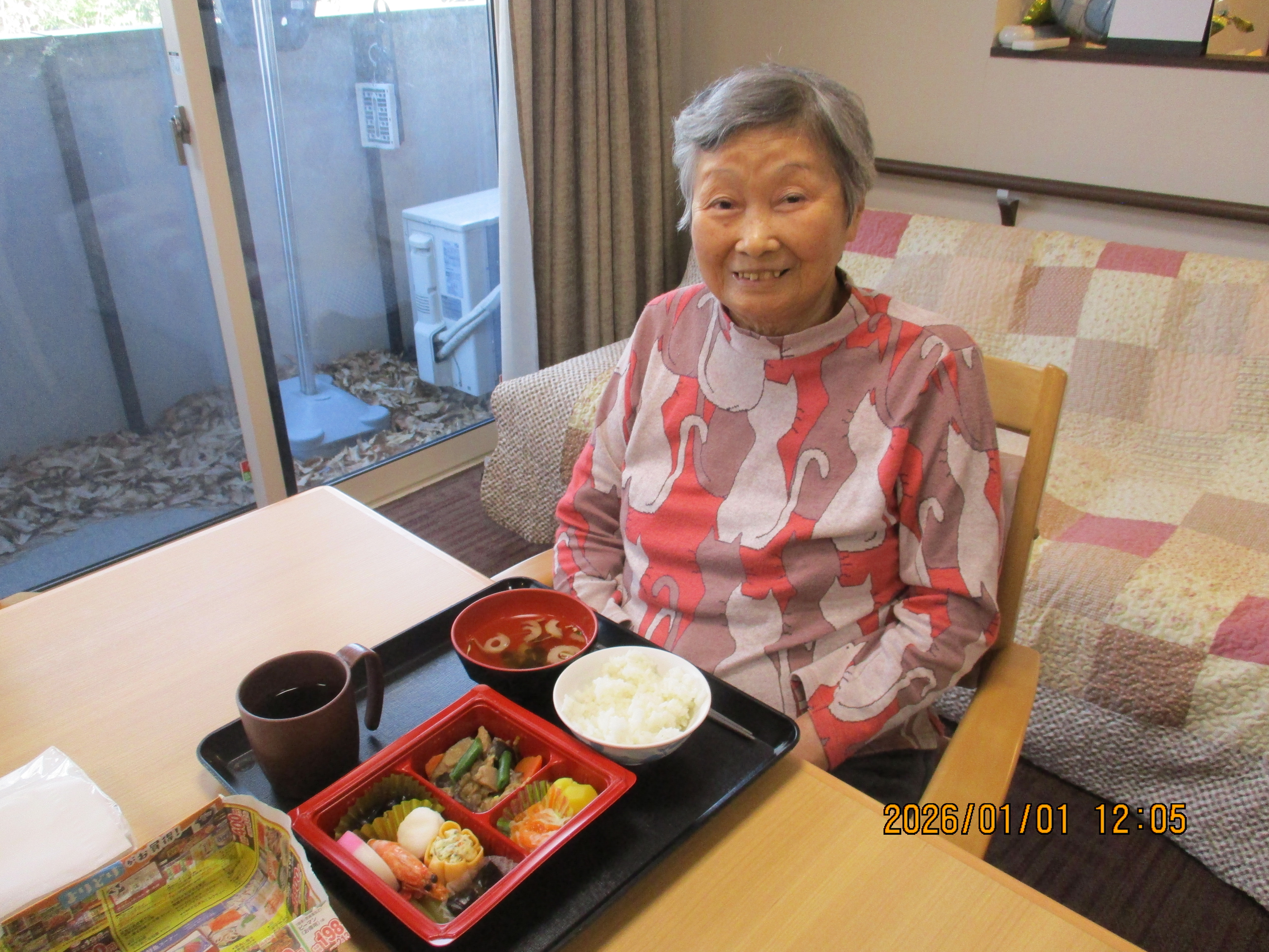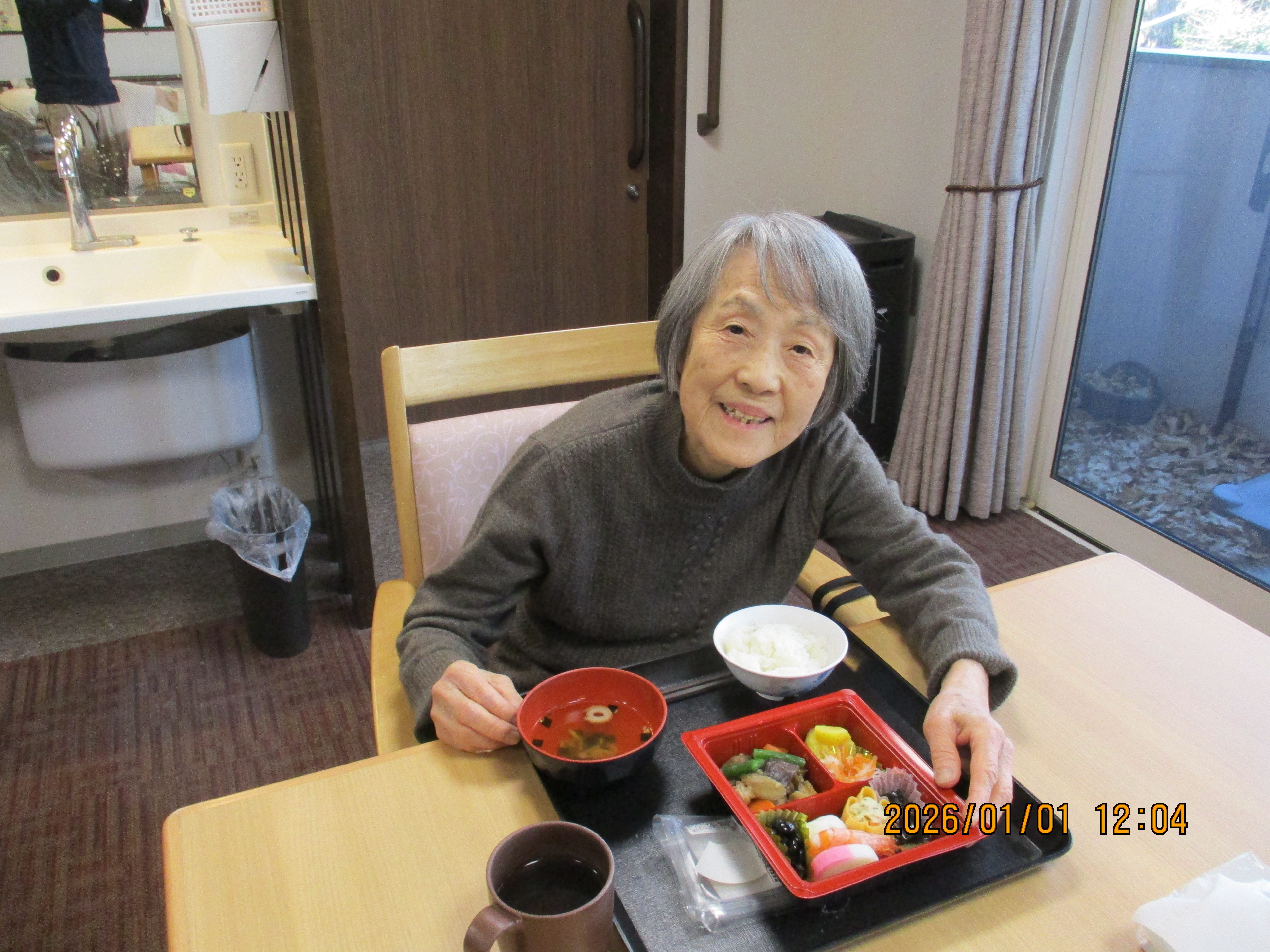 元旦は特注のおせち料理を食べました。エビとカニをそれぞれお好きなほうを選んでいただきました☺