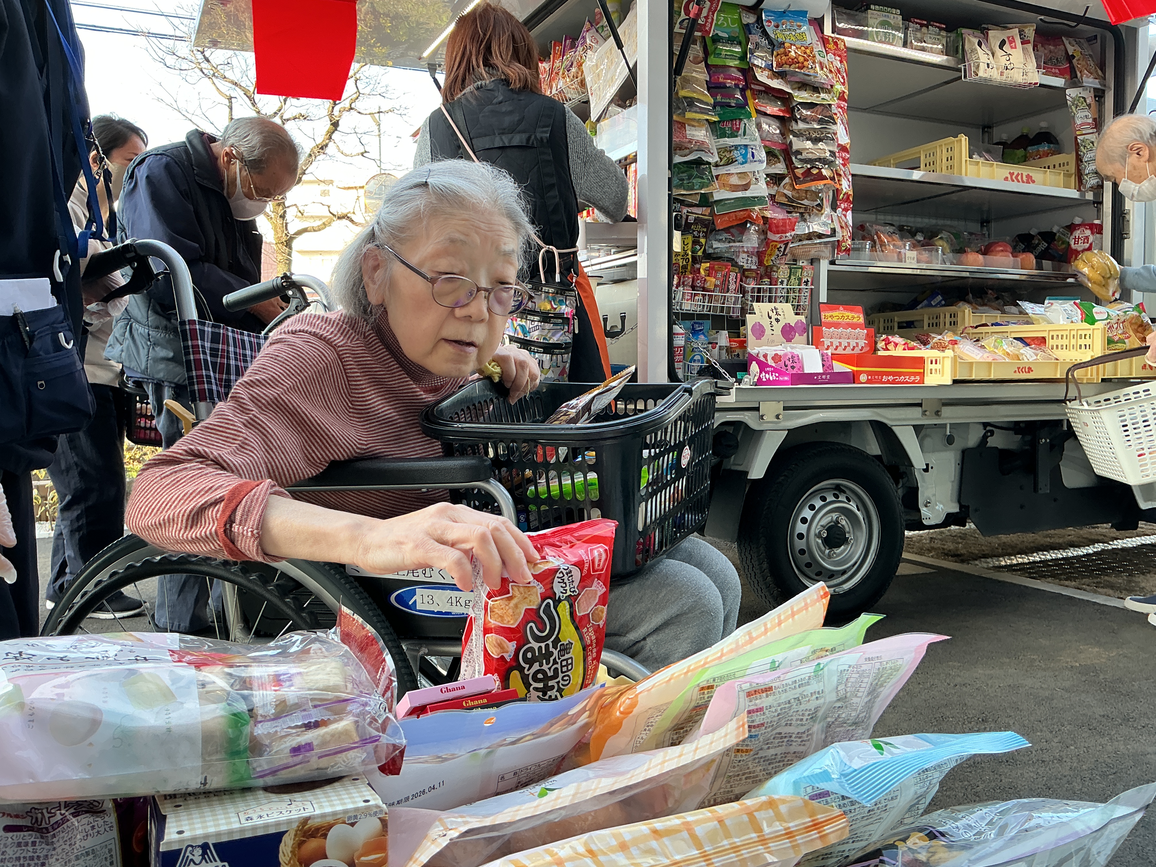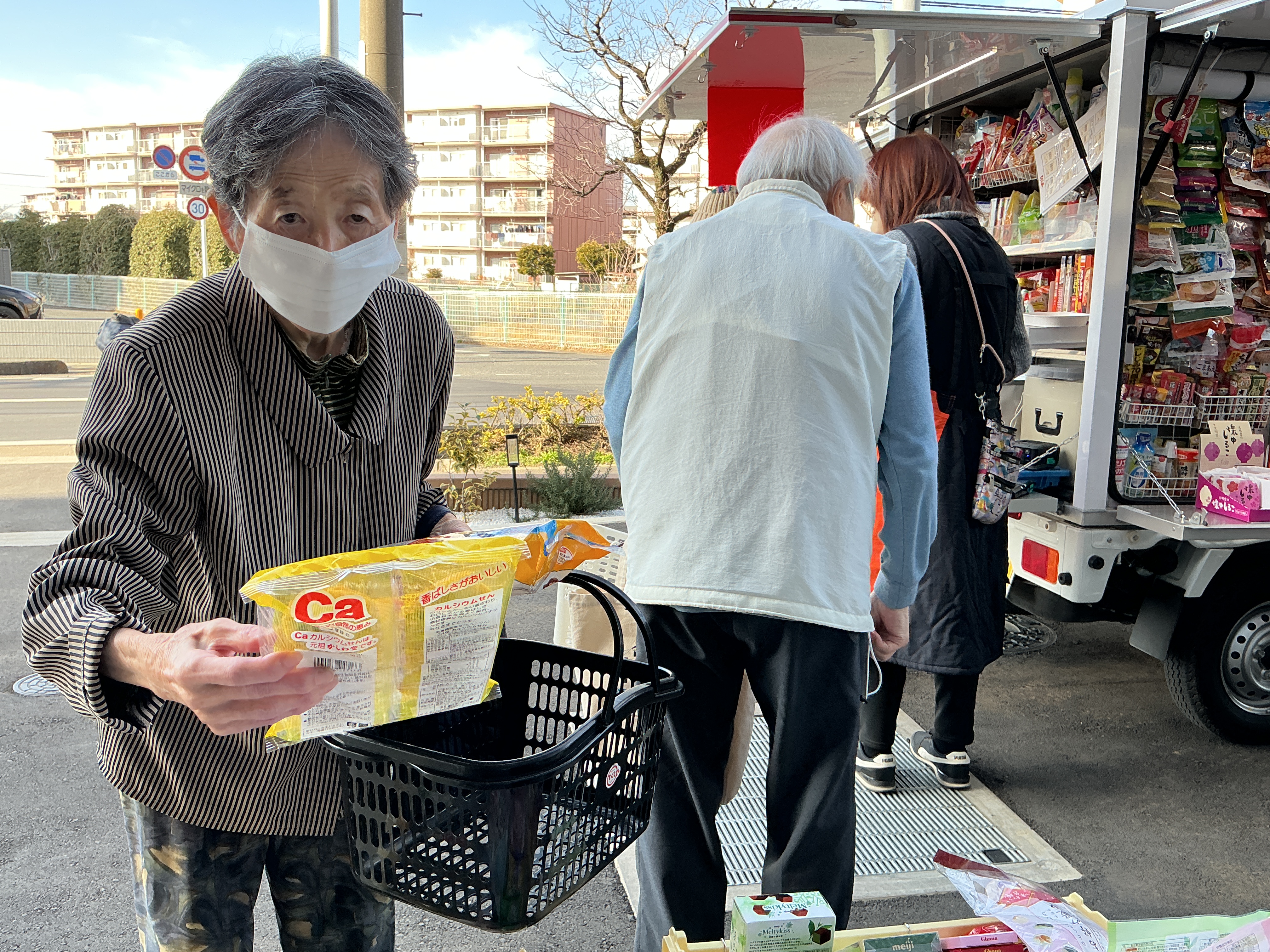 木曜日はお楽しみの移動スーパー『とくし丸』が来てくれました。皆さんフルーツやお菓子を買ってご満悦の様子。値段を計算することで皆さん頭を働かせていました。