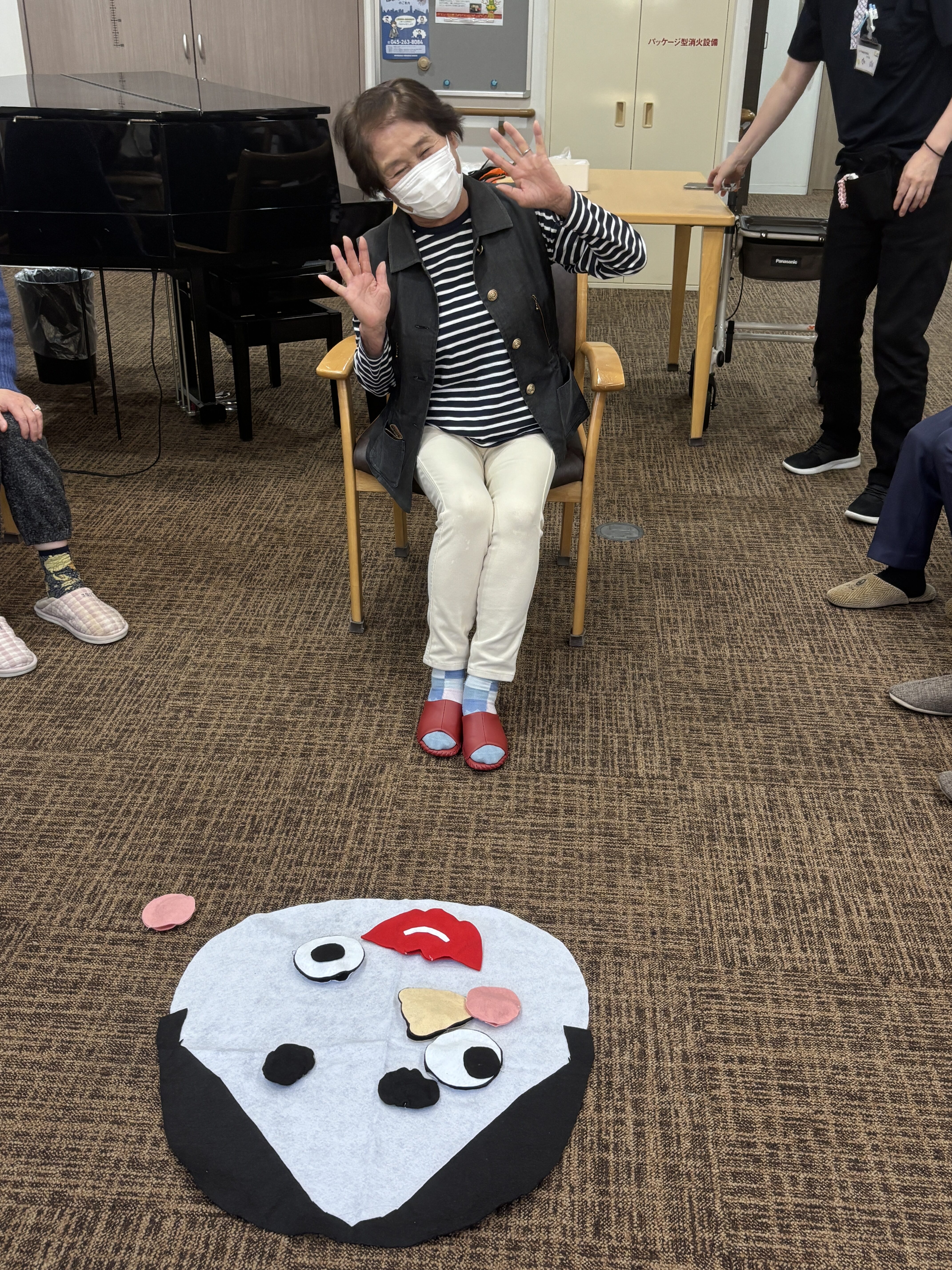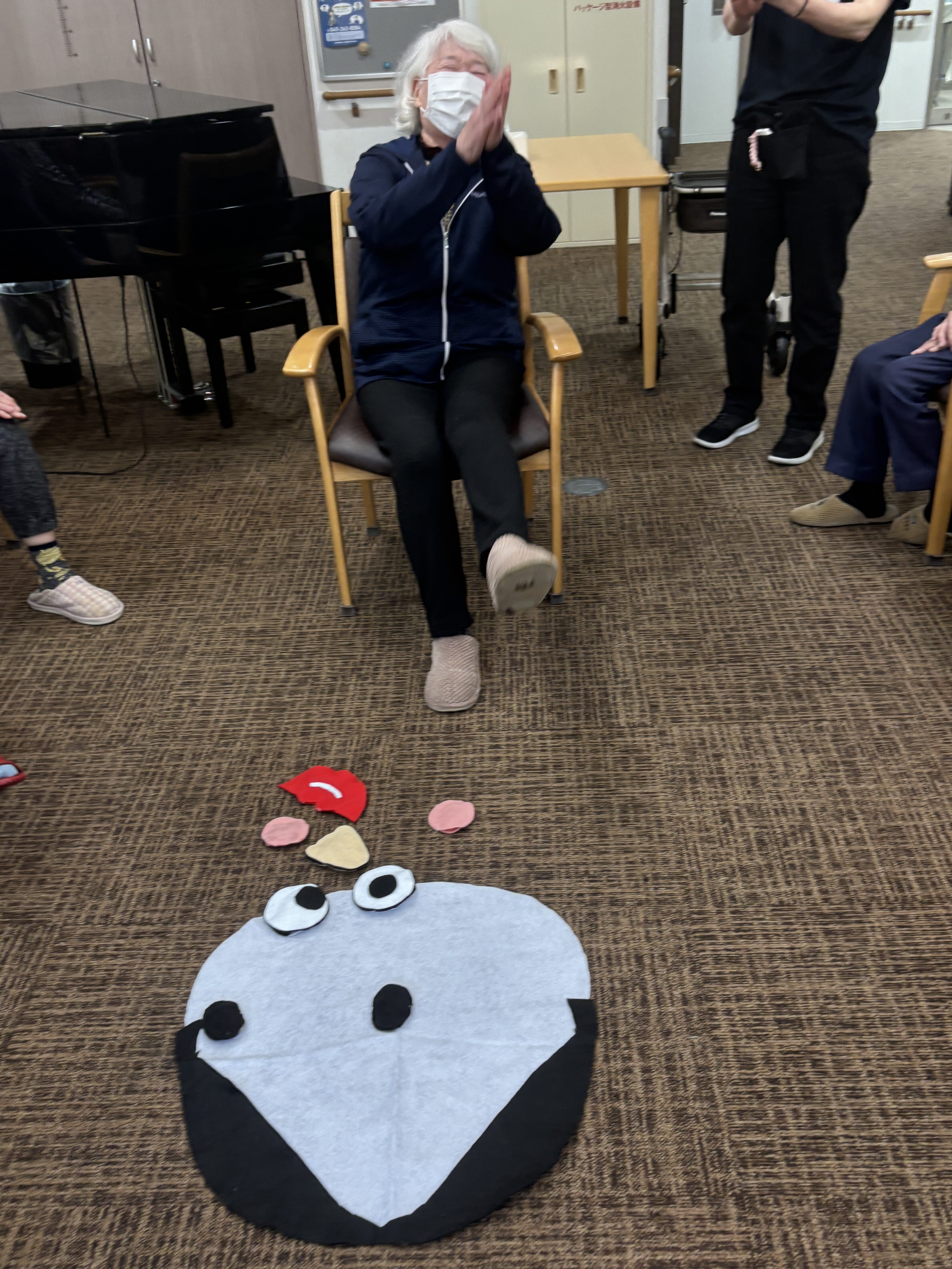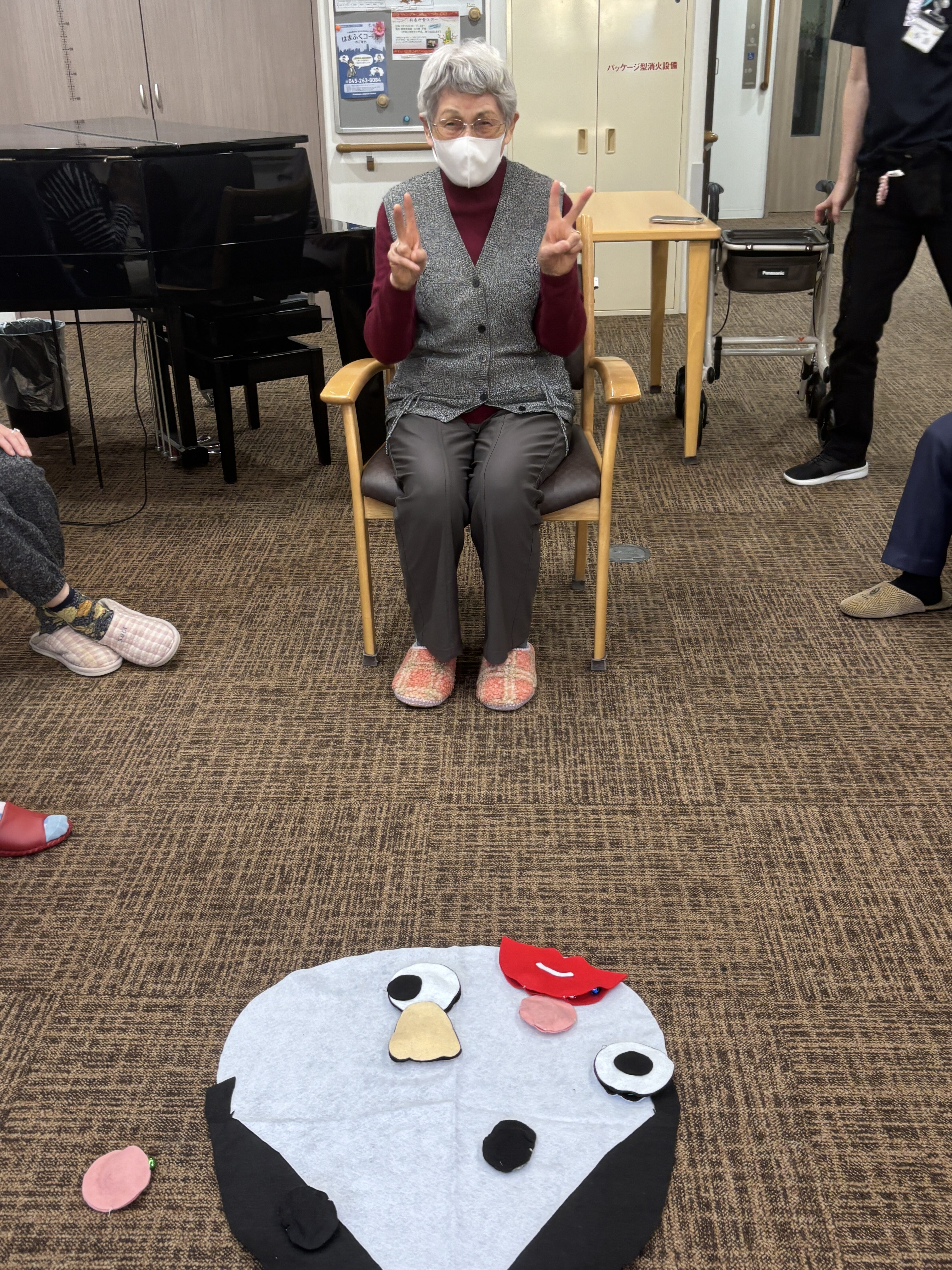 おかめの福笑いです。個性豊かな「おかめ」の顔が次々と完成し、皆様大笑いです。