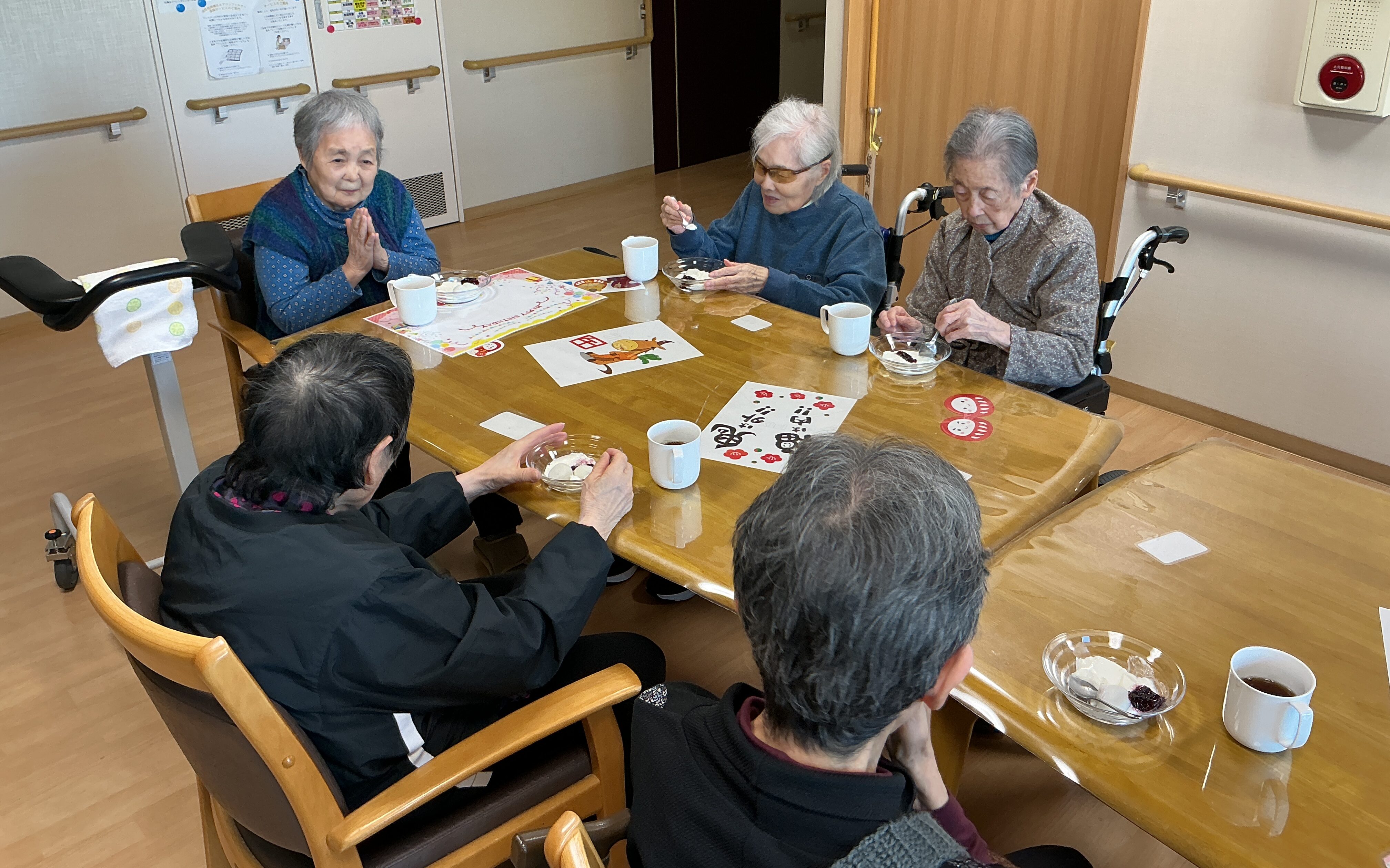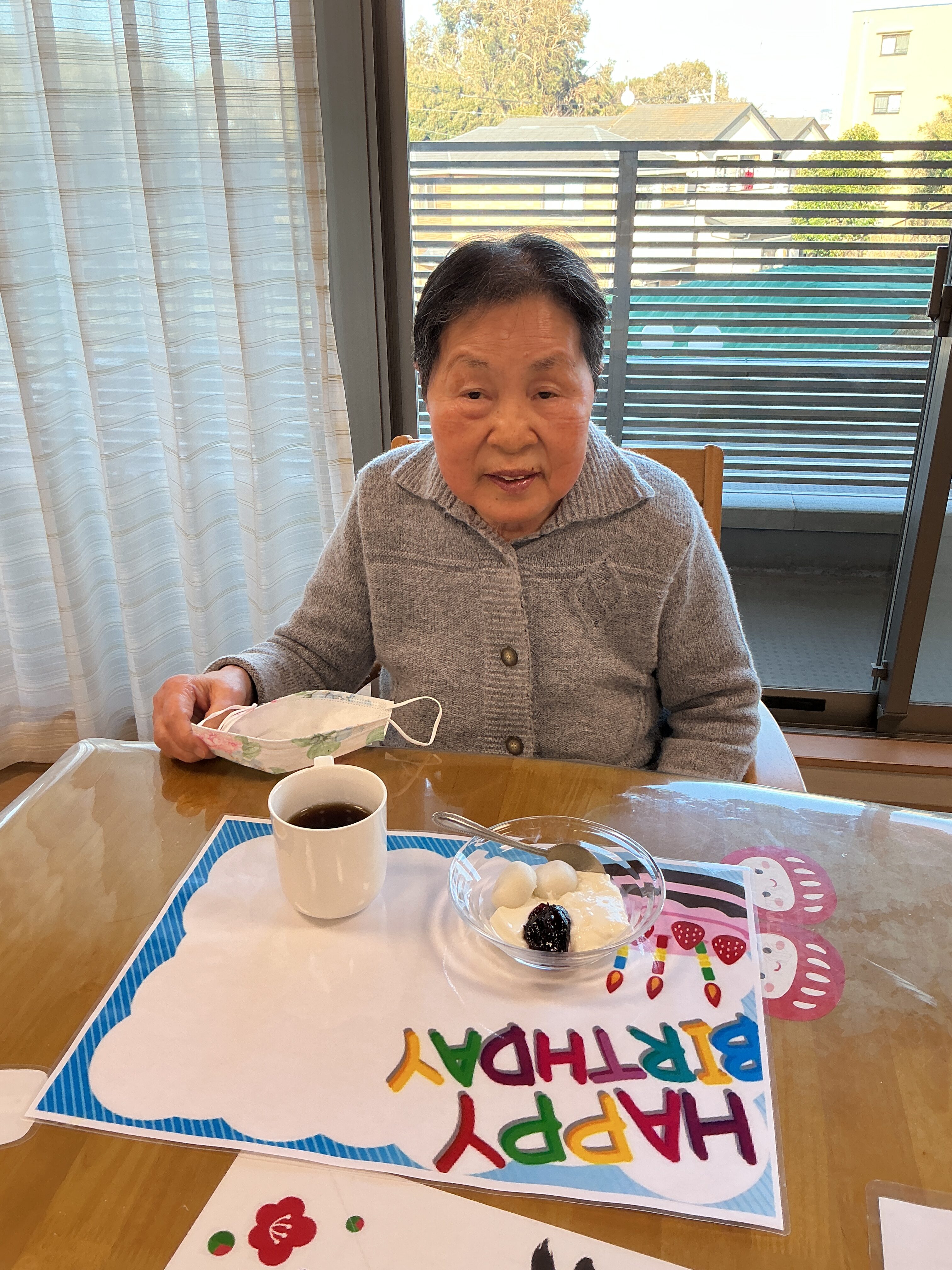 今月、2階の誕生日会 お二方いらっしゃいました。 本人のリクエストあり。ケーキは パンナコッタと大福にしました。 皆様喜ばれていました。