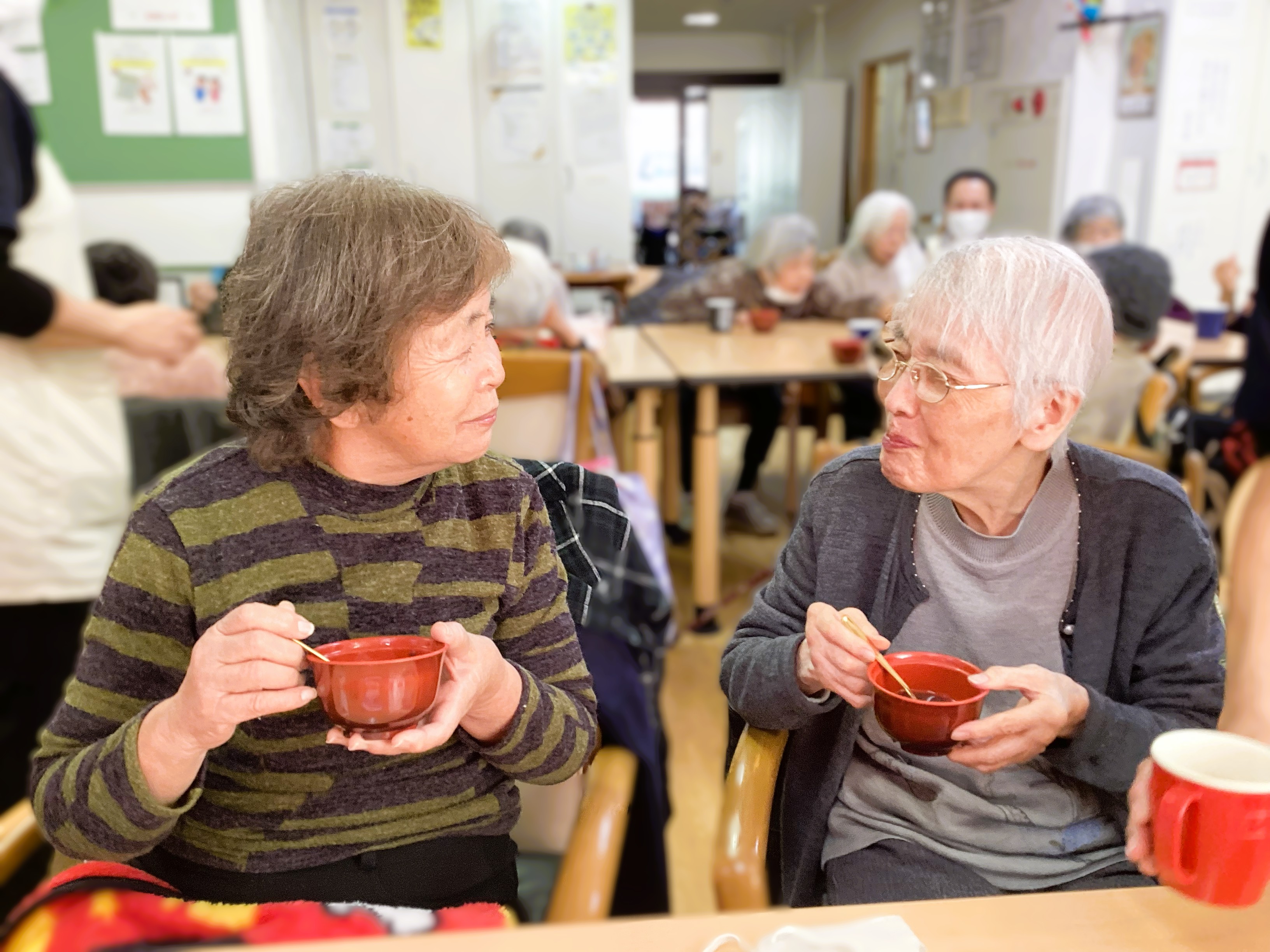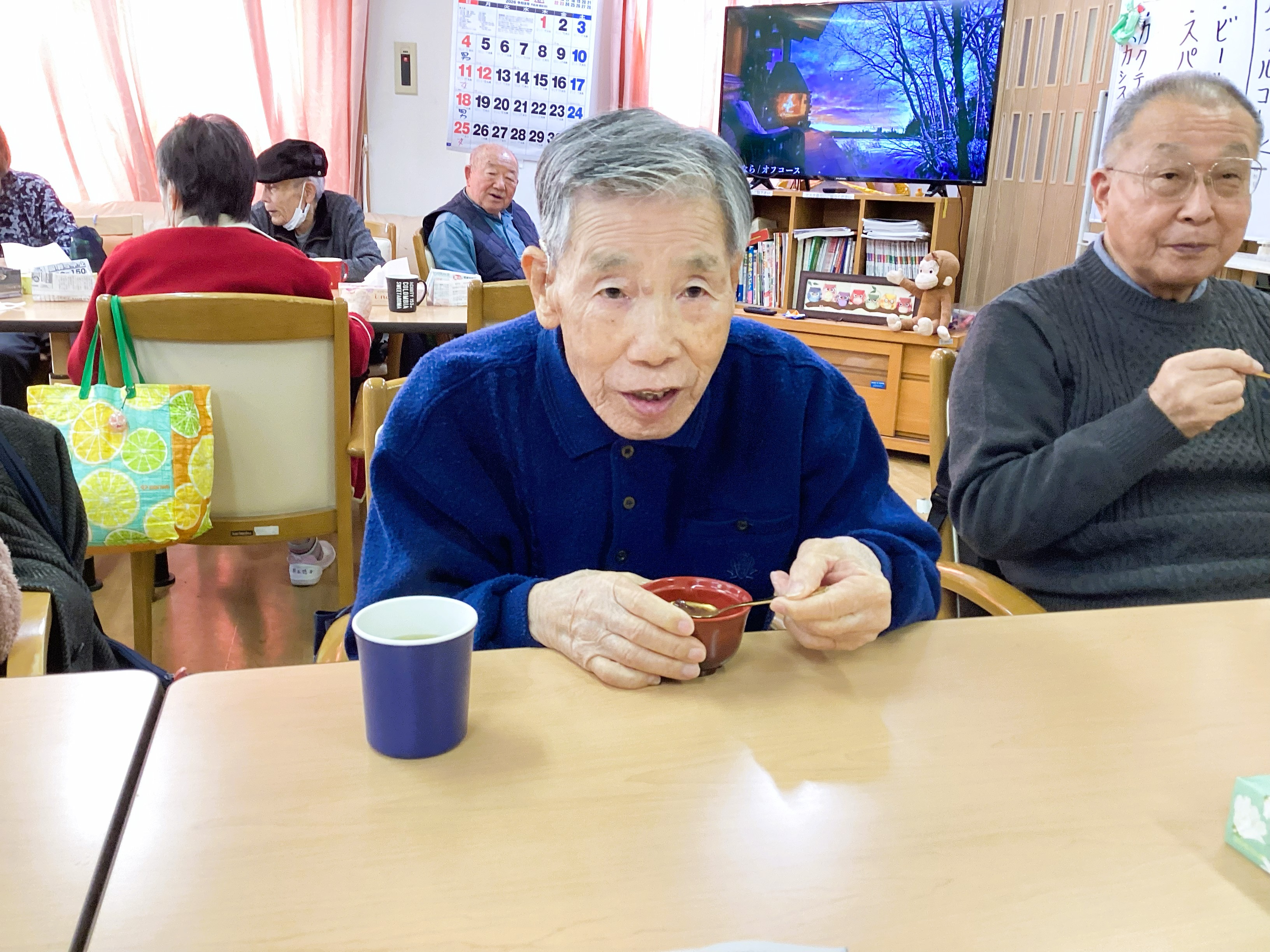 お汁粉づくりも3回目ともなると、手際よく完成~👌温かく甘いものは自然と笑顔がこぼれます😉✌️