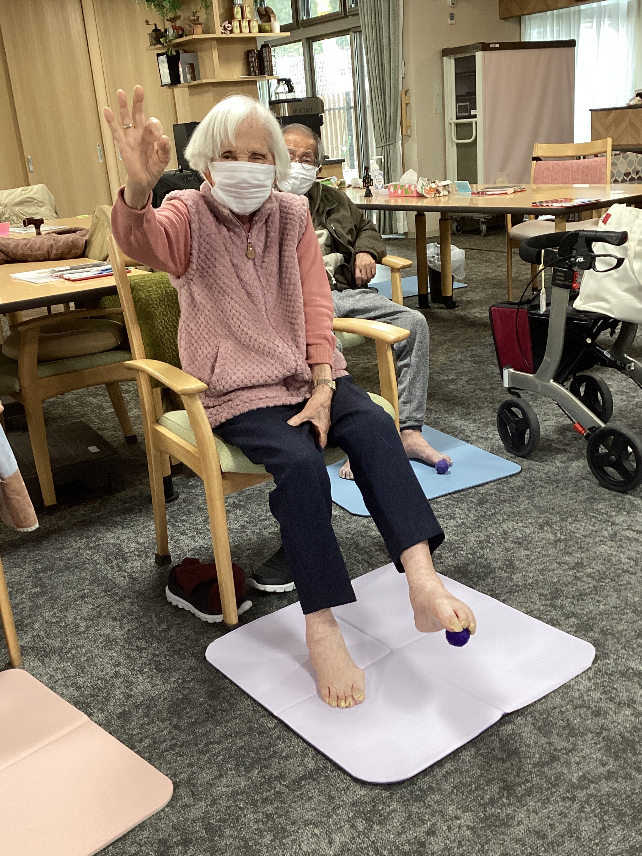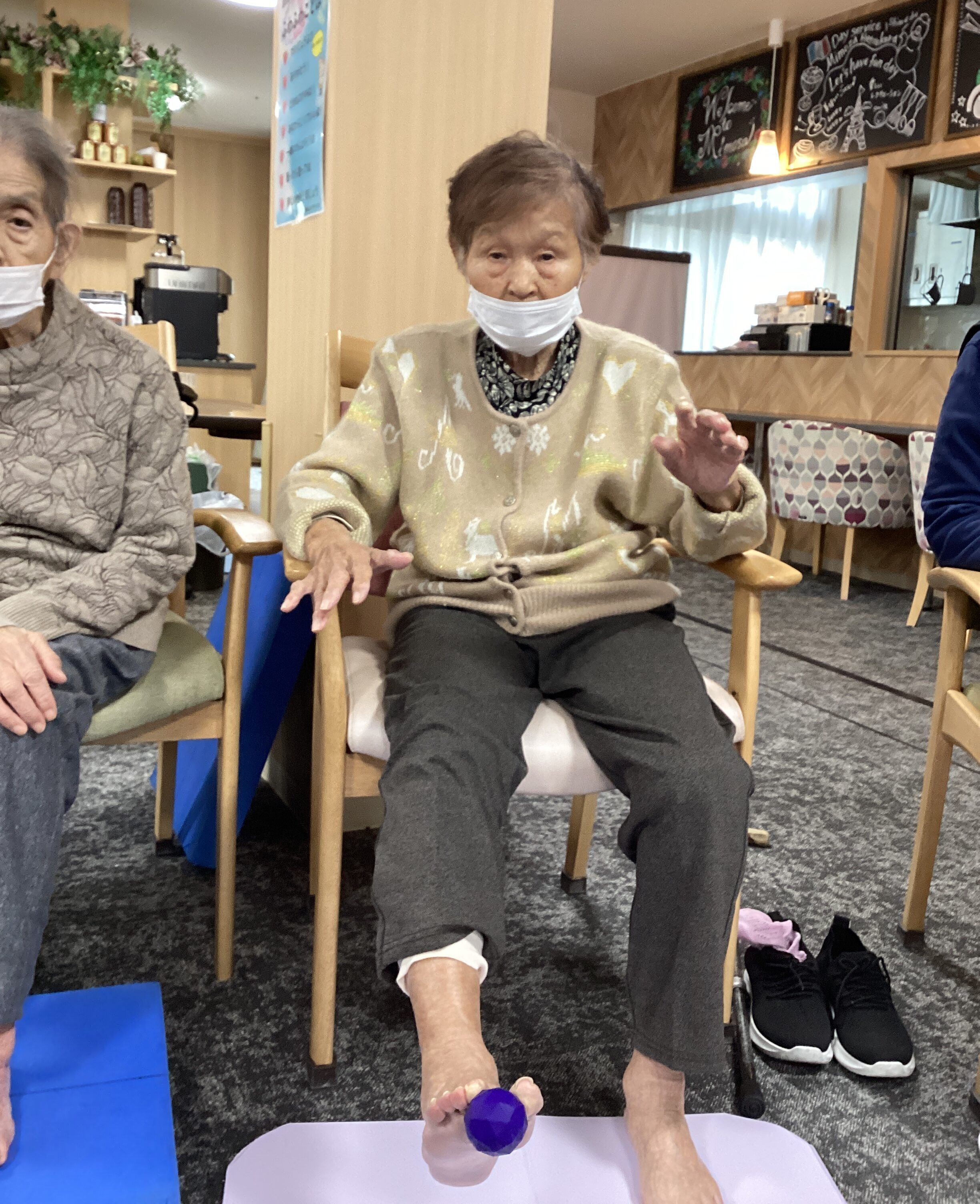 本日は「いいあしつくろう会」の日、チタンボールを足の指でつかむテストをおこないました。会を始めた頃にはこれをつかめたご利用者は2人ほどでした。今ではこーんなにたくさんの方がつかめるようになりました☺進化がすごい!まだまだいいあしつくろうかい!!
