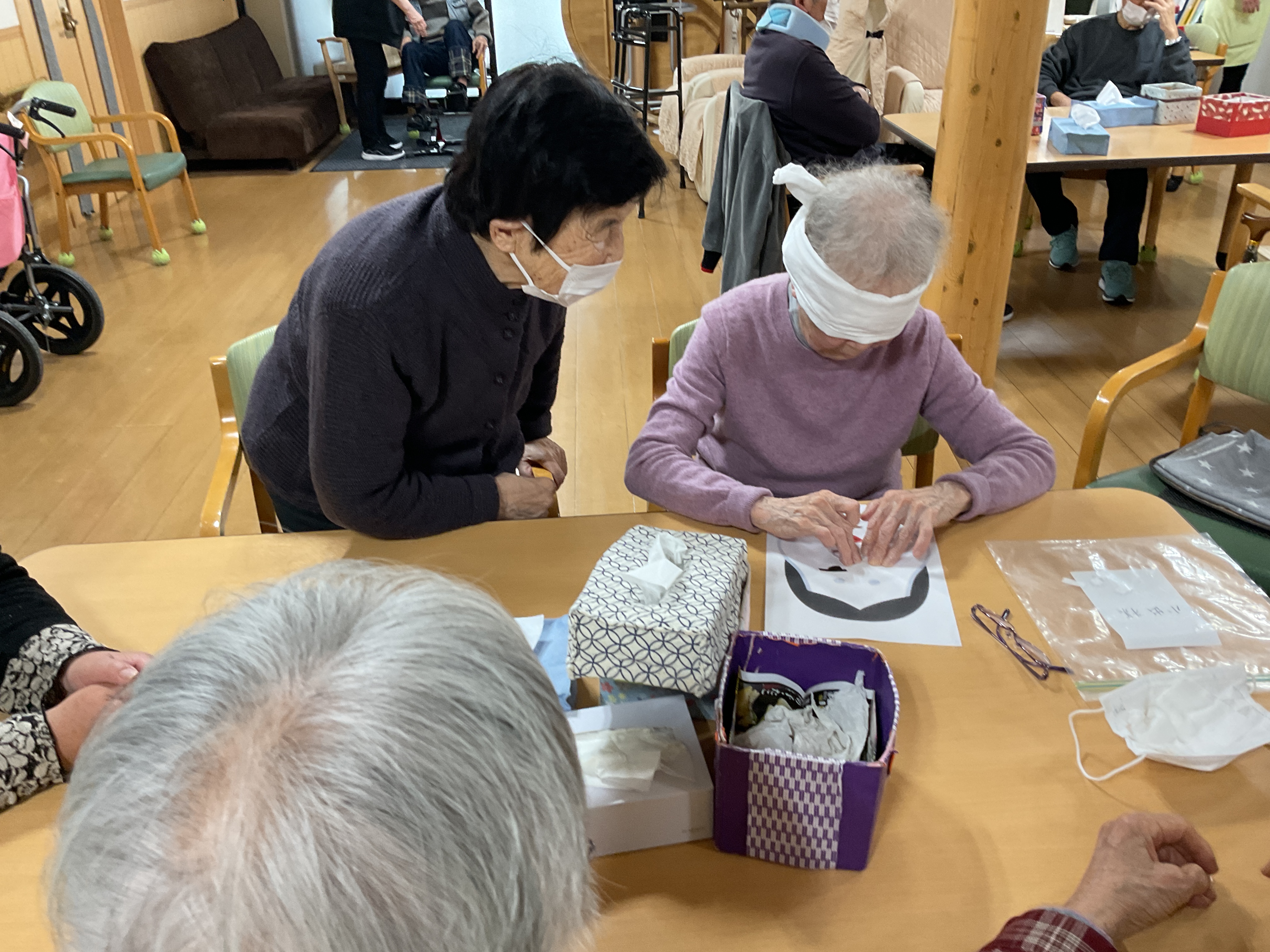 みんなでワイワイ福笑いをしています♬