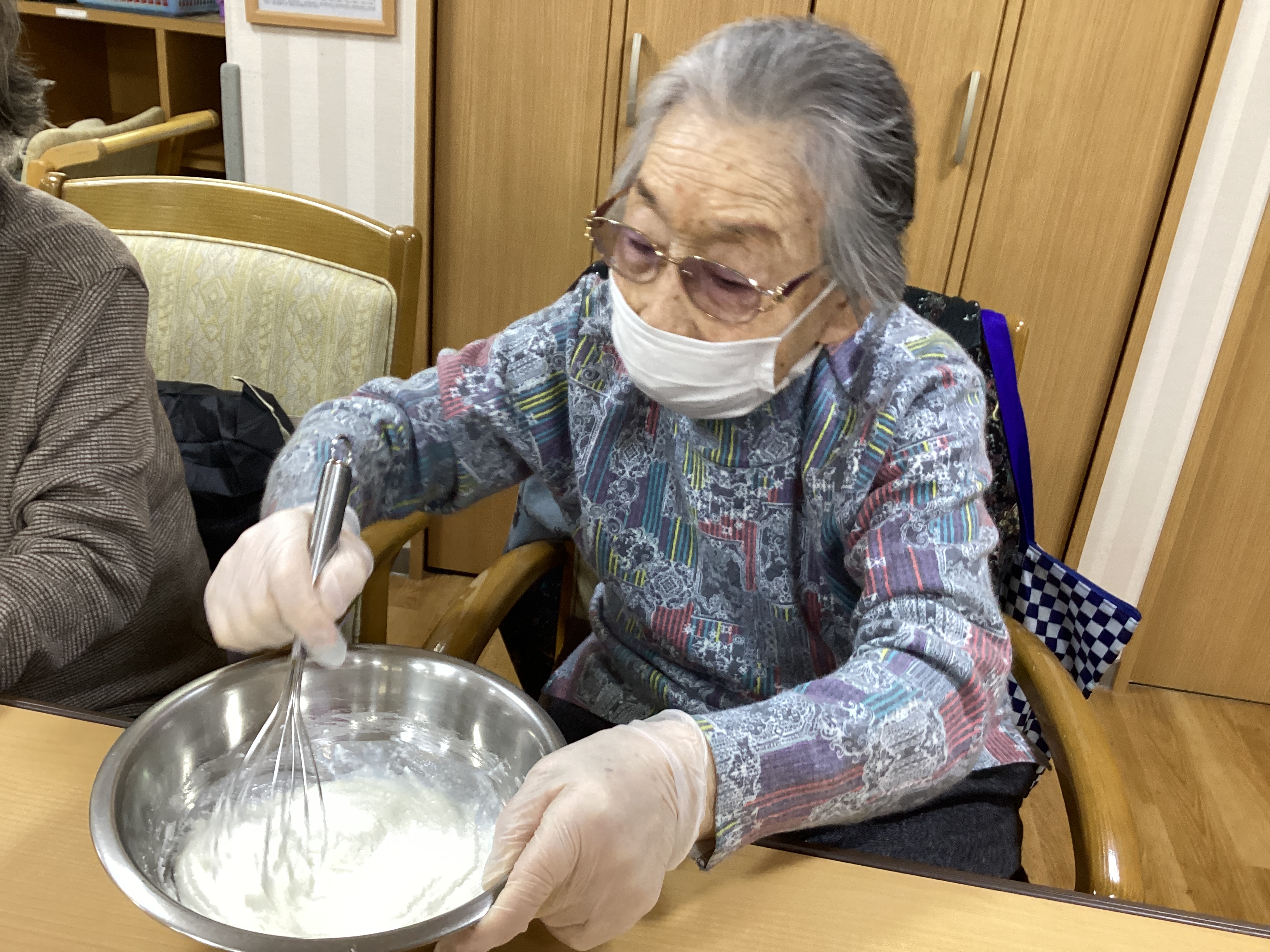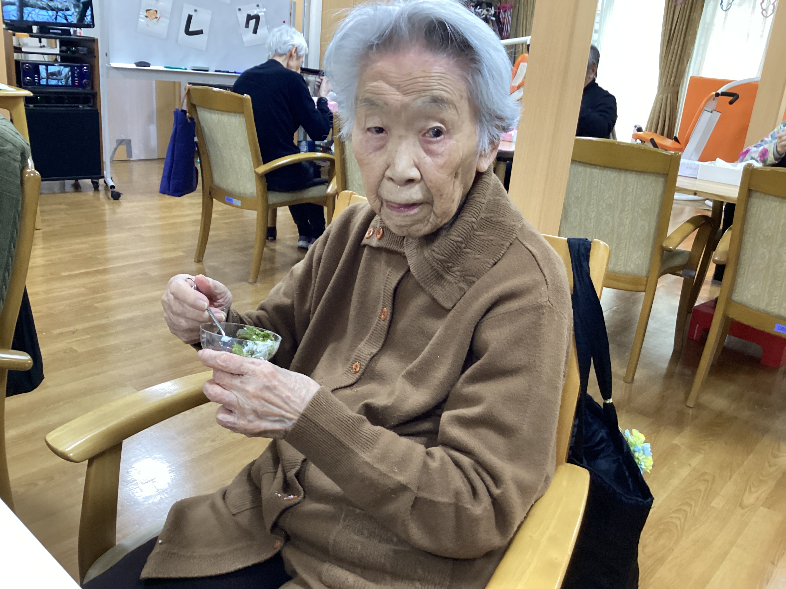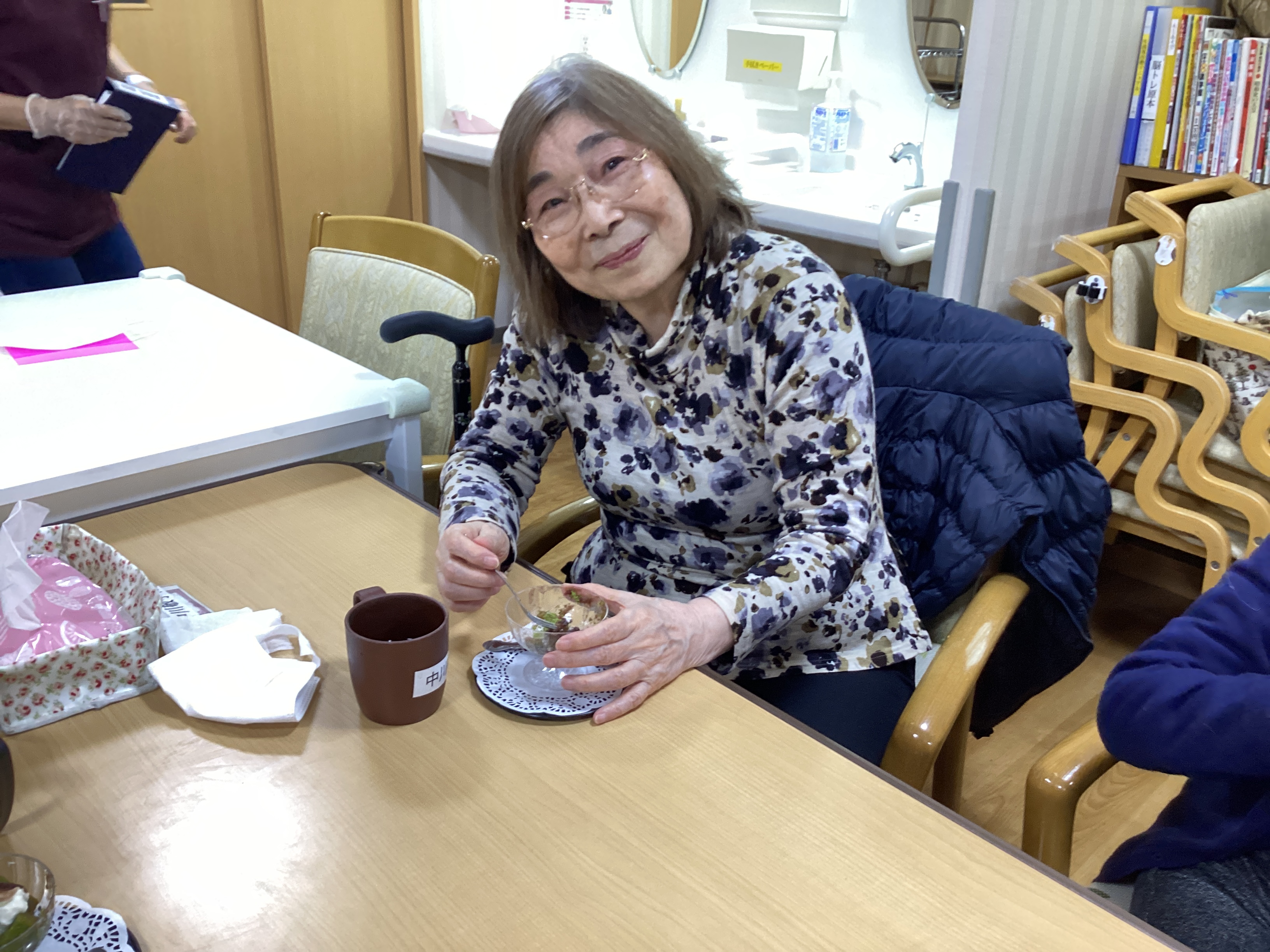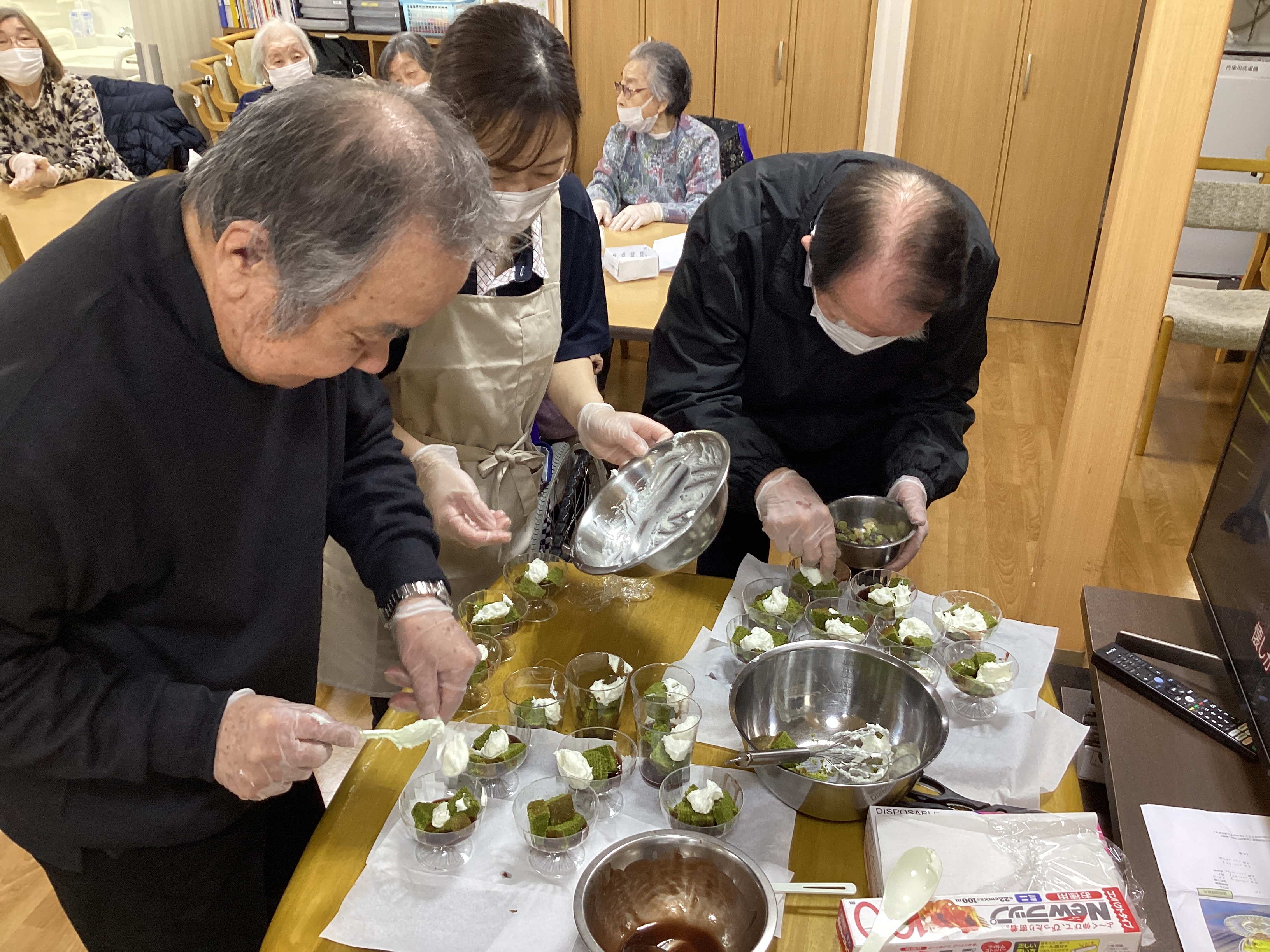 1月20日におやつレクを行いました。 抹茶パフェを皆さんで協力して作り、美味しくいただきました!