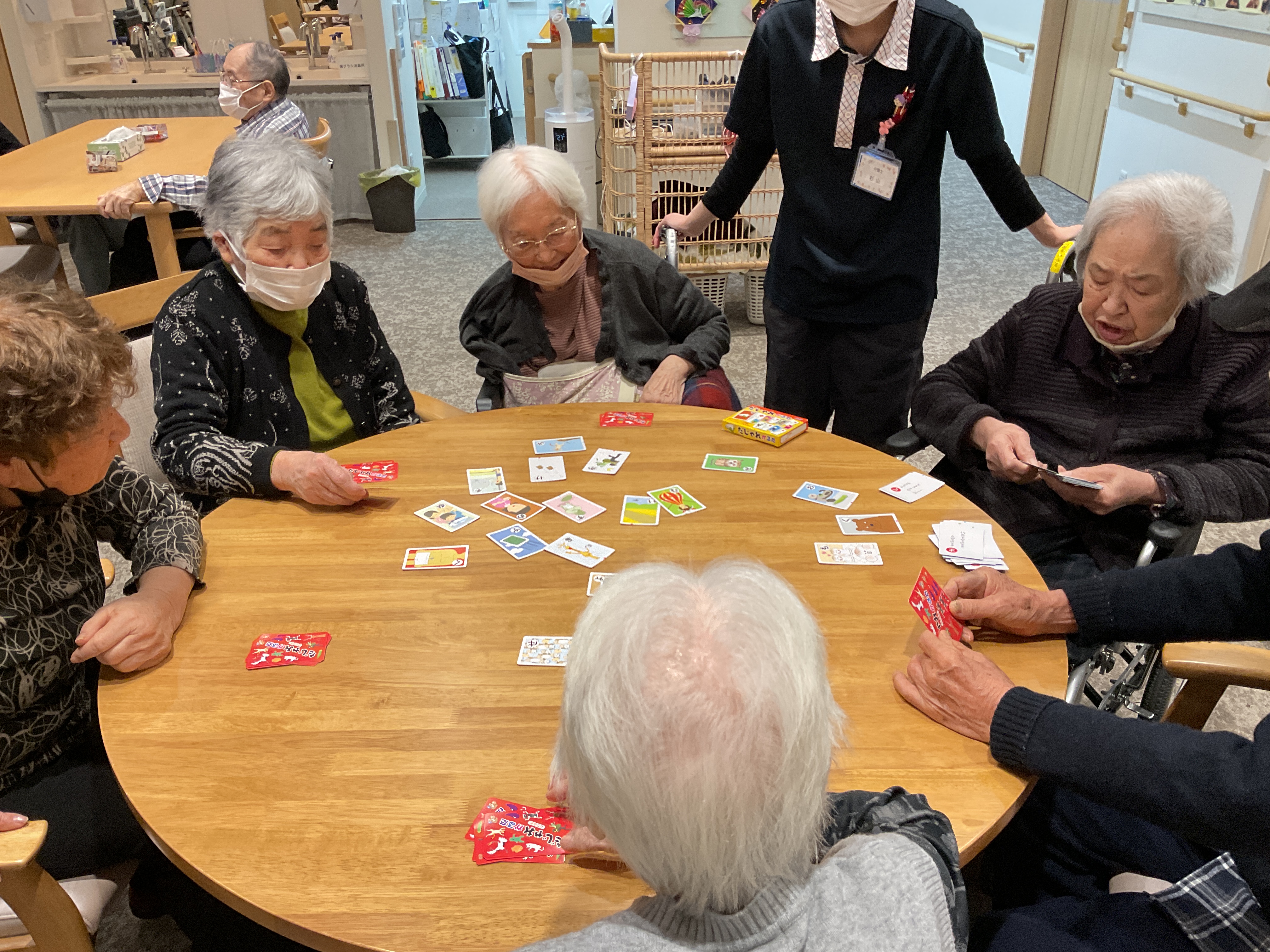 笑う門には福来るということでだじゃれかるた! 書かれた読み札が面白く、笑いながら取り札を取っていて賑やかで楽しい時間でした🤭