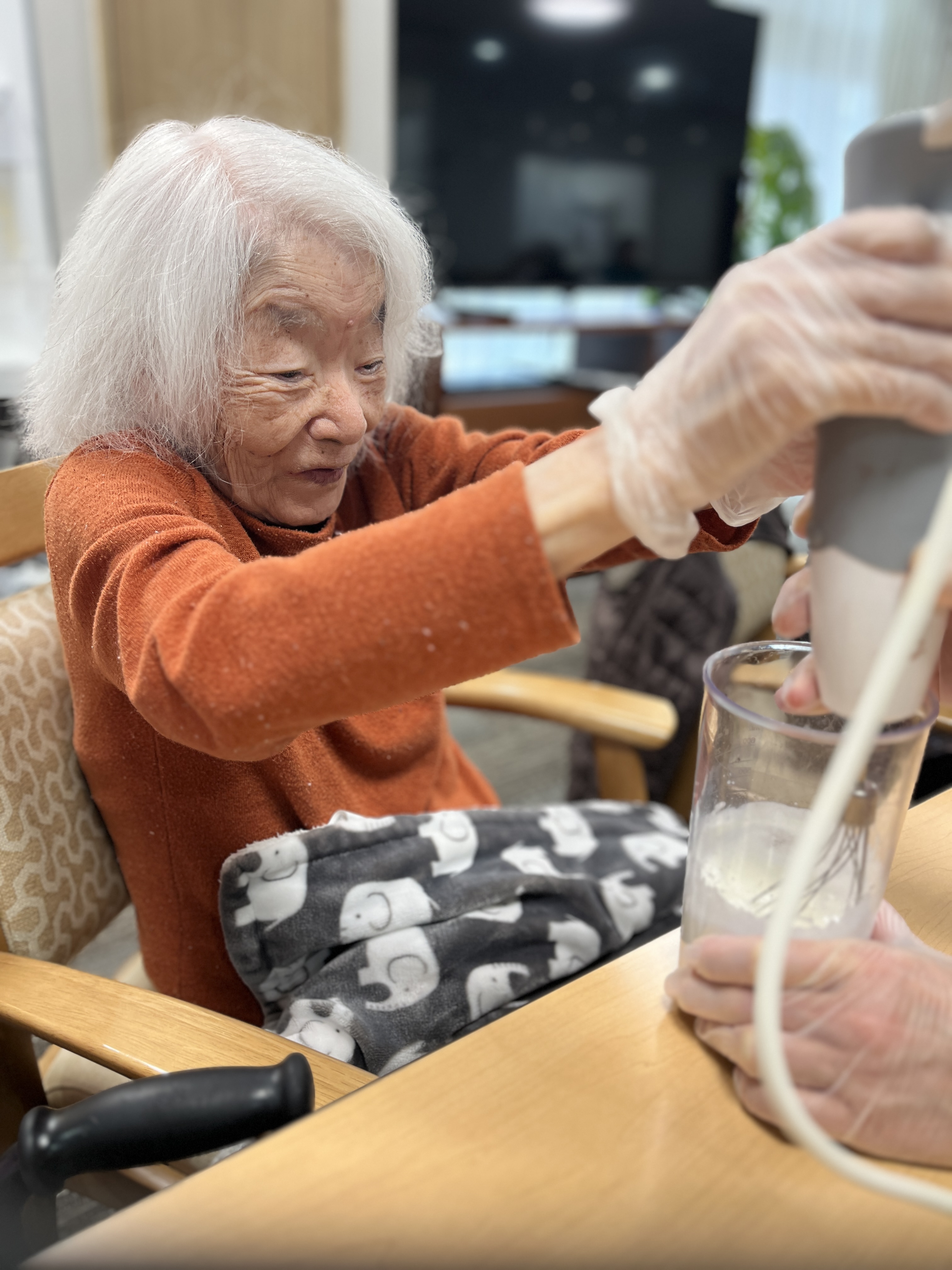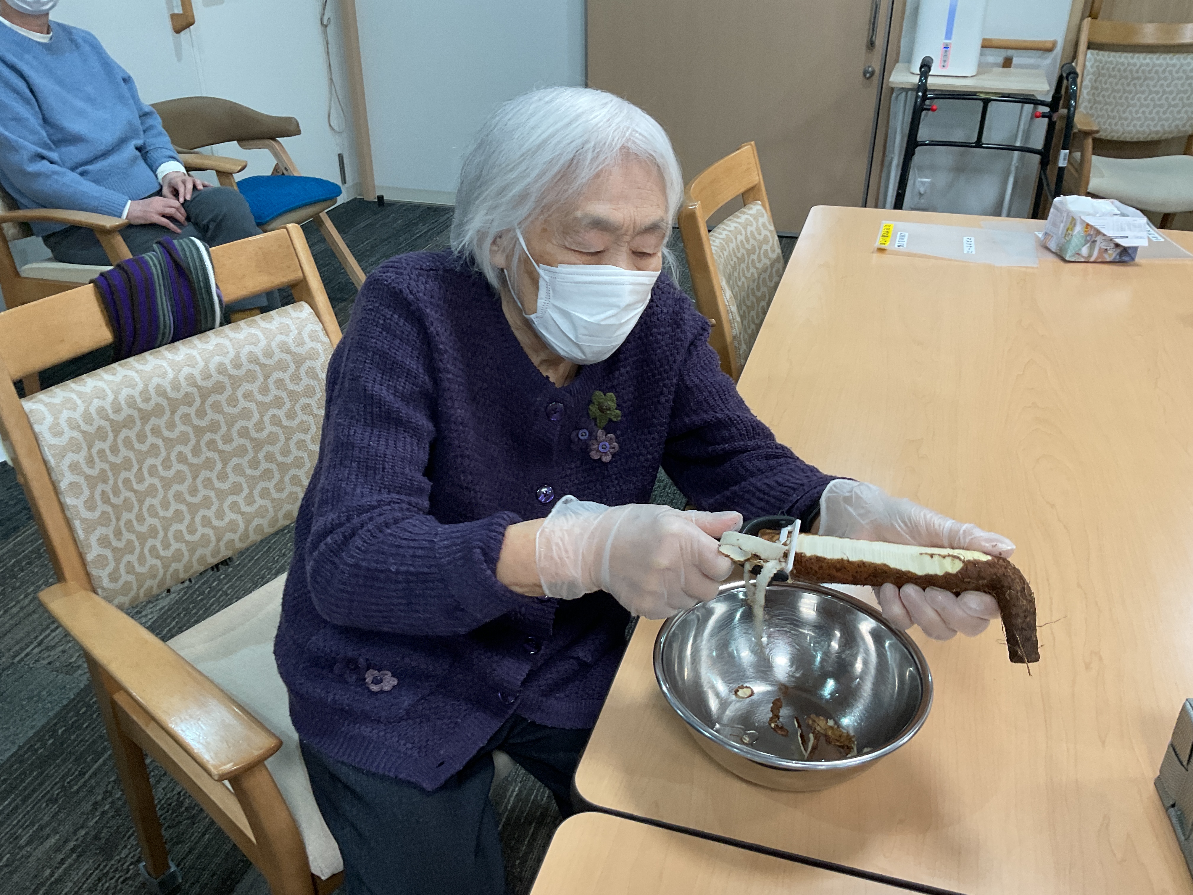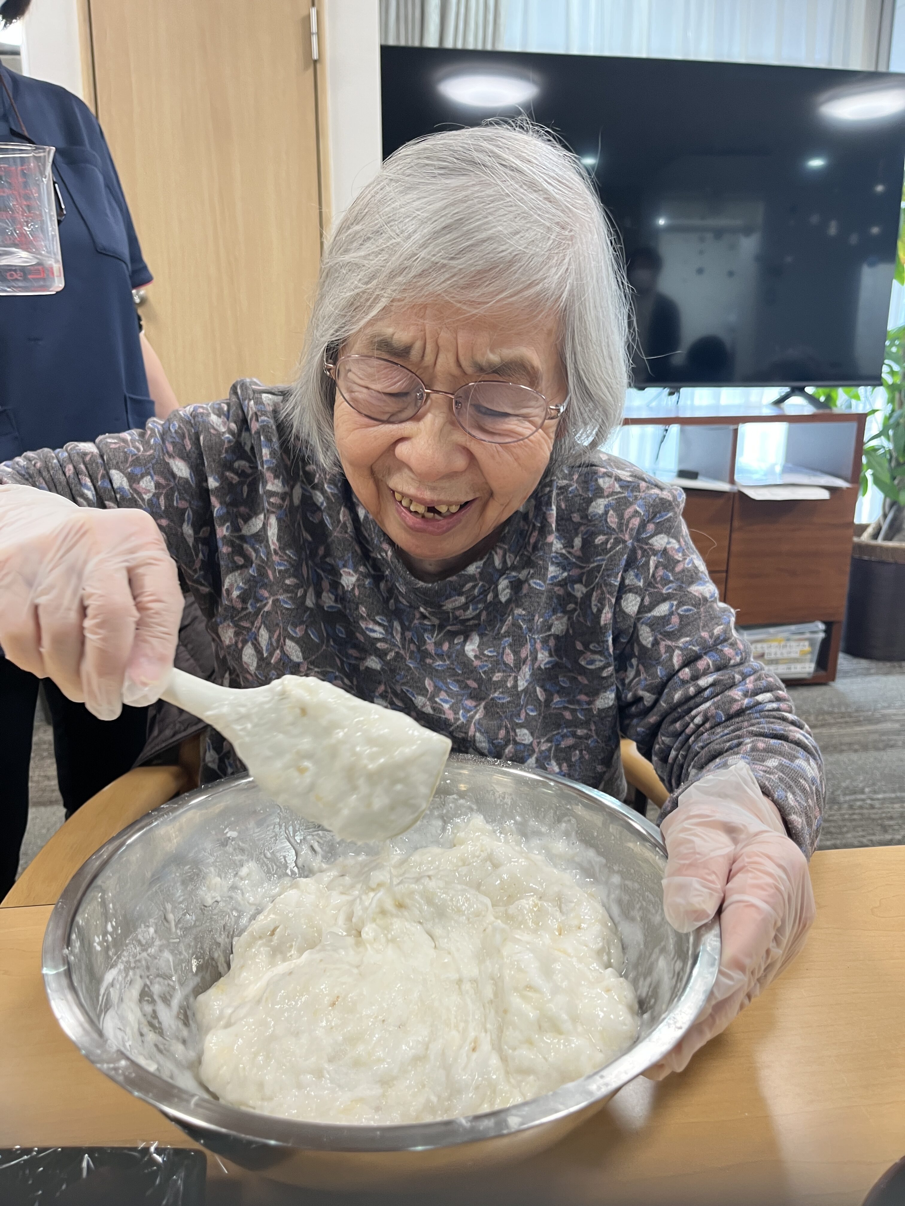 今日はおやつレクリーションを開催し、黒糖饅頭とかるかん饅頭を作りました!かるかん饅頭は生地に自然薯を練りこみ、さらに卵白を混ぜてもっちり&ふんわり食感が特徴です!黒糖饅頭は小麦粉に黒糖と重曹を混ぜあんこを包みました。ふかしたては最高の美味しさでした!