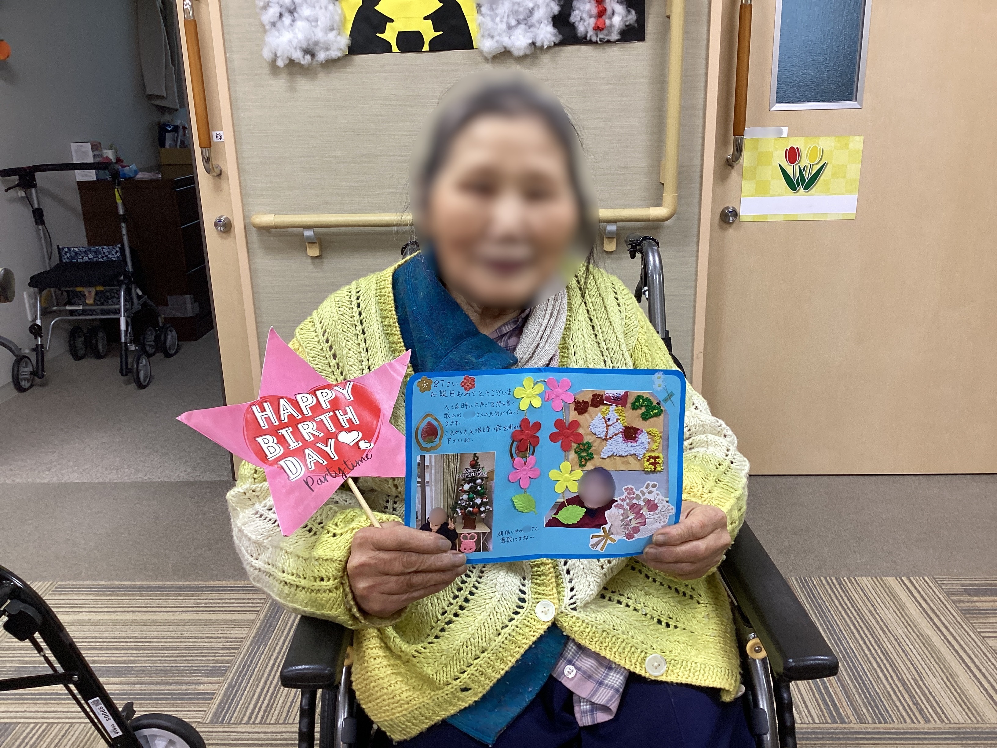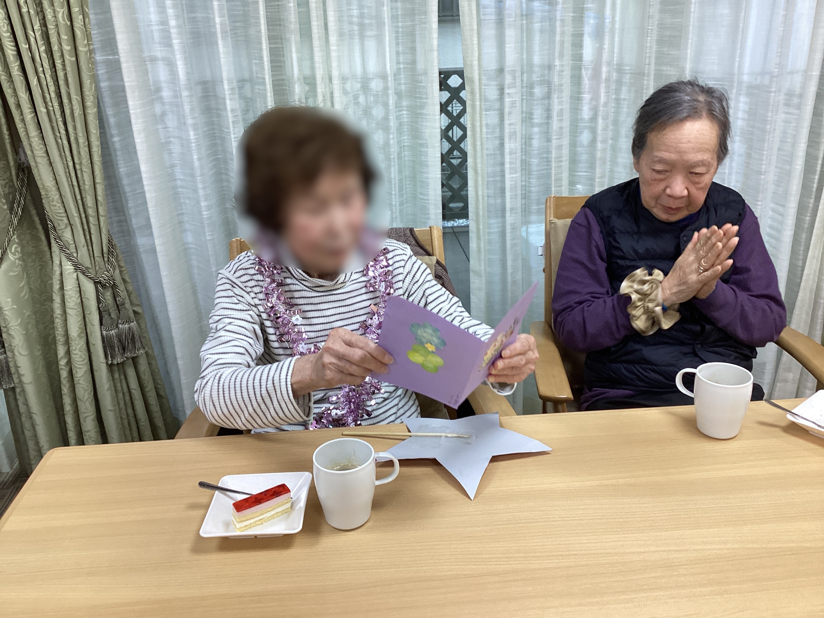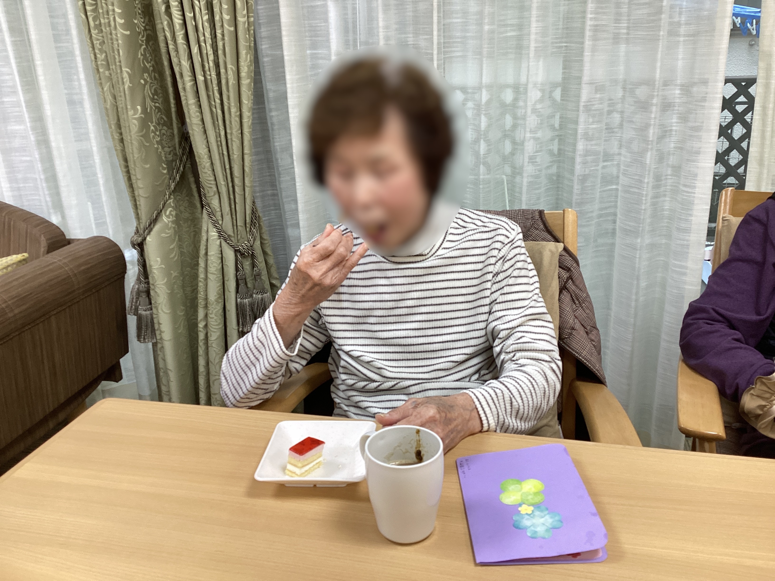 1月のお誕生日会を行いました🎂皆さんで手拍子しながらバースデーソングを歌い👏🏻♪職員からは心を込めて作ったバースデーカードのプレゼント🎁おやつでは苺のケーキとコーヒーをいただき、楽しいお誕生日会となりました🍓
