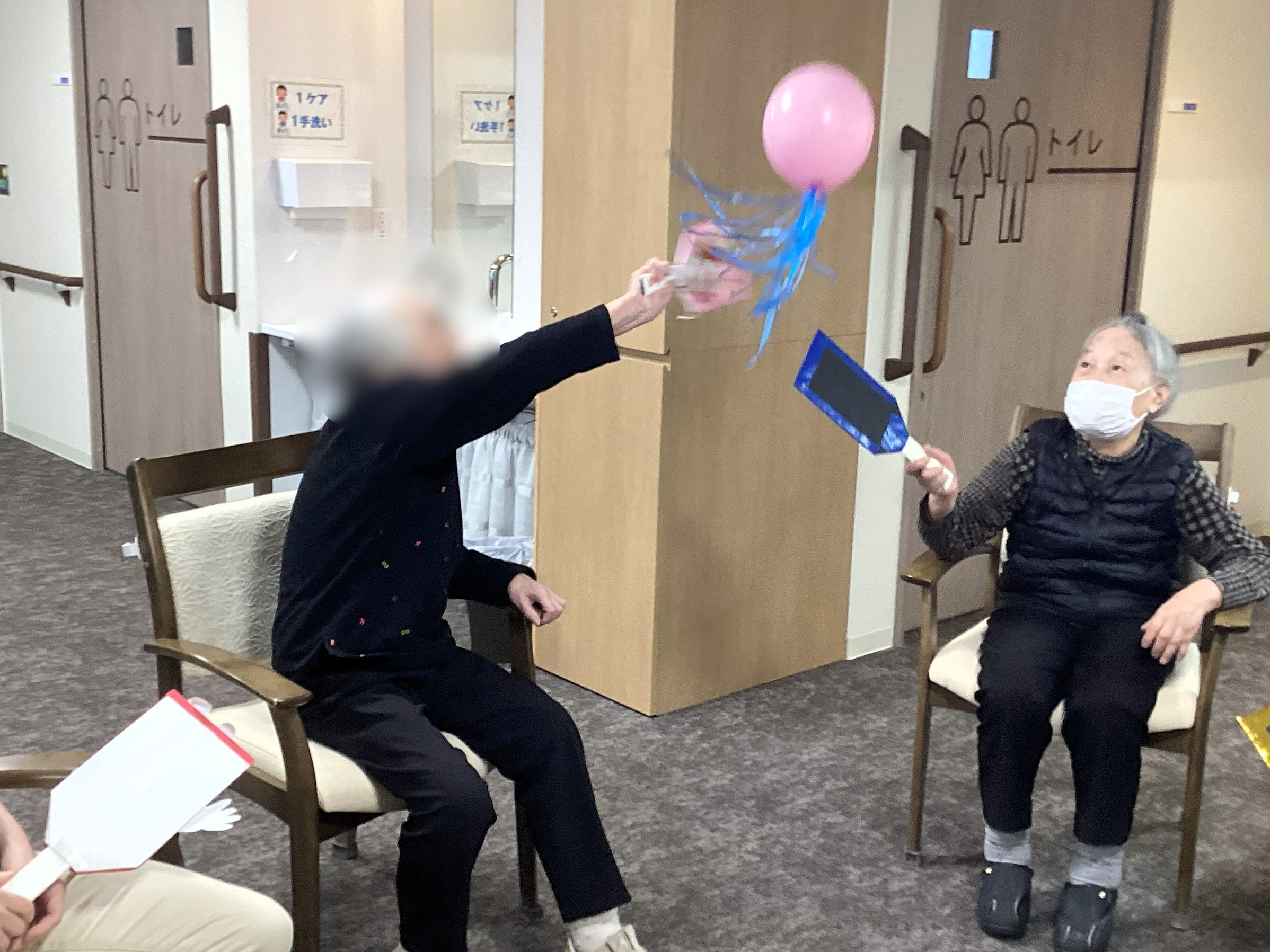 冬の風物詩(*^_^*)羽根つき!!今回は風船で行いました。