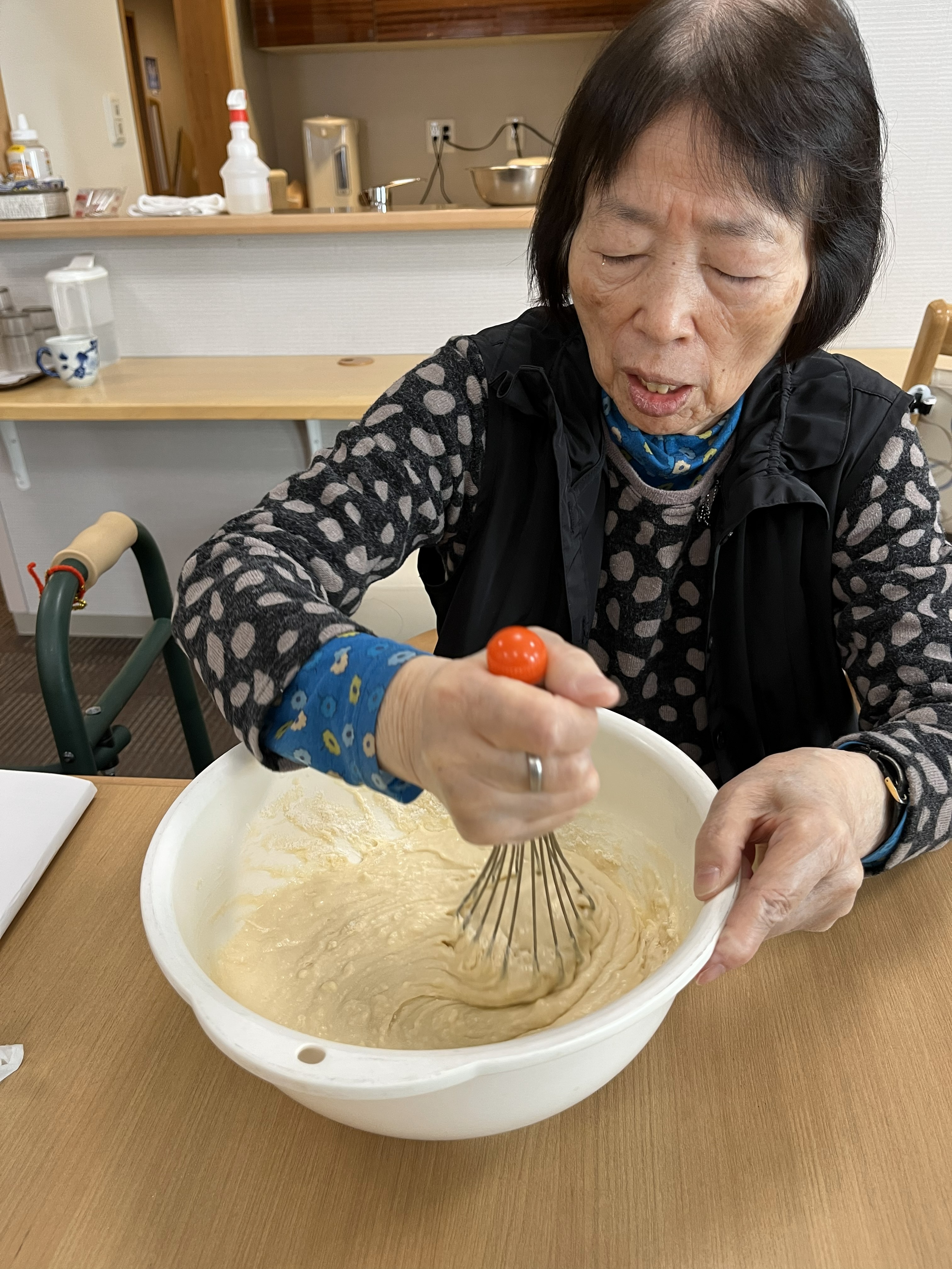ホットケーキを混ぜた後は皆様達成感が生まれ、満足げに召し上がりました!また作りましょうね~💛