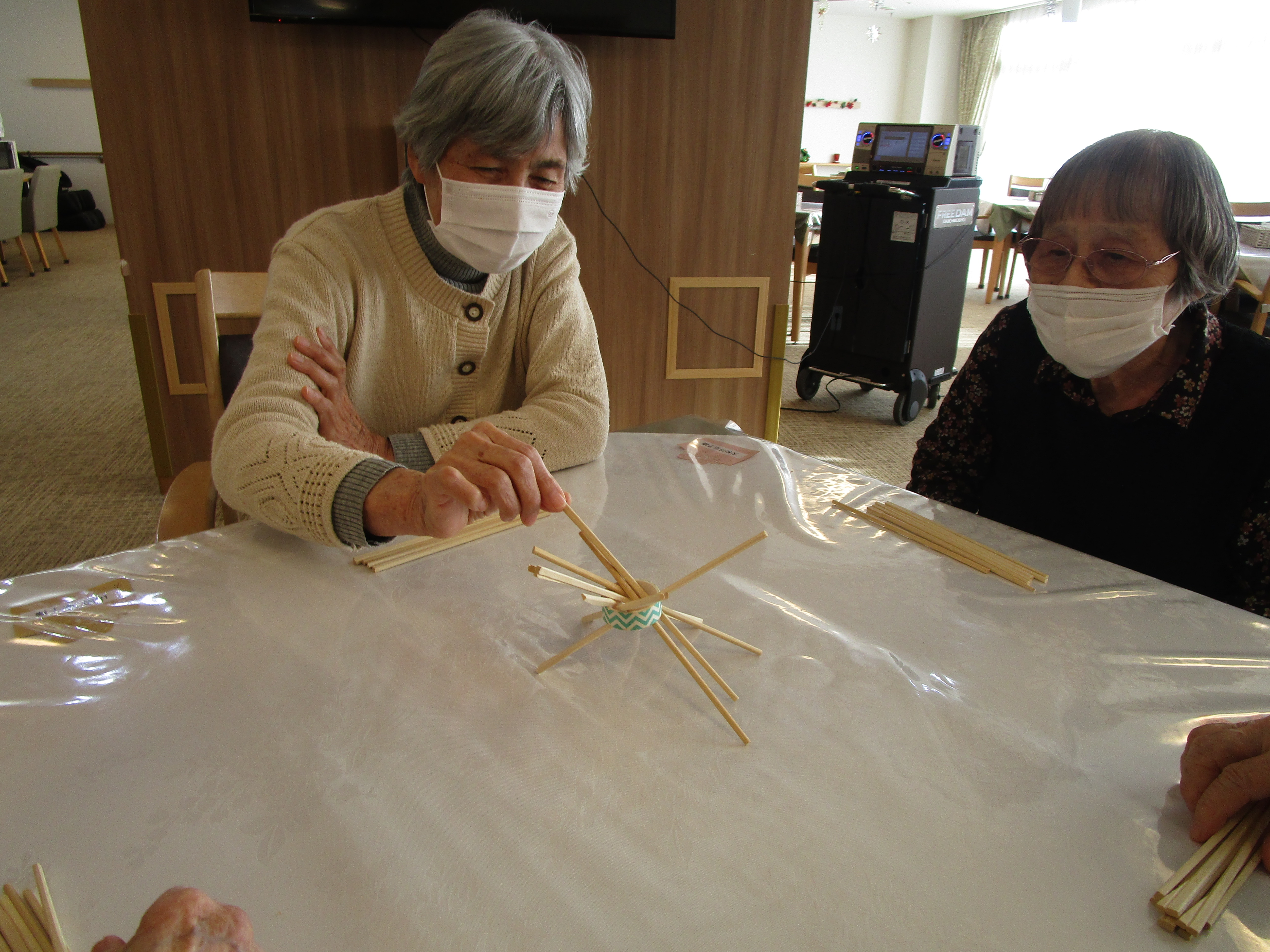 わっかに入っている割り箸を1本づつ抜いて倒さないようにするゲームを行いました!(^^)! 交差しあってどこ抜く~て皆さん考えながらでとても楽しいゲームでした☺