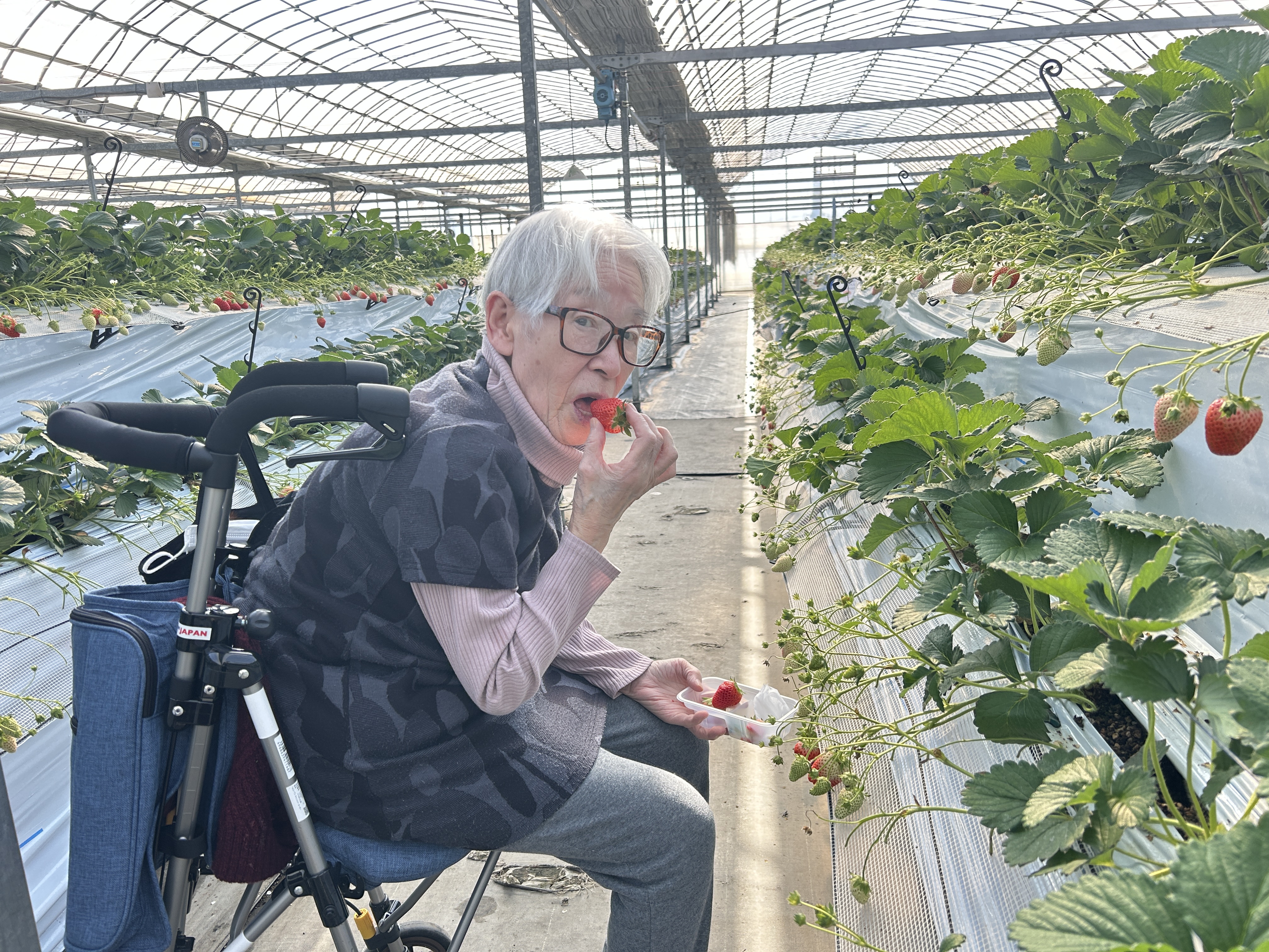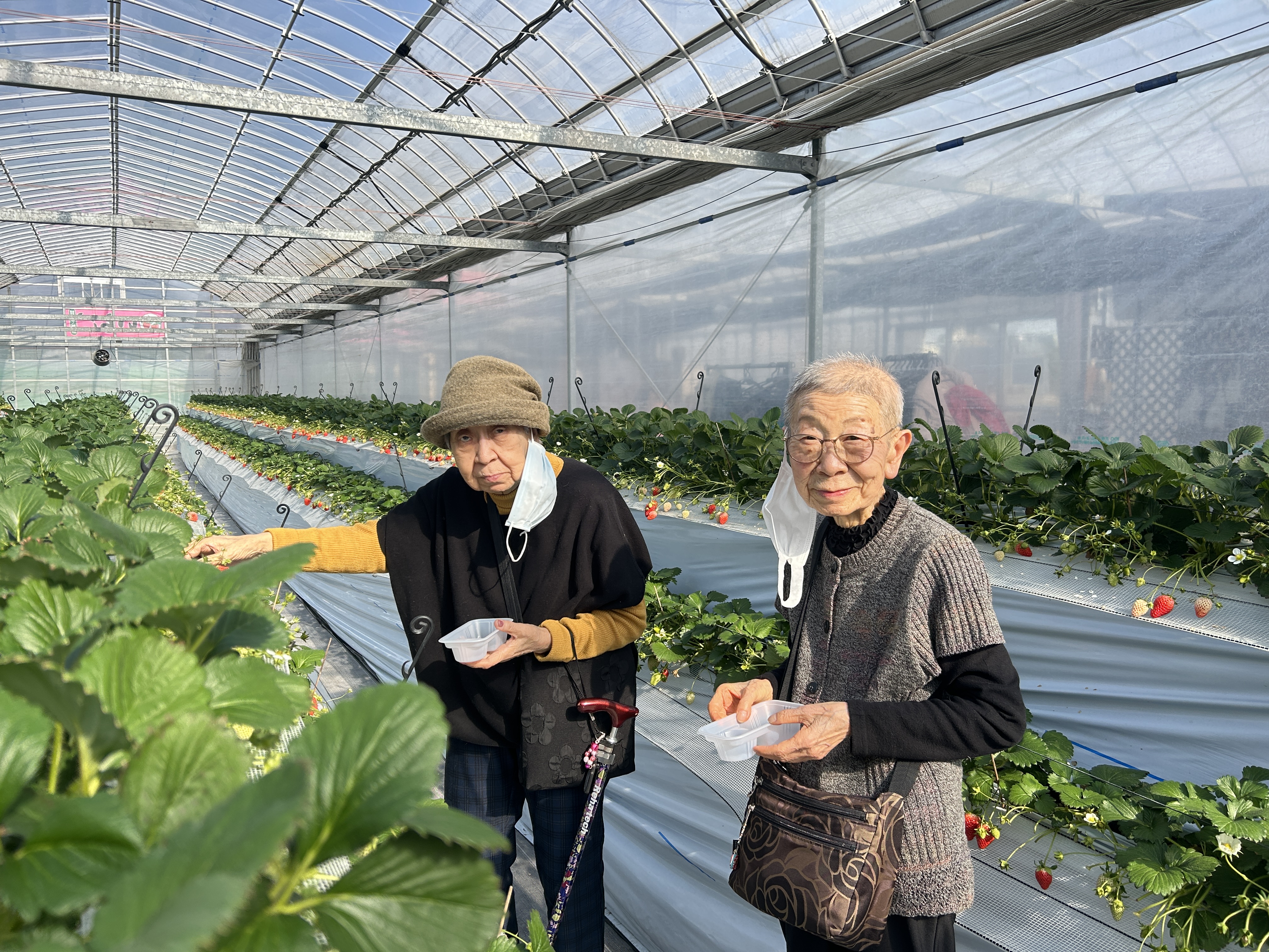 本日1月27日は少し遠出をし、いちご狩りを堪能しました!! 沢山の品種の食べ比べを楽しんだり、お気に入りの品種を見つけ、たくさん召し上がっていました😊 いちご狩り後はお昼ご飯で回転寿司へ、やはり別腹のようで皆さんしっかり召し上がっていました😊