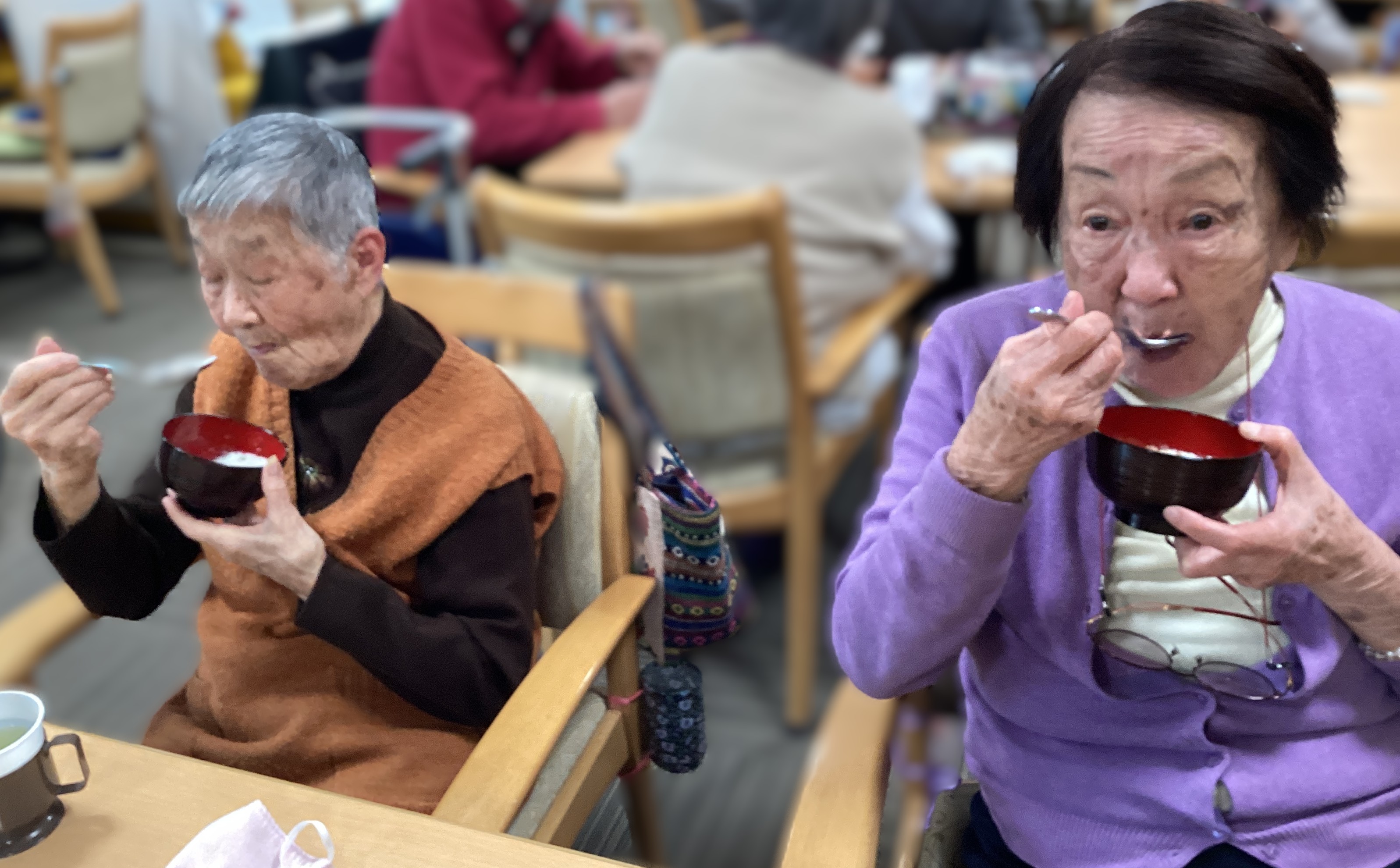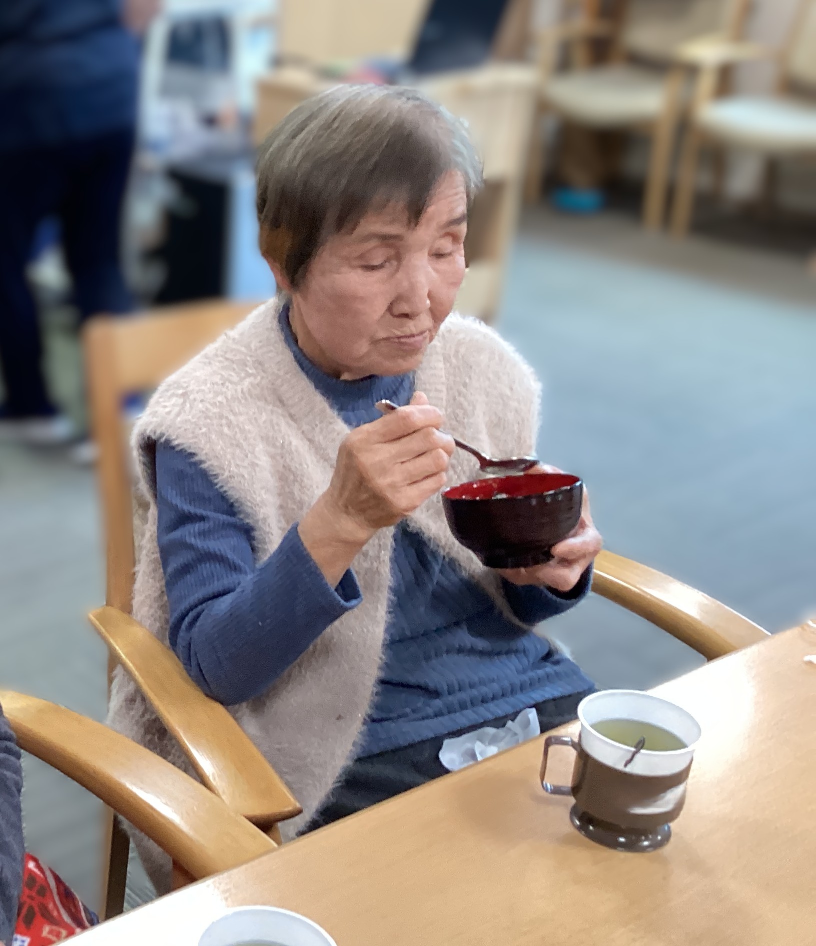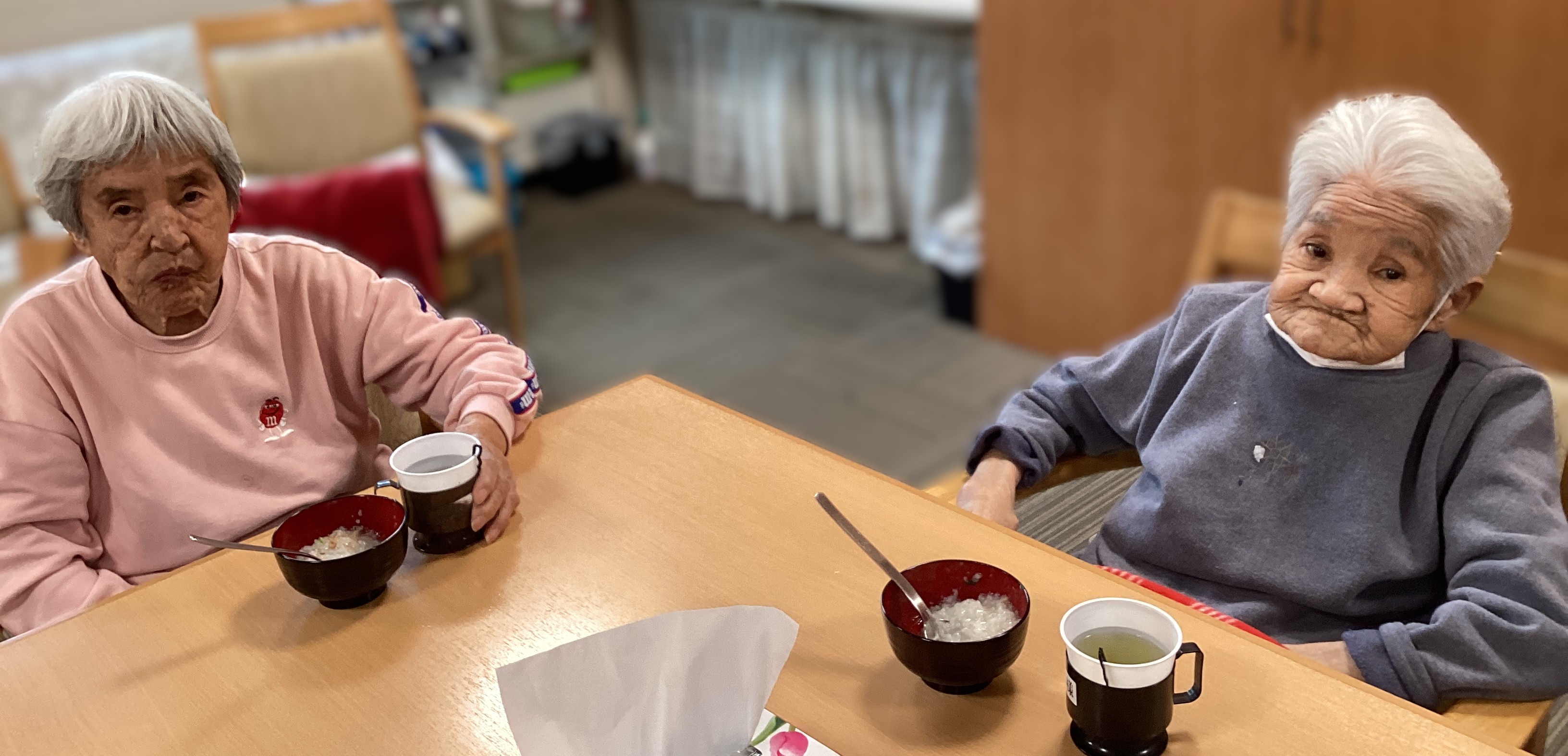 1月7日のおやつレクで七草かゆを作りました。春の七草の若芽を食べて植物がもつ生命力を取り入れ、無病息災でいられるようにという由来があるそうです。皆さんお替りして美味しく召し上がりました。