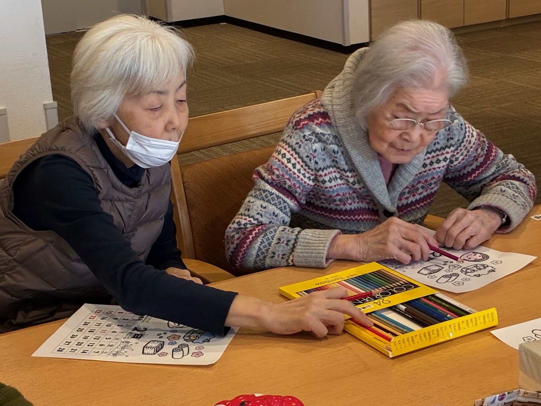 今日は2月のカレンダー制作(塗り絵) 皆さん、何色にしましょうか? 悩みながら作成中です😊