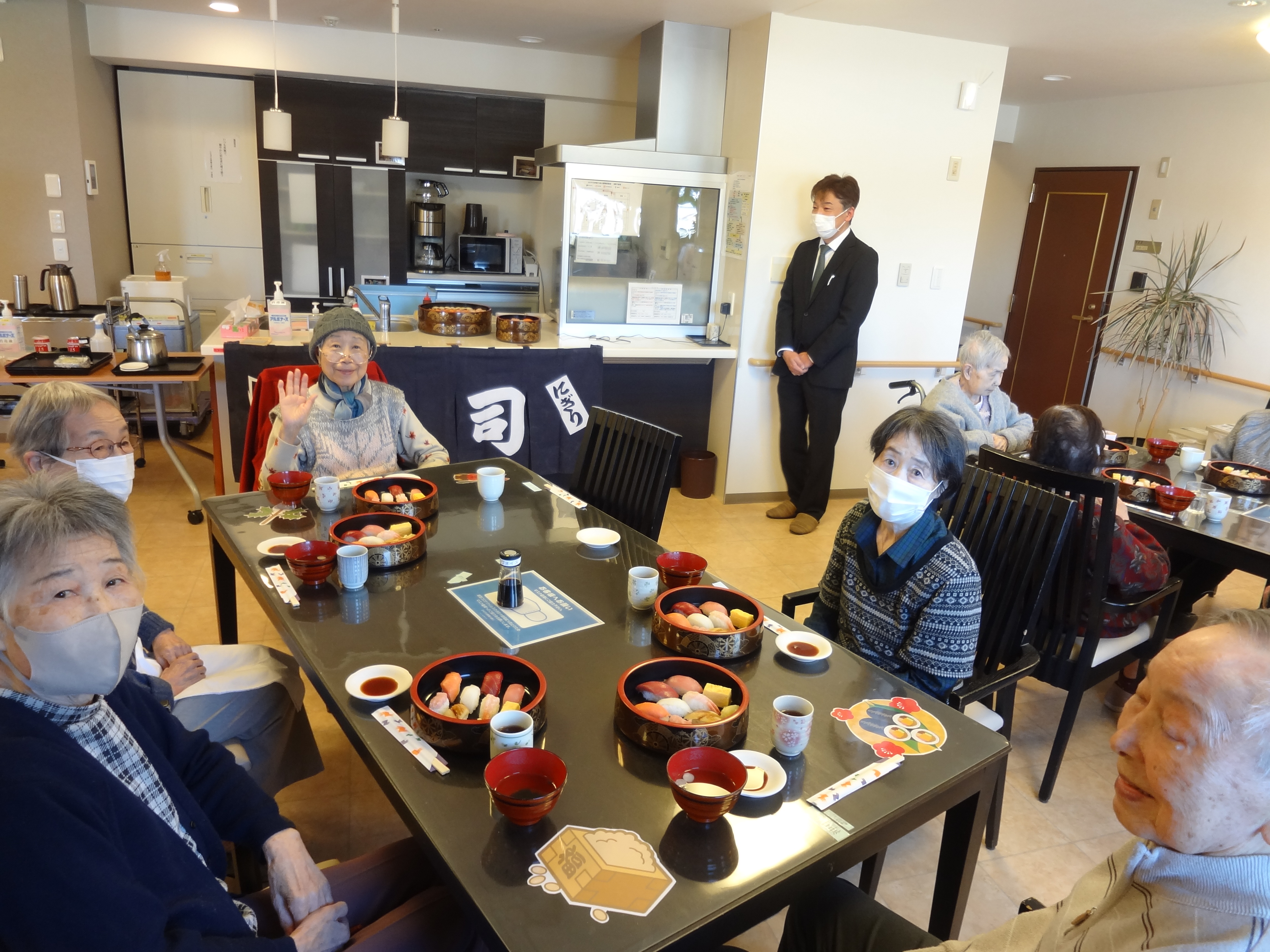 今日は出張握りずしが来ました!!!目の前で職人さんがお寿司を握ってくださり出来立てをパクリ🍣皆様の笑顔を見ることができイベント大成功でした!! デザートは今が旬のフルーツを提供させていただきました。