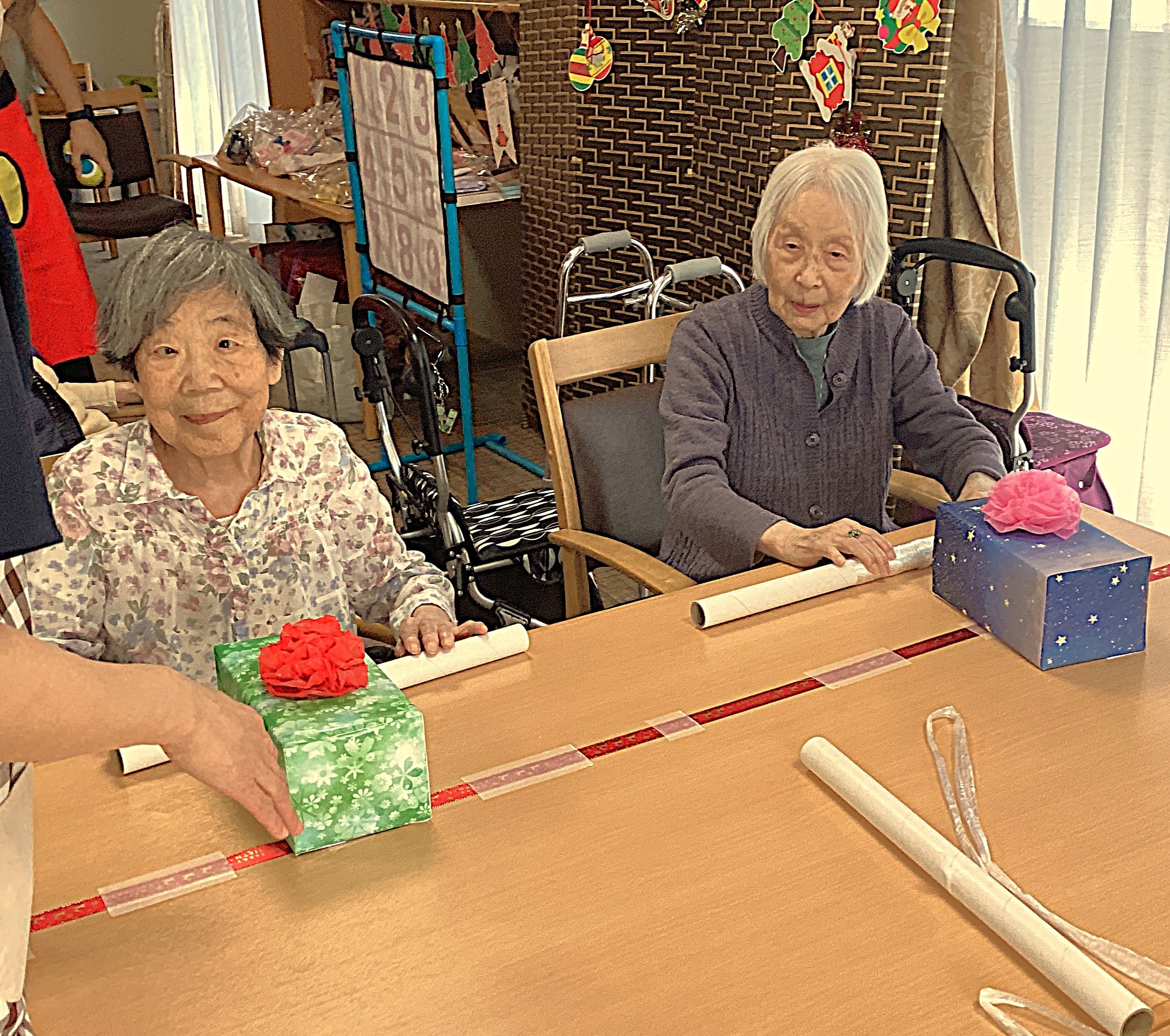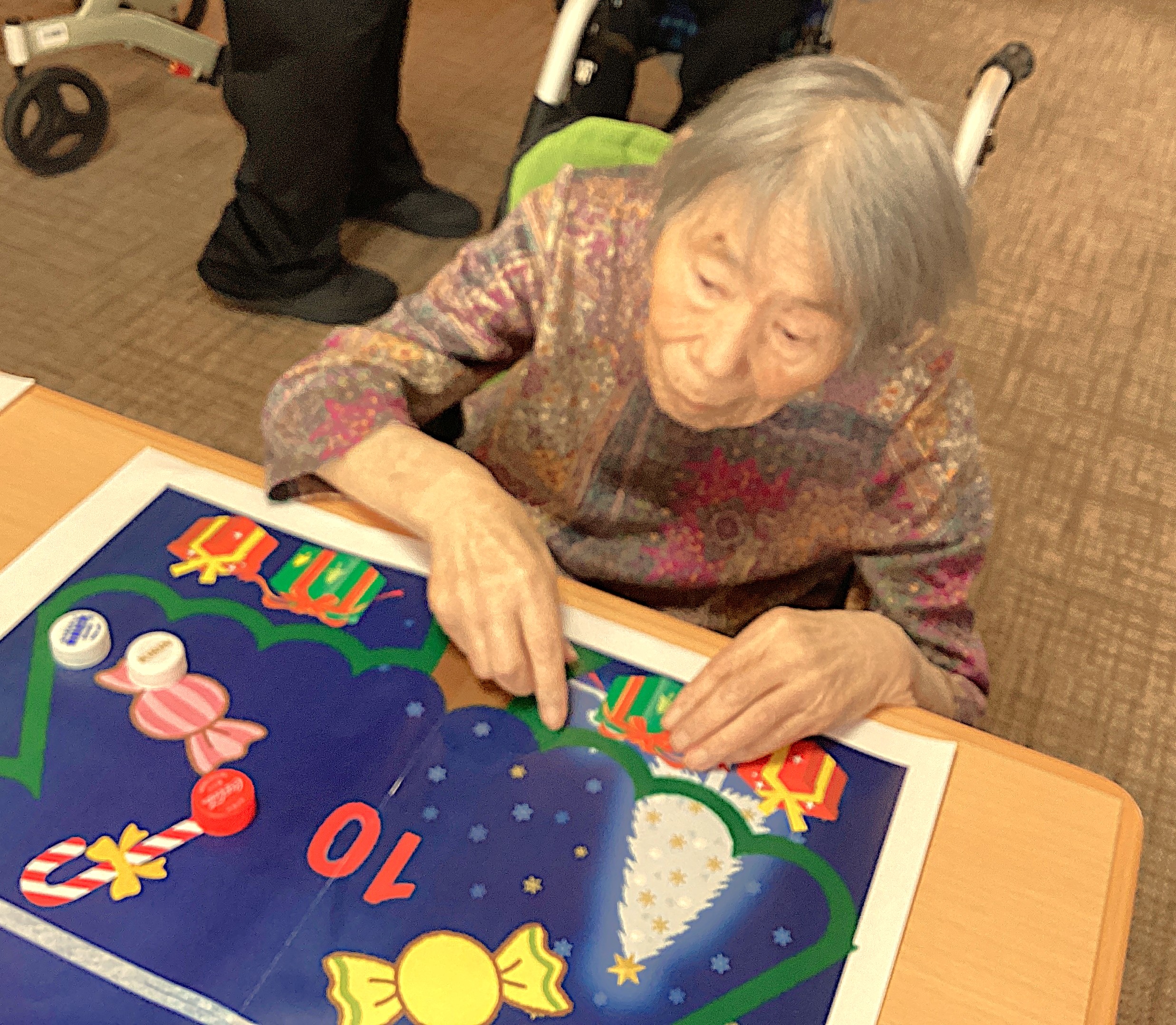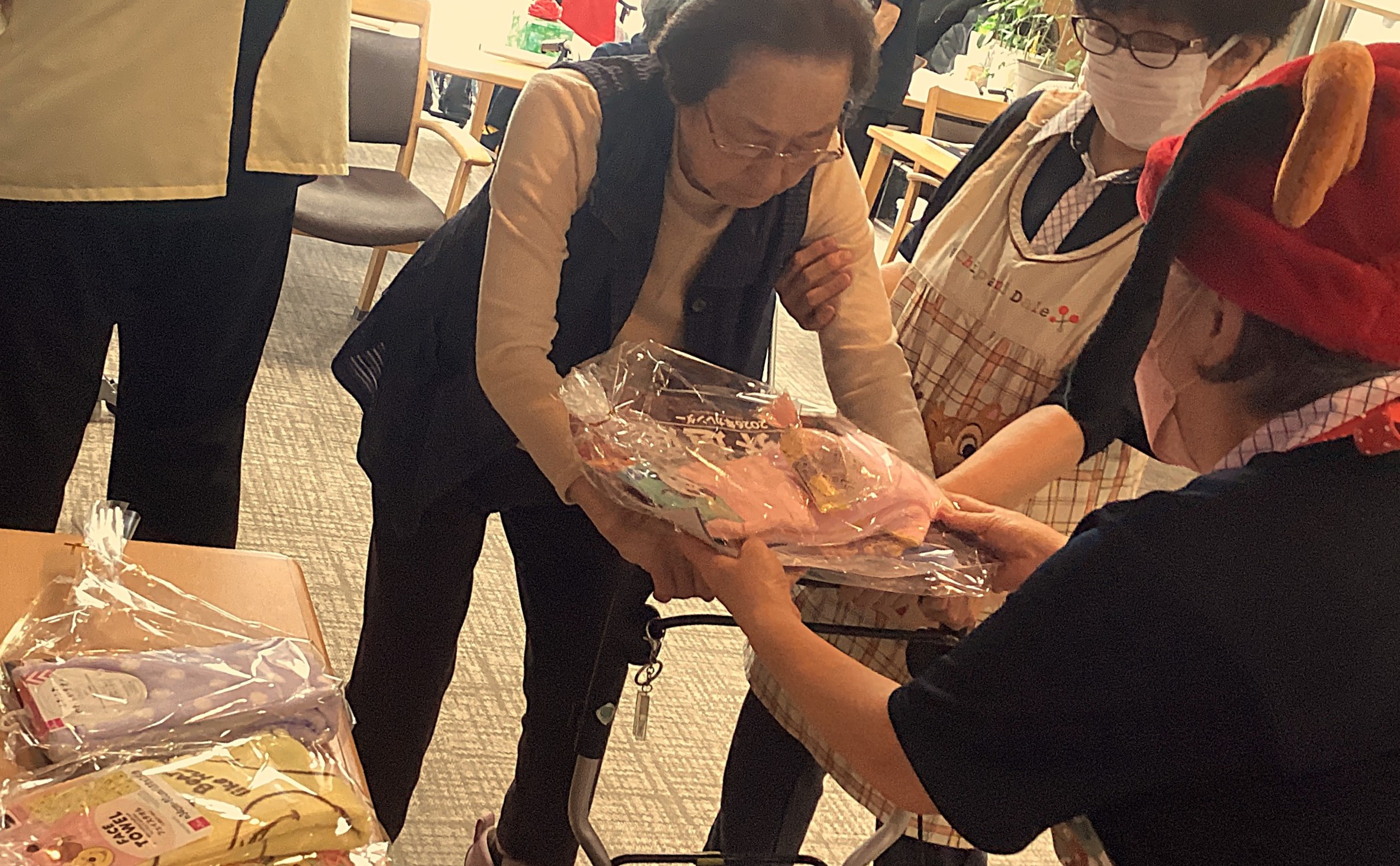 2025年ミモザ厚木藤苑クリスマス会を開催しました。ご利用者とスタッフ一緒にゲームをして楽しみました。プレゼント選びではあみだくじで順番を決めて選んでもらいました。今年も楽しいクリスマスになりました。