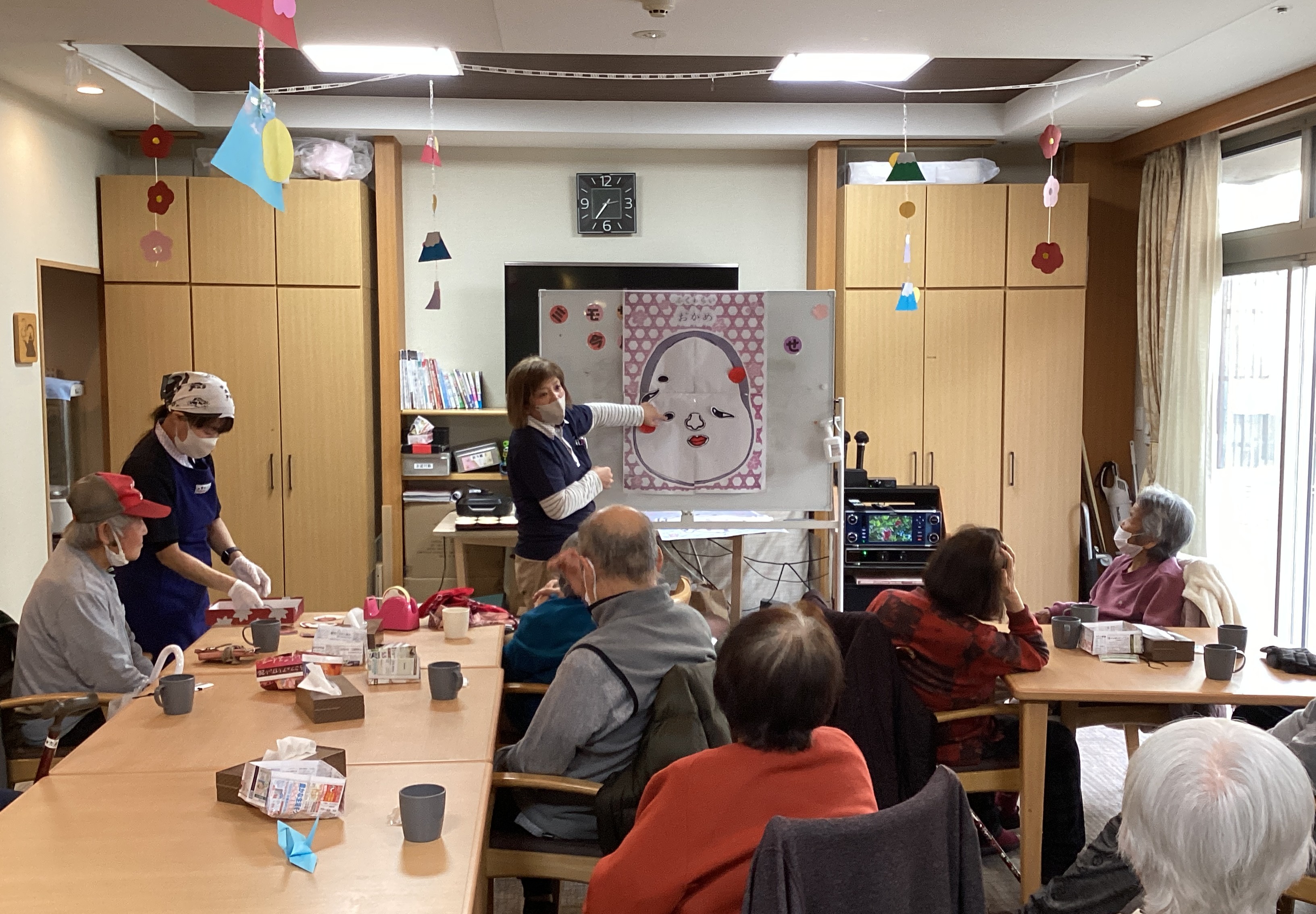 もうちょっと右!右!まだまだ上だよ!(福笑い)