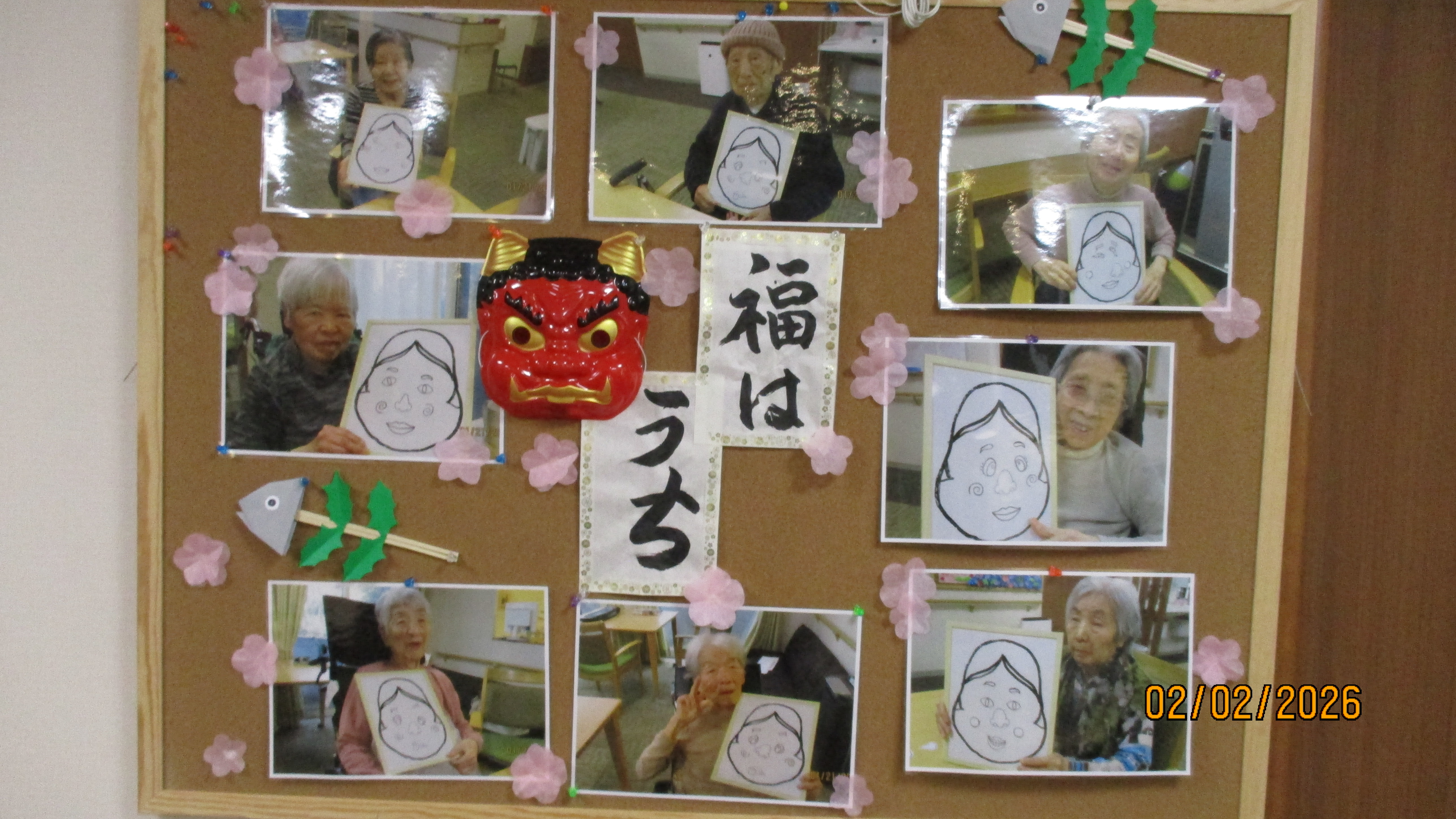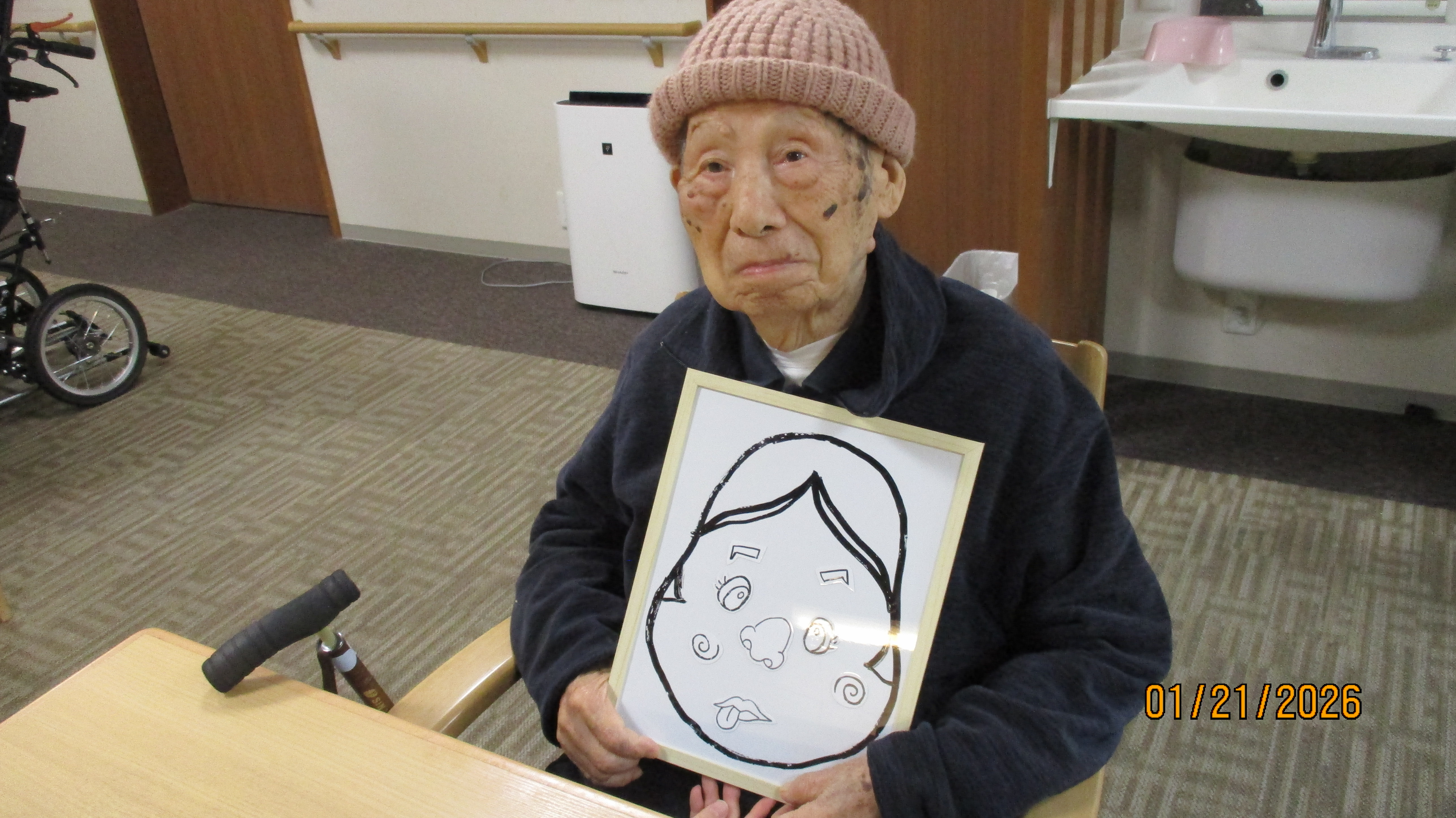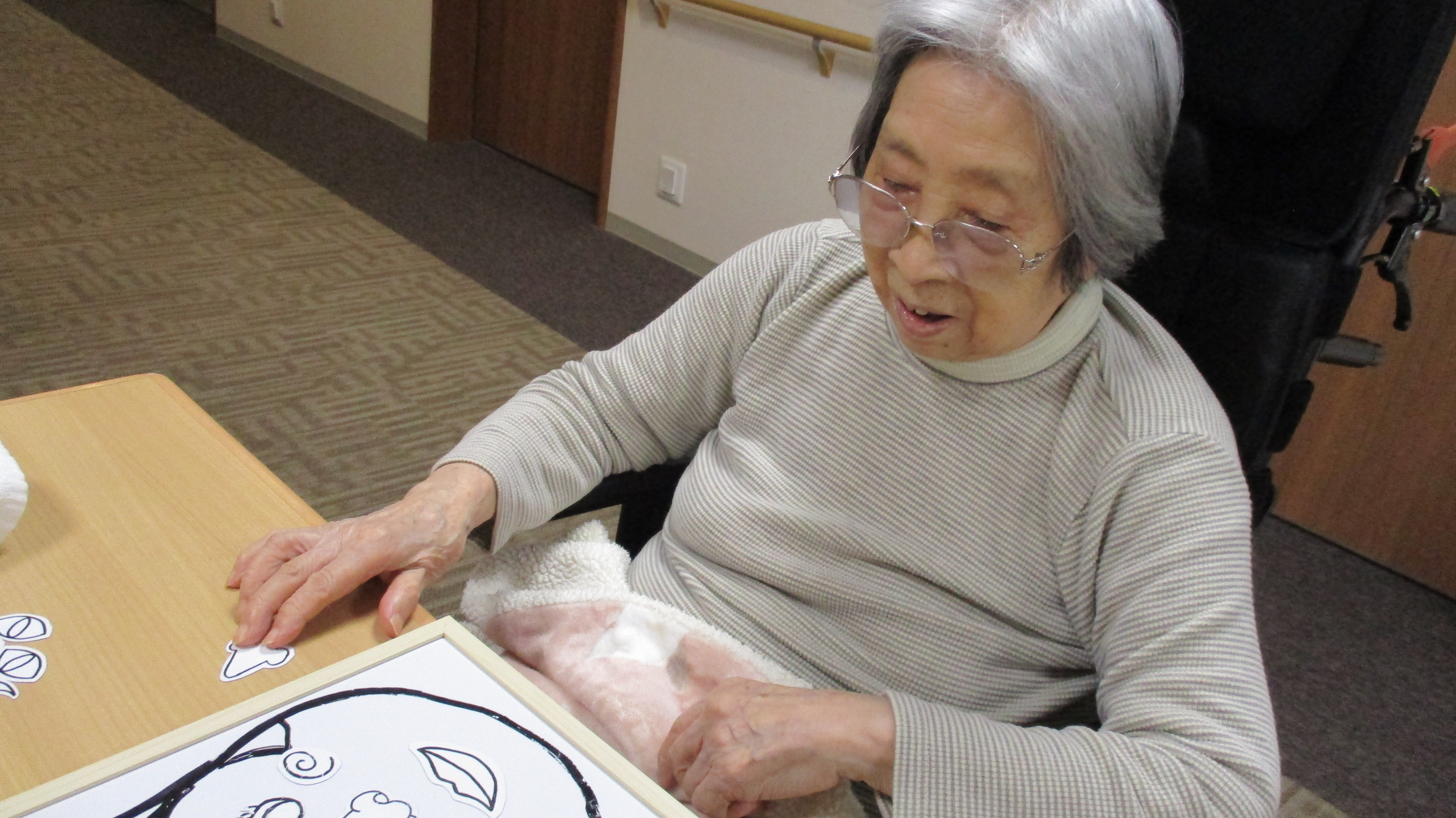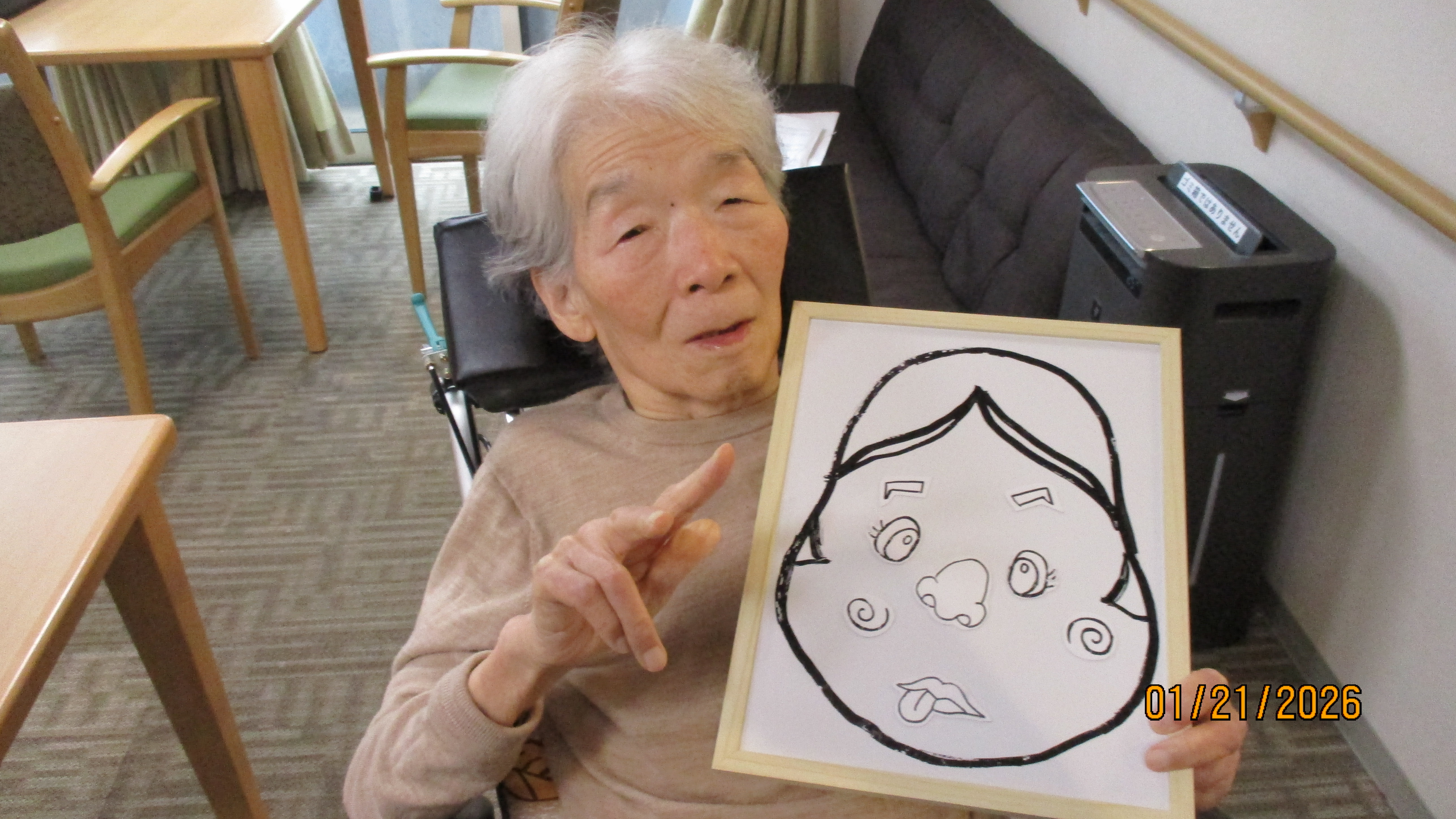 福笑いをみんなでやりました。 出来る方は目隠しをしてやりました。