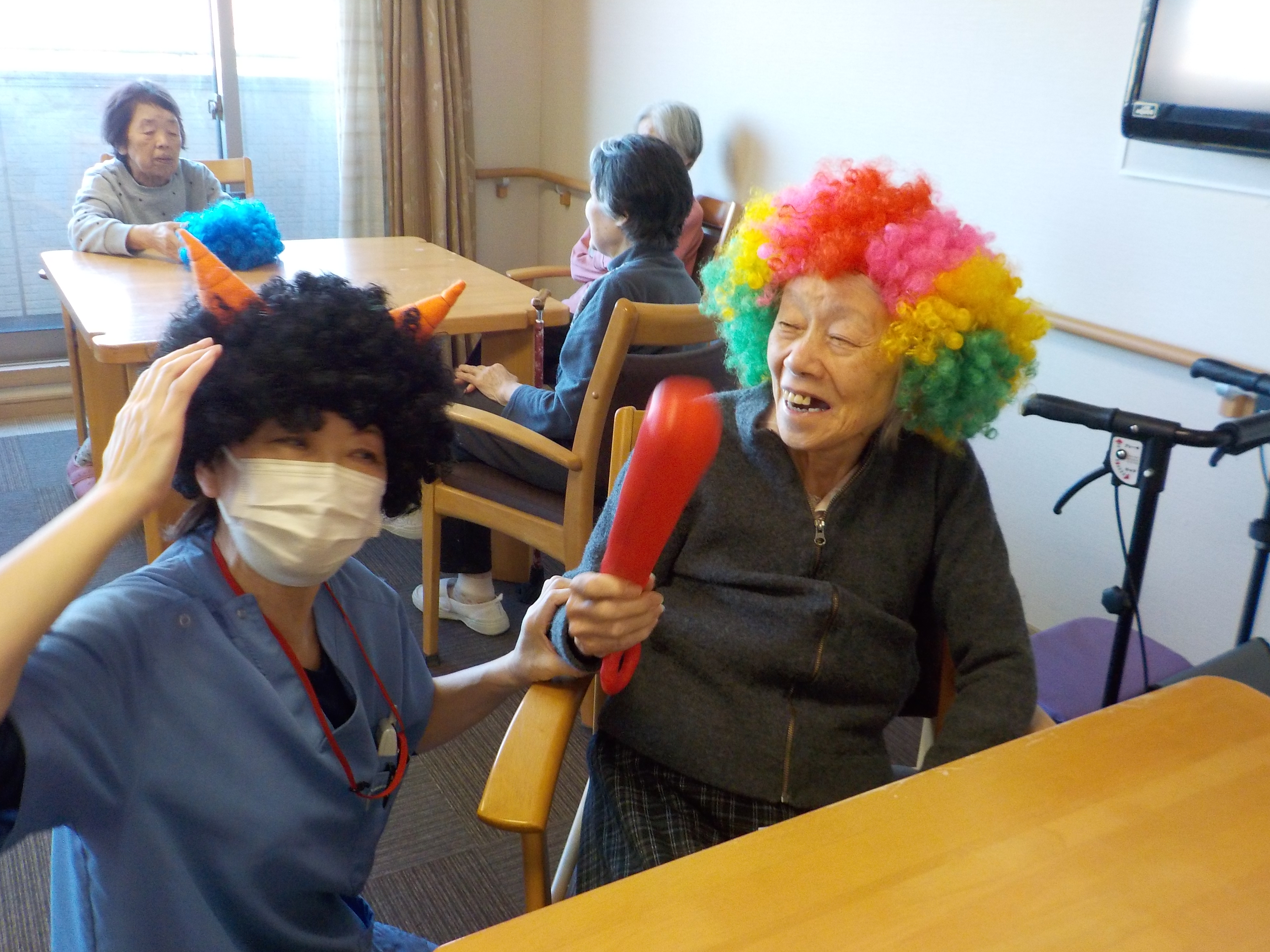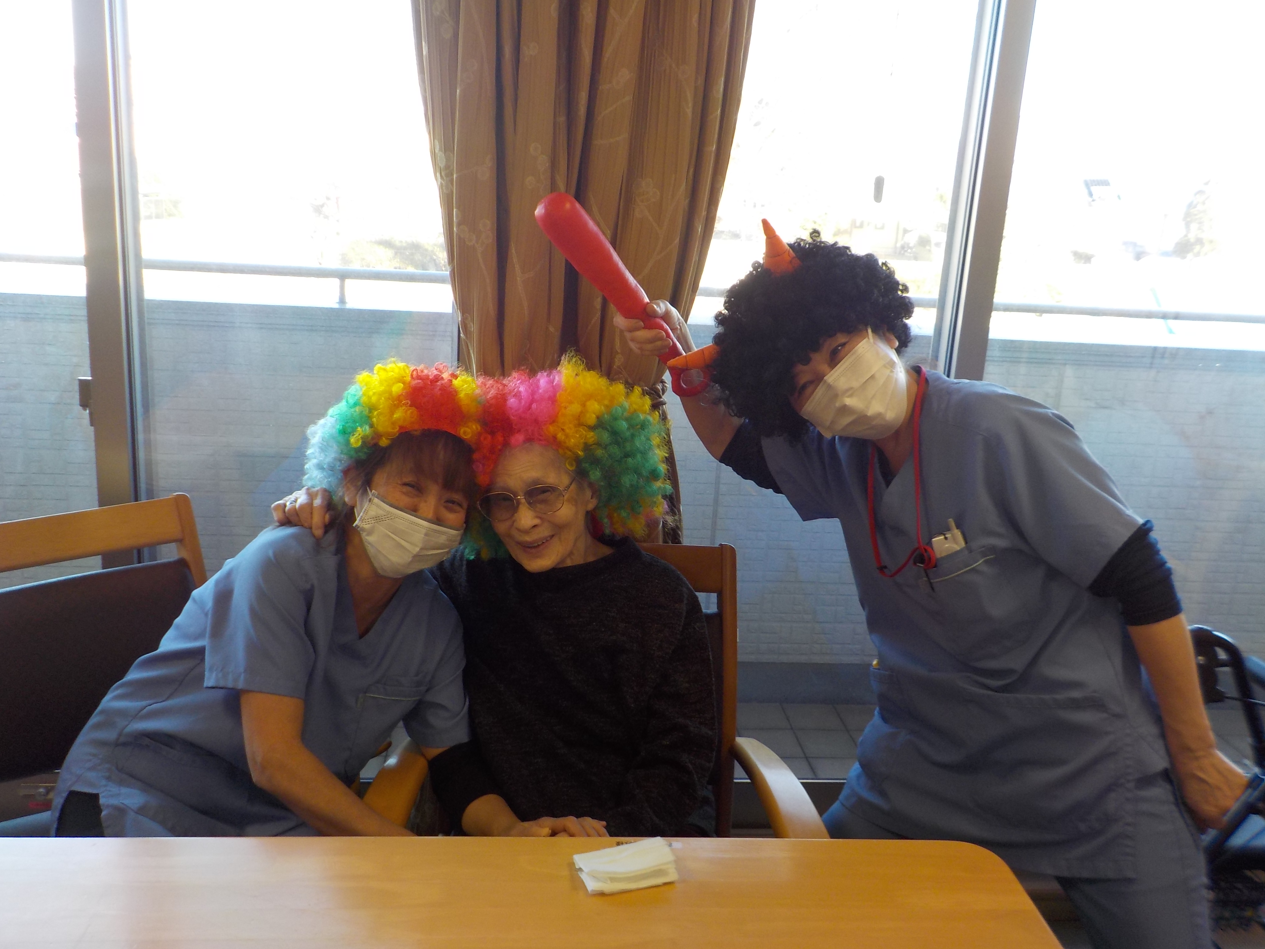 令和8年2月3日♪節分♪スタッフが鬼のカツラをかぶりました(^▽^)ご利用者の皆様に楽しんでいただけました☆~