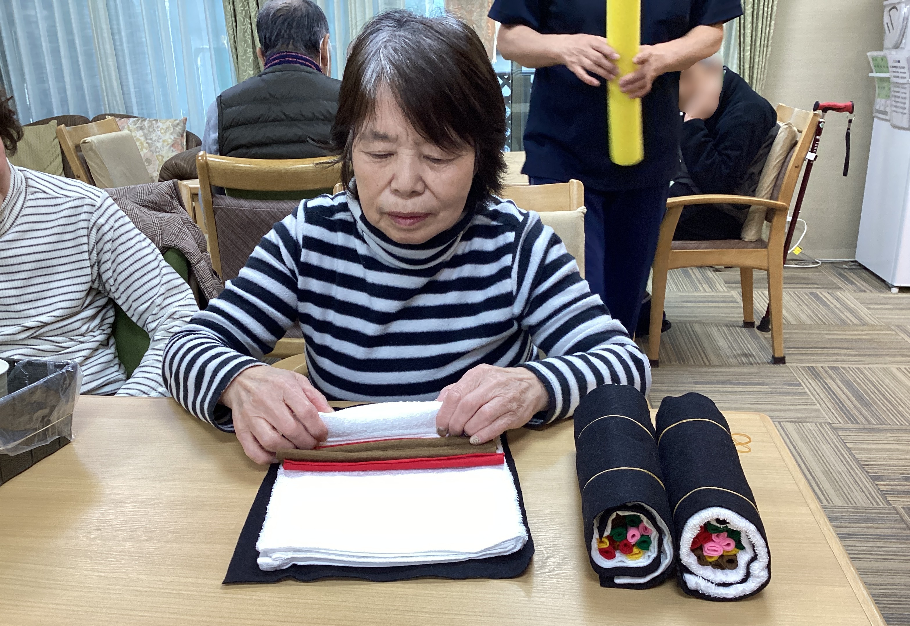 2月3日は【節分】!恵方巻作りと鬼の的あてゲームを楽しみました👹🫘おやつではロールケーキとコーヒーを召し上がり☕節分を存分に楽しみ笑顔あふれる時間となりました✨