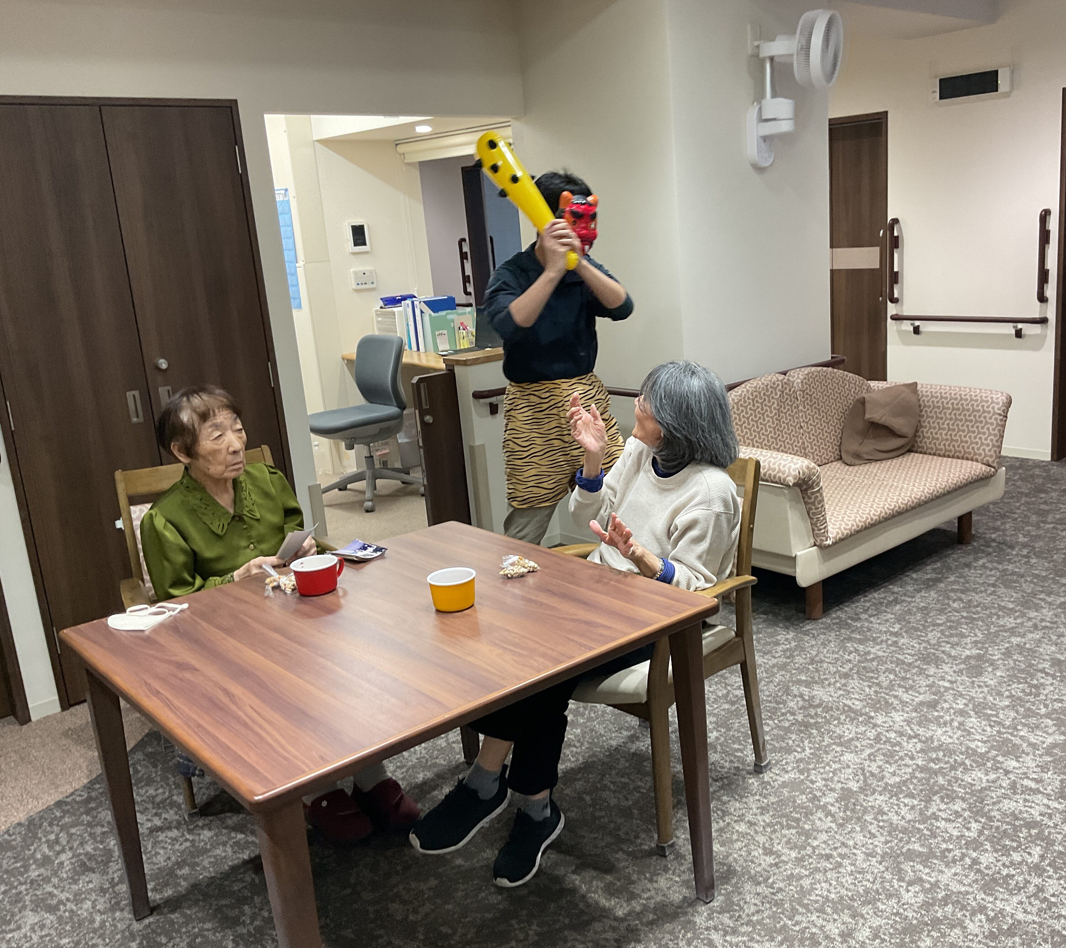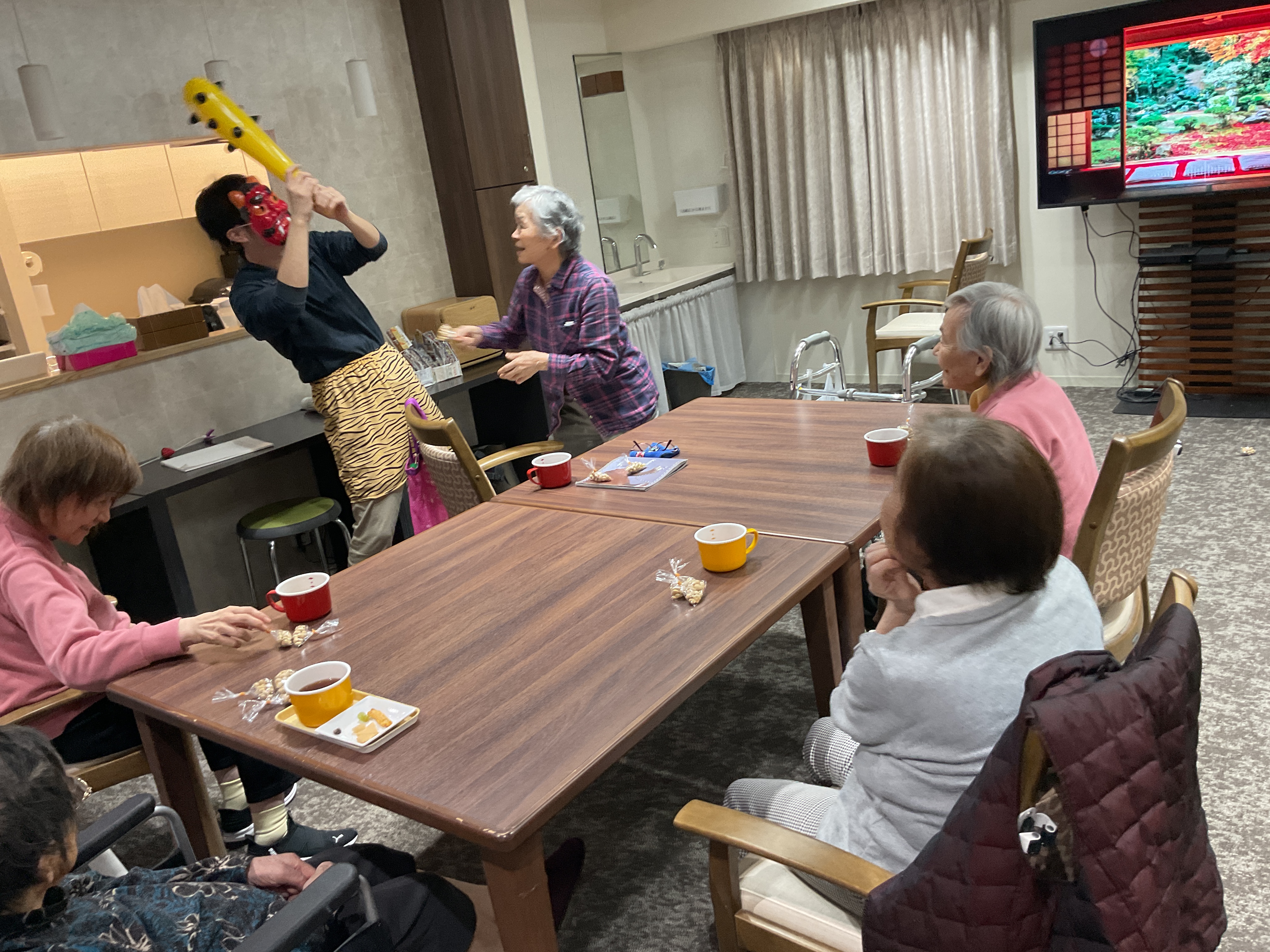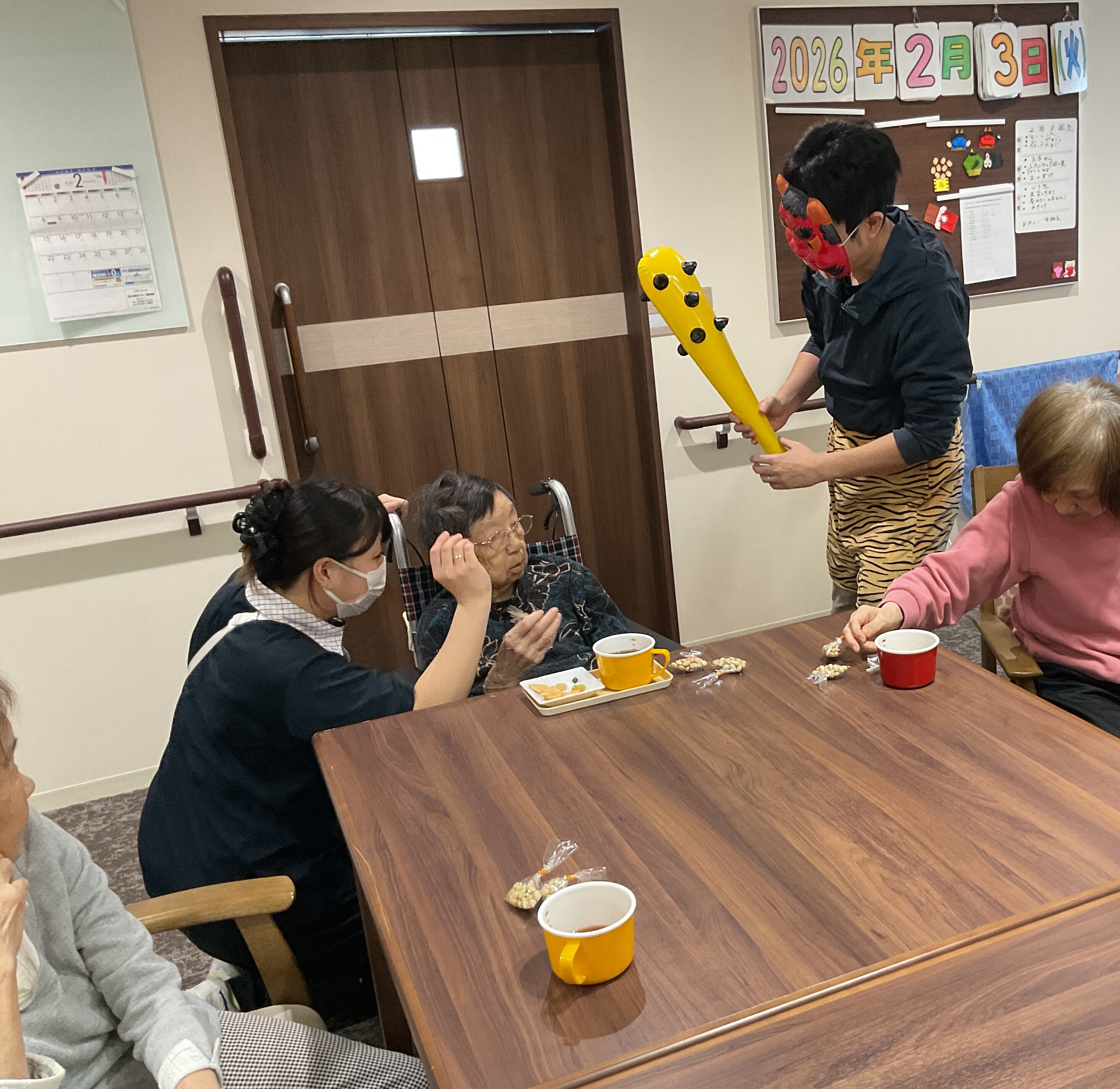 先日、多摩川グループホームでは節分レクが開催されました! 小袋に包んだ豆を鬼に向かって「鬼は~外!福は~内!」と投げました。 節分レクは盛り上がりのまま幕を閉じました。
