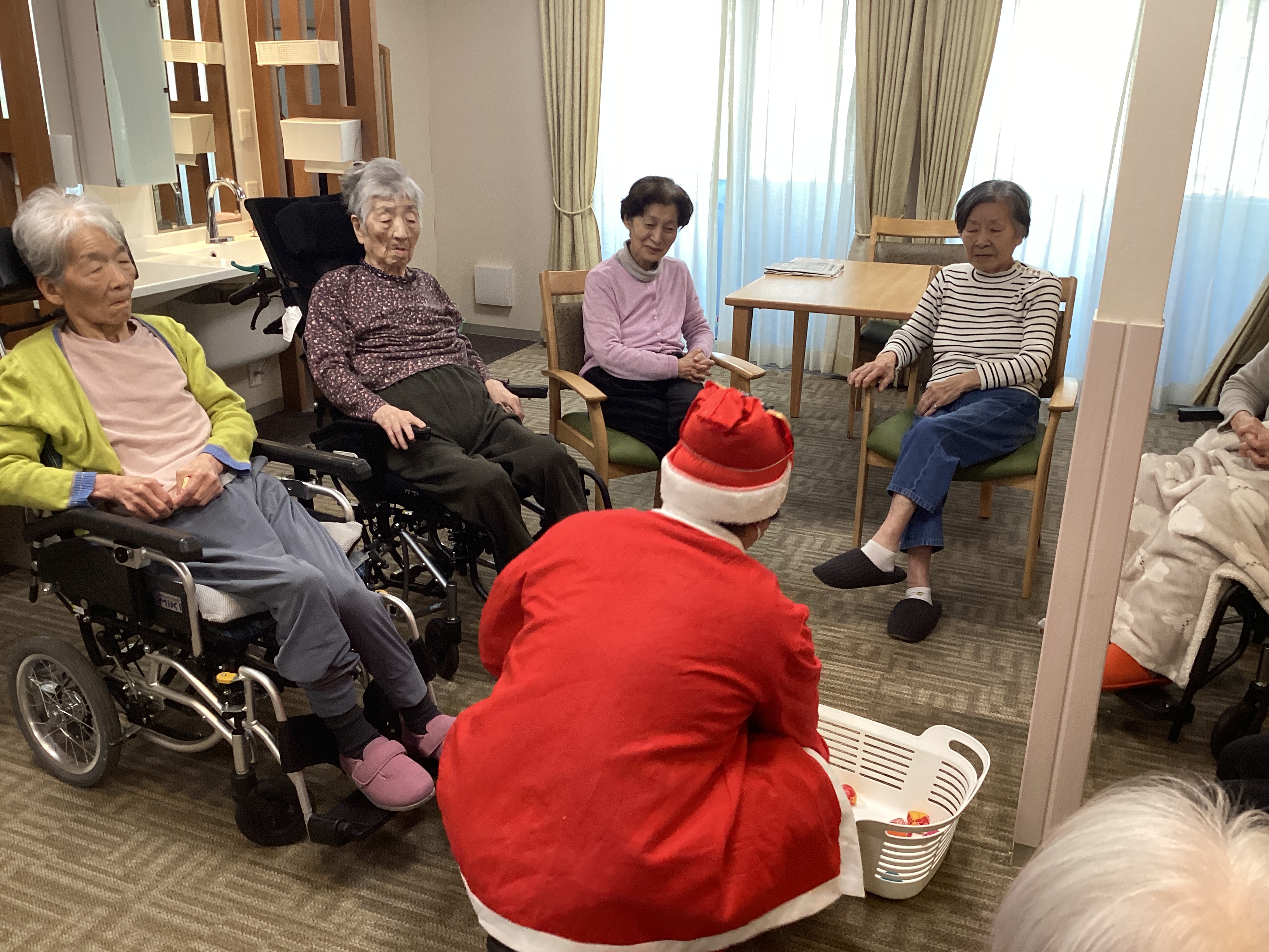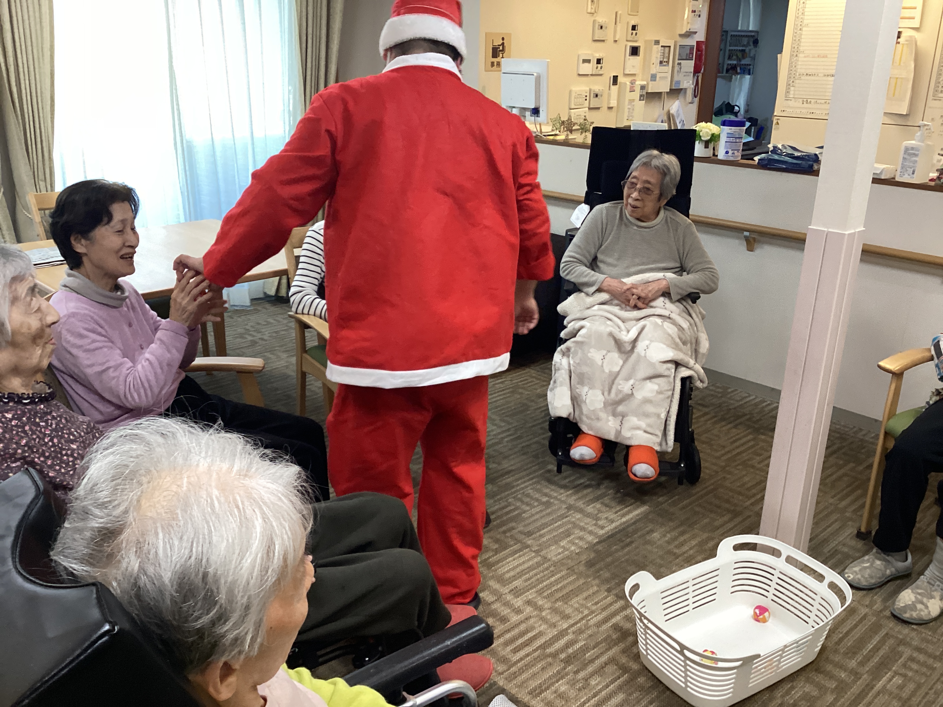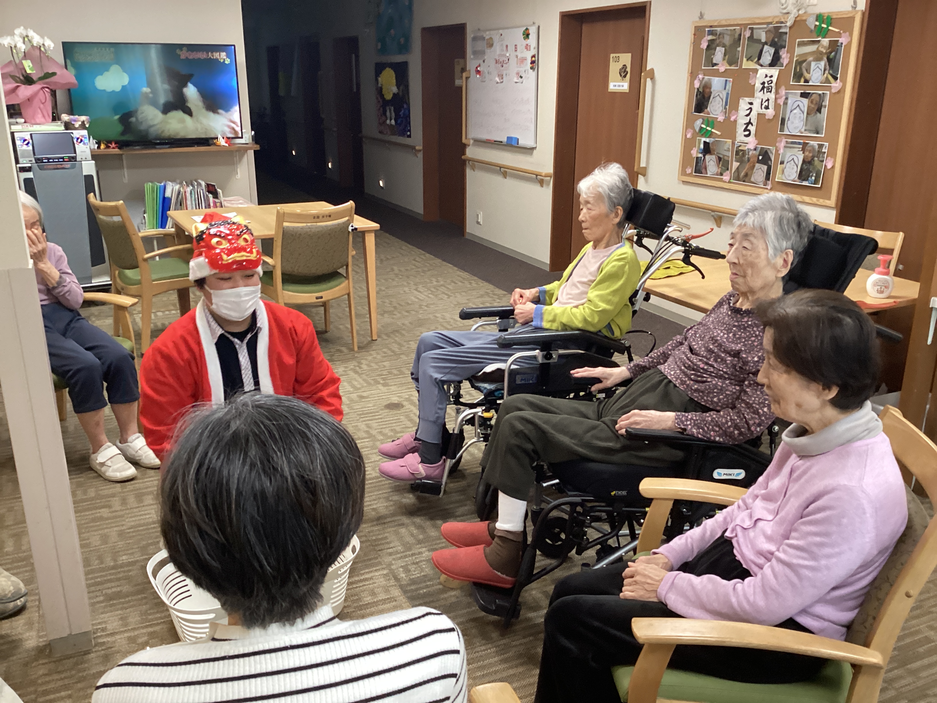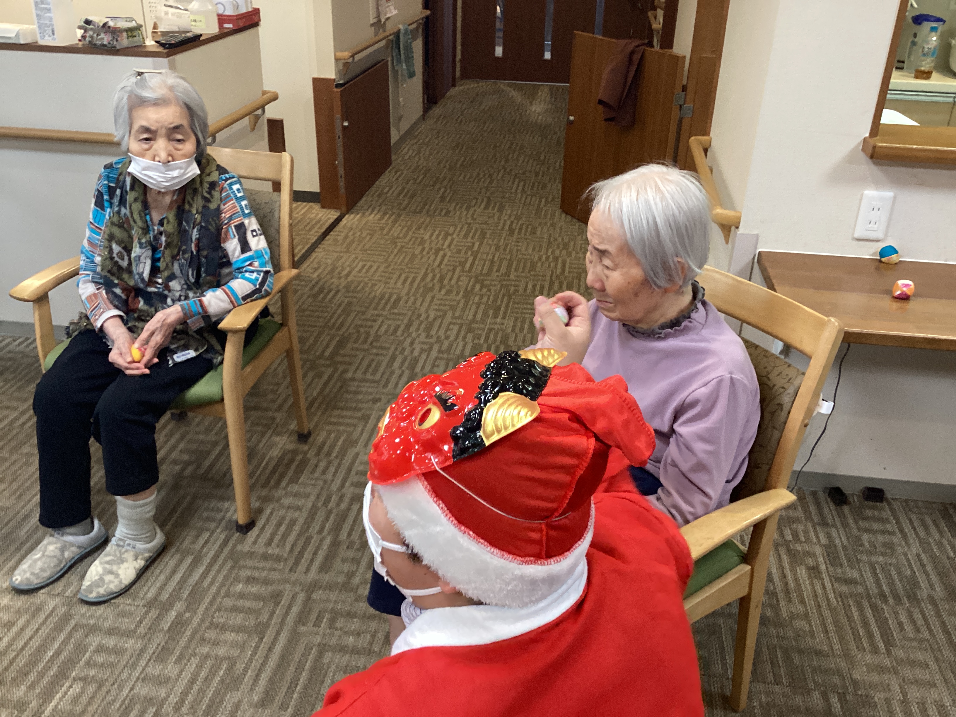 1階は職員が赤鬼になって豆まきならずお手玉で鬼退治しました。