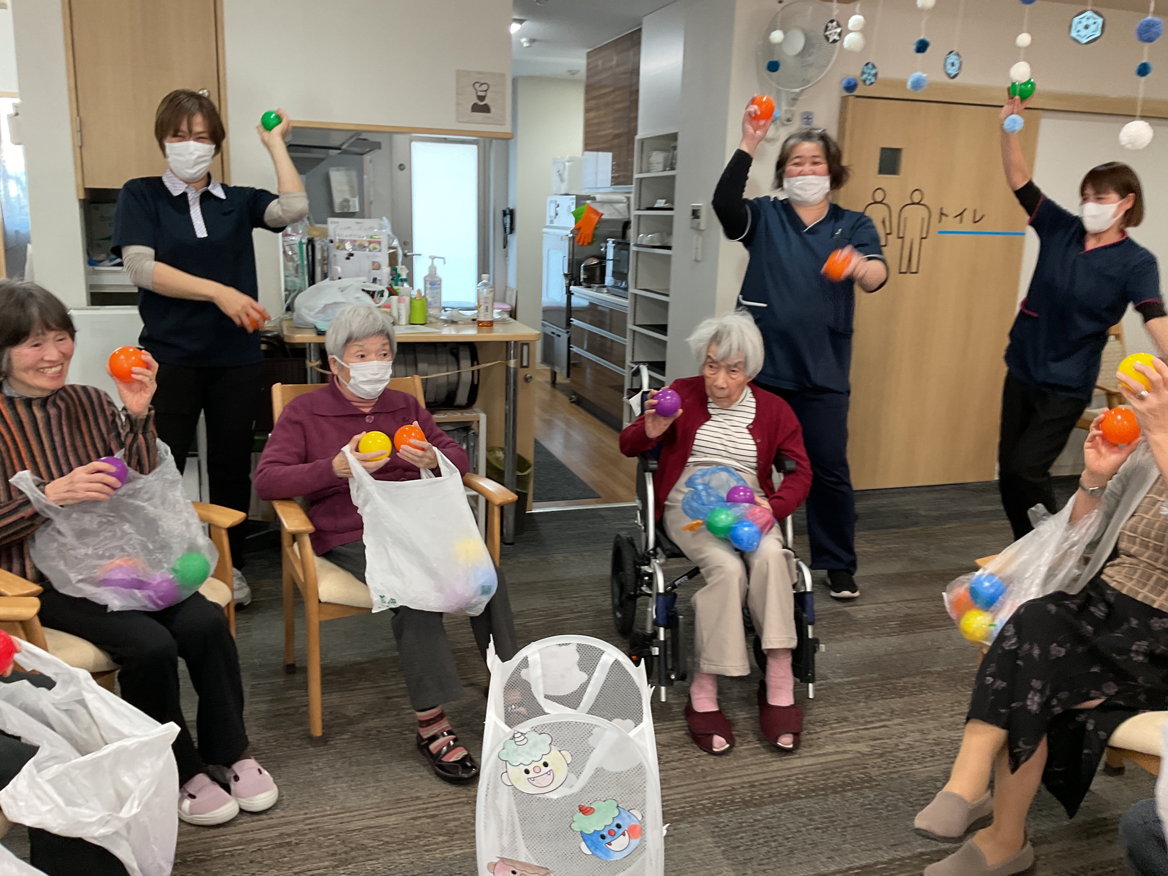 2月3日は節分!今日は鬼に見立てたかごにボールを当てて鬼を倒すゲームをして楽しみました!思いっきり投げて一発で倒してしまう利用者さんがいてみんなで大笑いし、ストレス発散にもなりました!玉入れをして遊んだり楽しい時間でした!