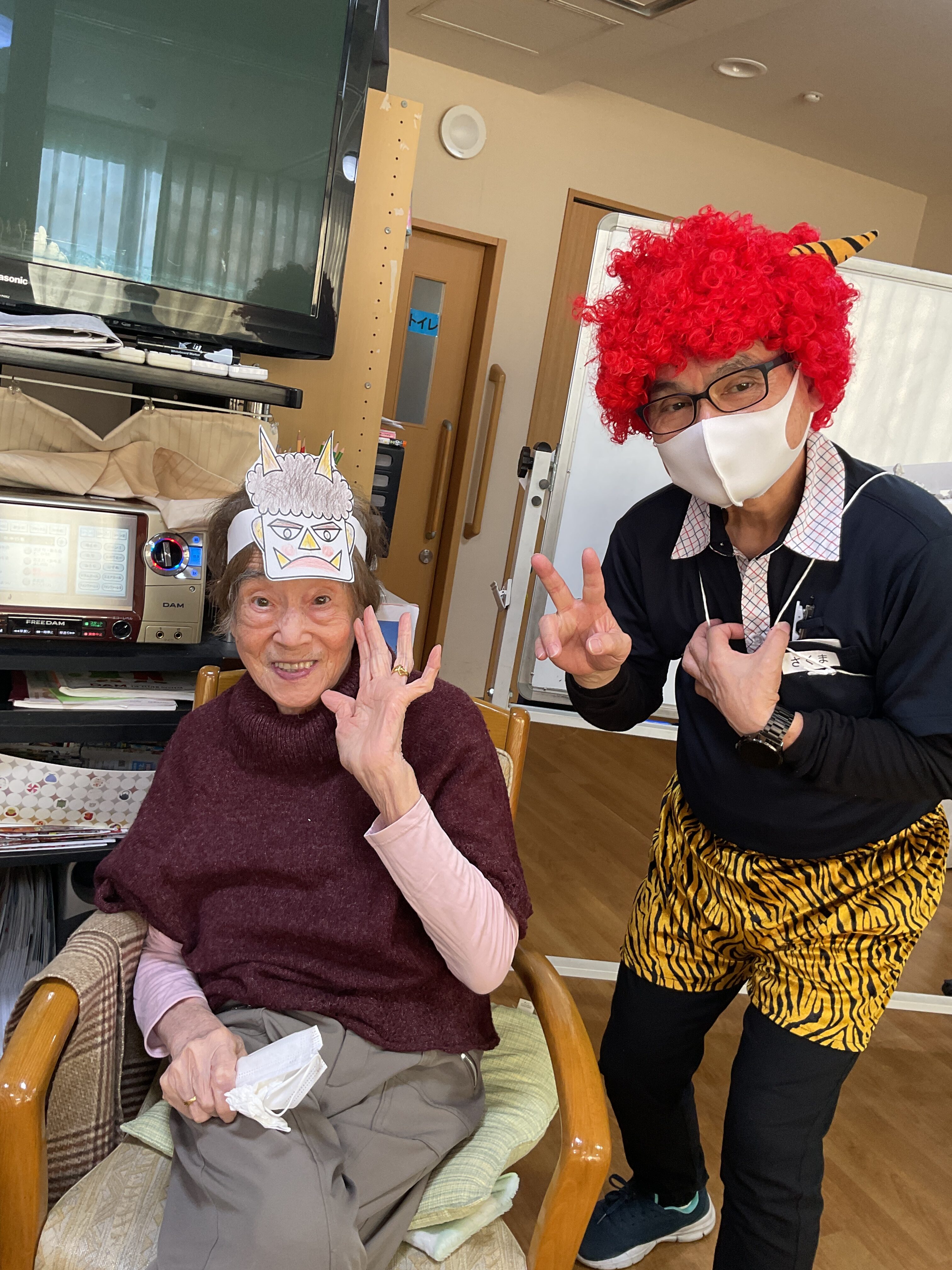 今年も皆さん元気に豆をまきました。スタッフの鬼役も抜群でにぎやかに盛り上げてくれました。