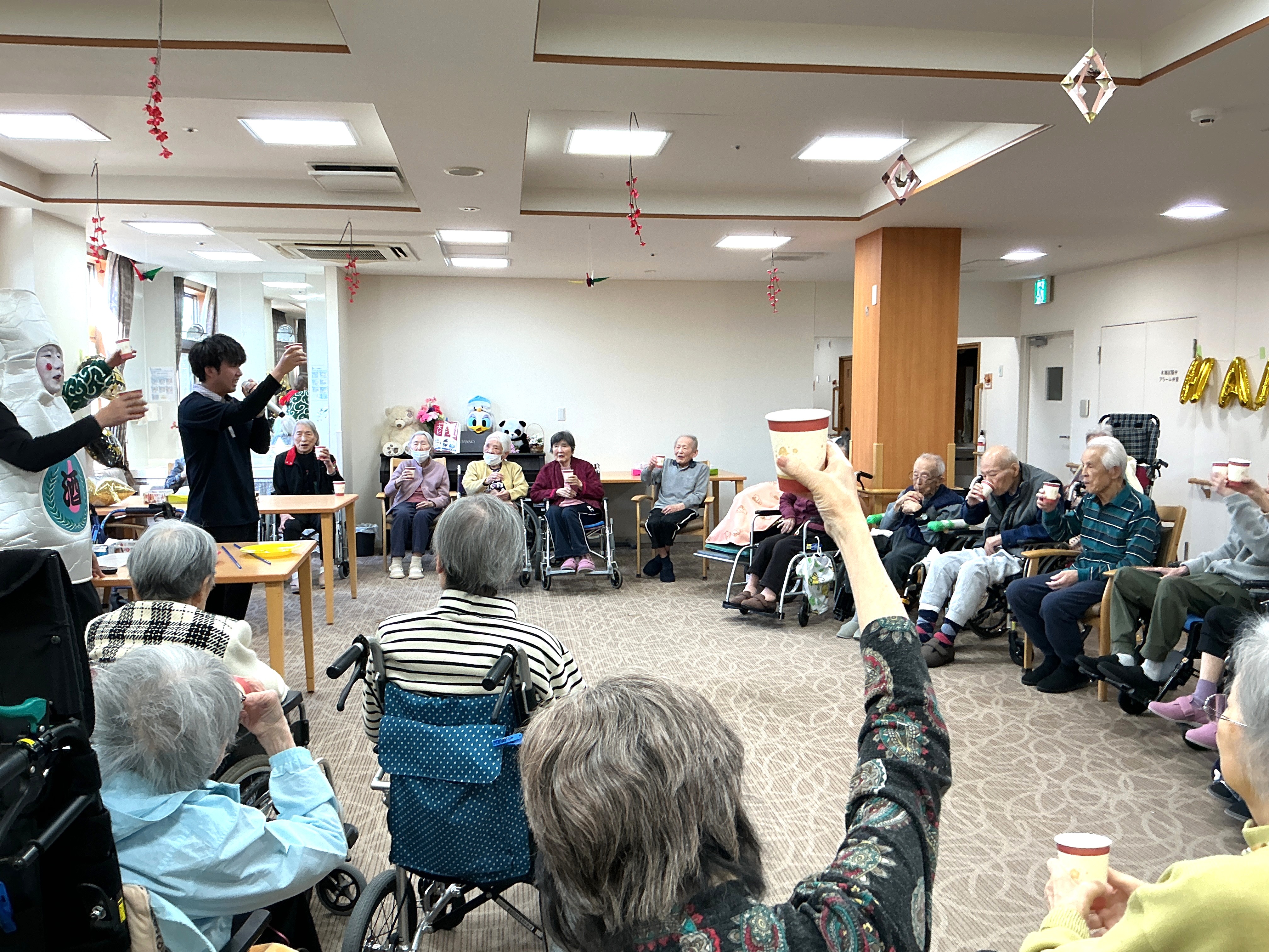 新年会を賑やかに開催しました。🍶ノンアルコールのビールやワイン、カクテルで乾杯をし、芸達者なとっくり達が皿回しと得意な歌を披露しました。特にとっくりの十八番の細川たかしの北酒場は大好評でしたよ♪今年も、皆様にとってさらに良い年になりますように☆彡