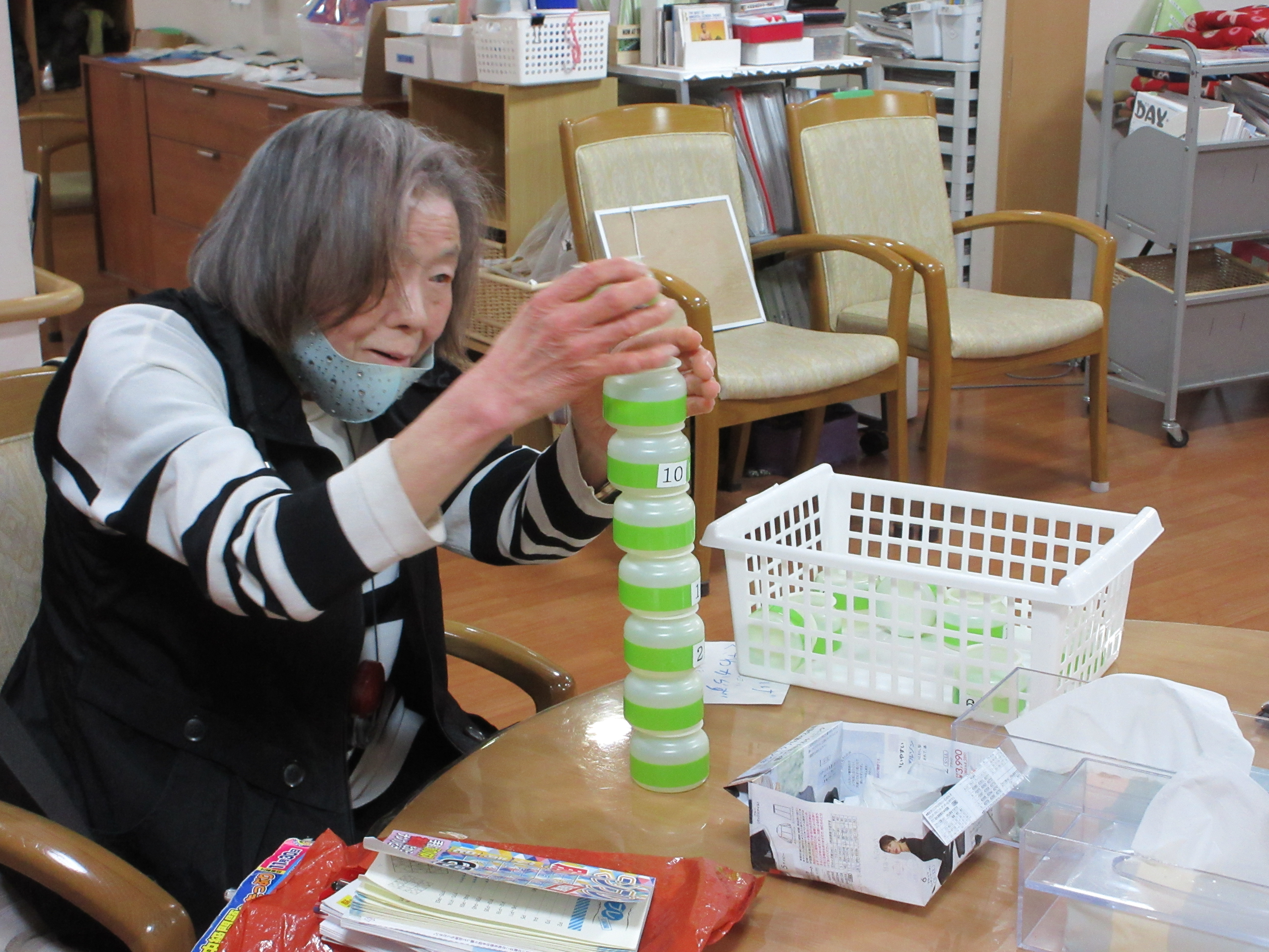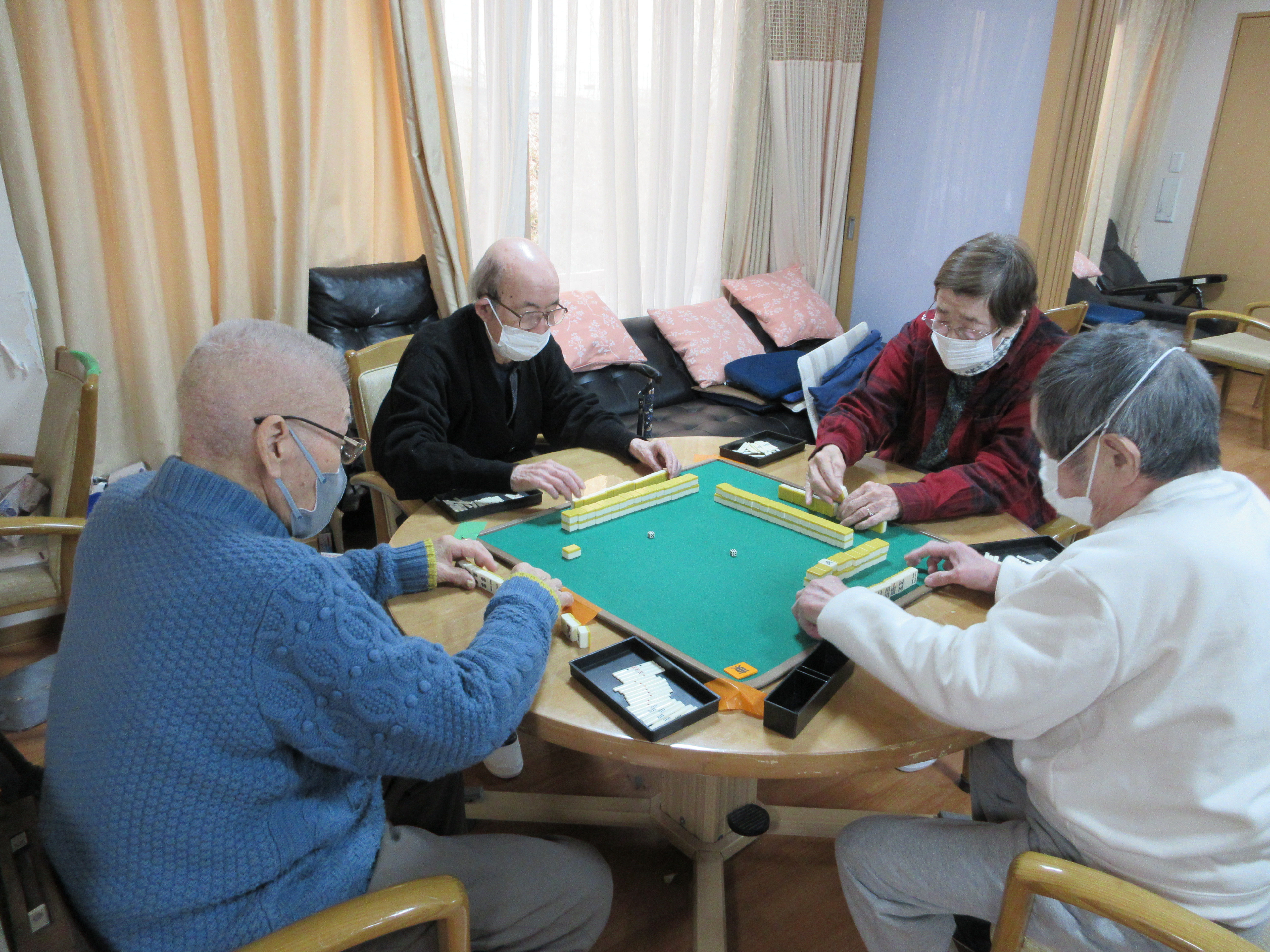 皆で麻雀を楽しみました。 レクレーションではヨーグルトタワーをやりました。 皆さま喜んでいただけました。