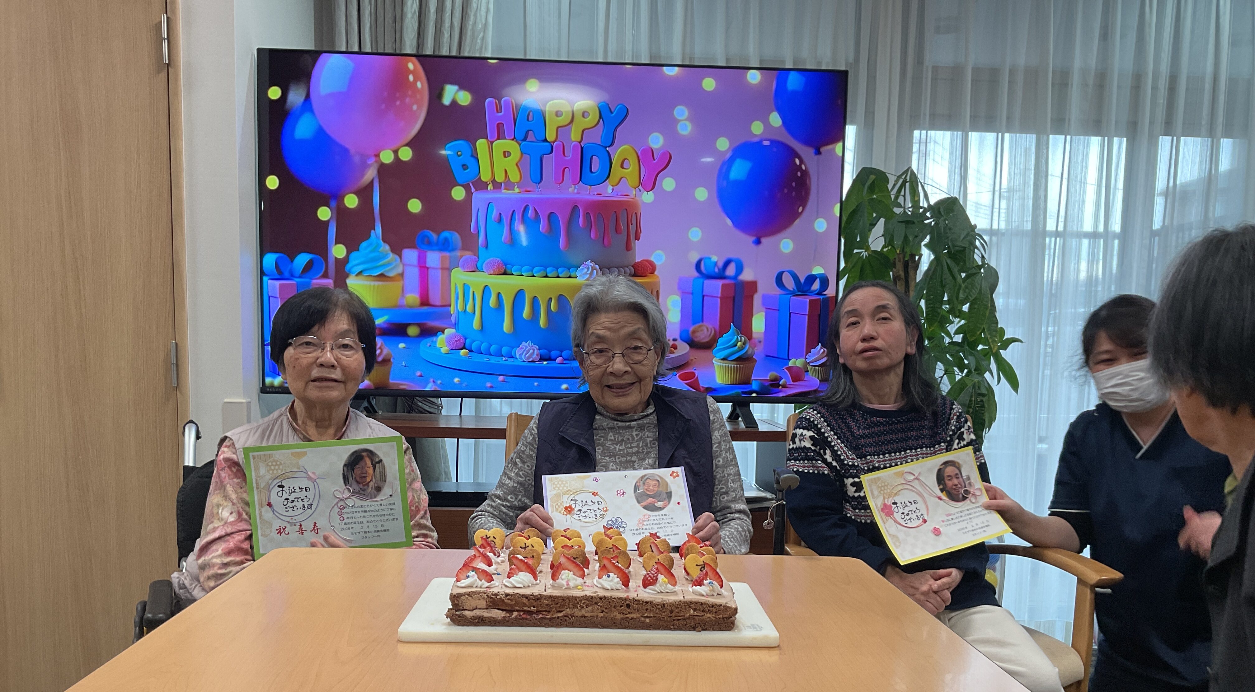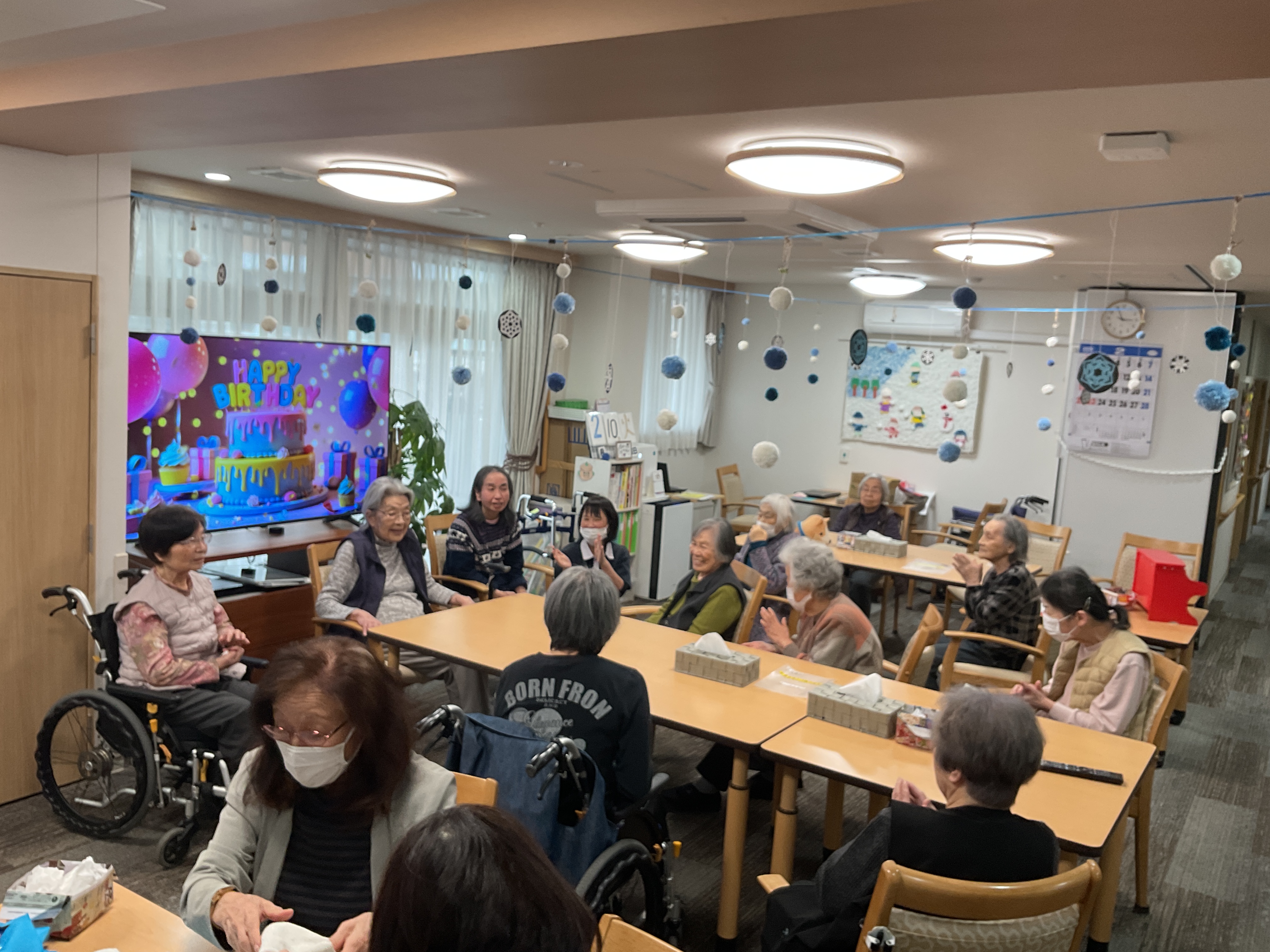 今日はお誕生日会をしました!2月生まれの方が多くて今日は前半の3名様です。ストロベリーチョコケーキでお祝いです🎂みんなからのバースデーソングに3名様はとても嬉しそうにしていらっしゃいました!これからも元気でミモザに通ってきてくださいね!