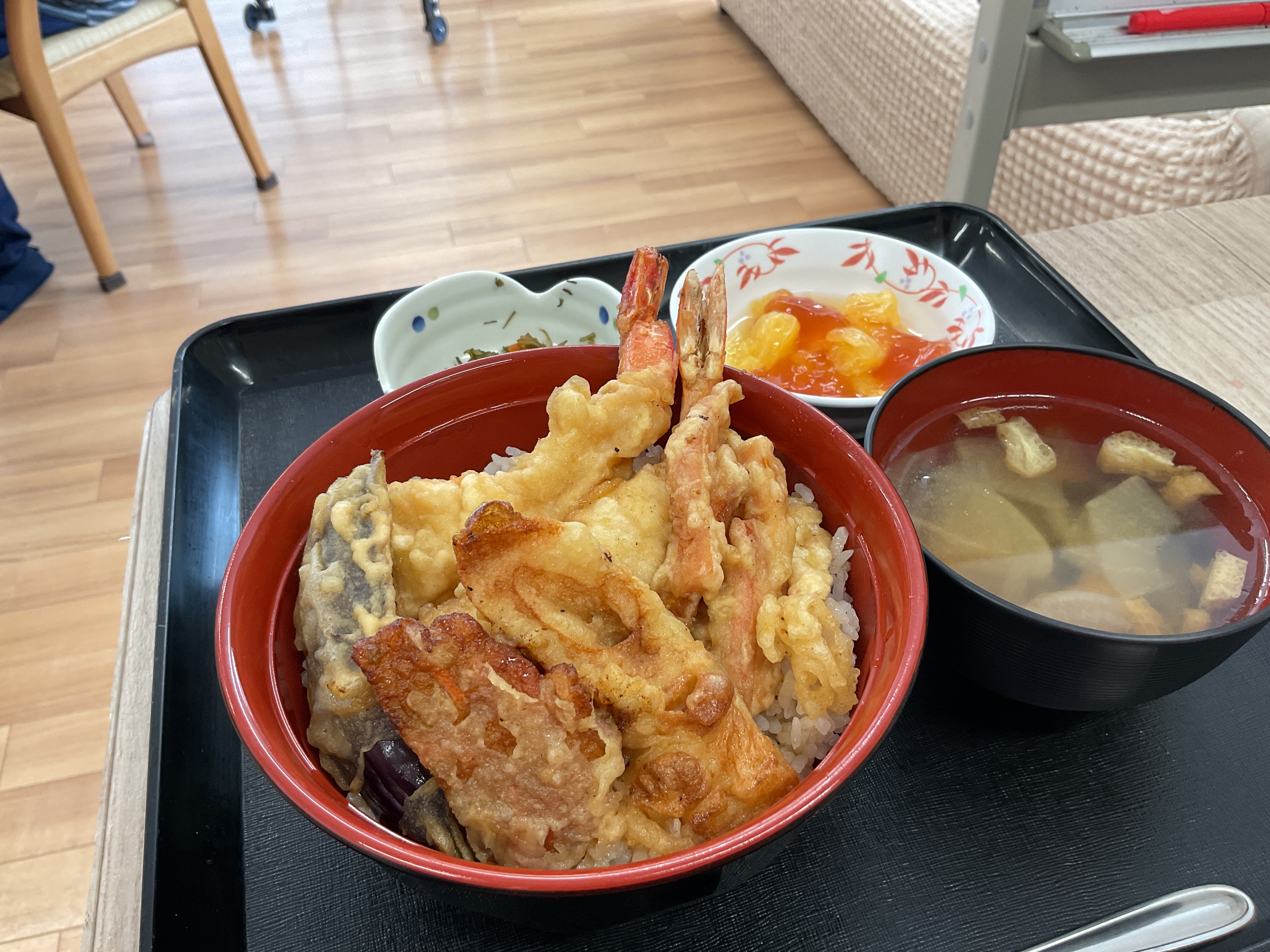 本日の昼食はご近所で評判の「山ちゃん」の天丼です😋✨山ちゃんの海老は大きくてぷりぷりでとても美味しいと評判です😆以前土用の丑の日にうなぎをお願いしてとても大好評でしたので今回は天丼を味わいました💕