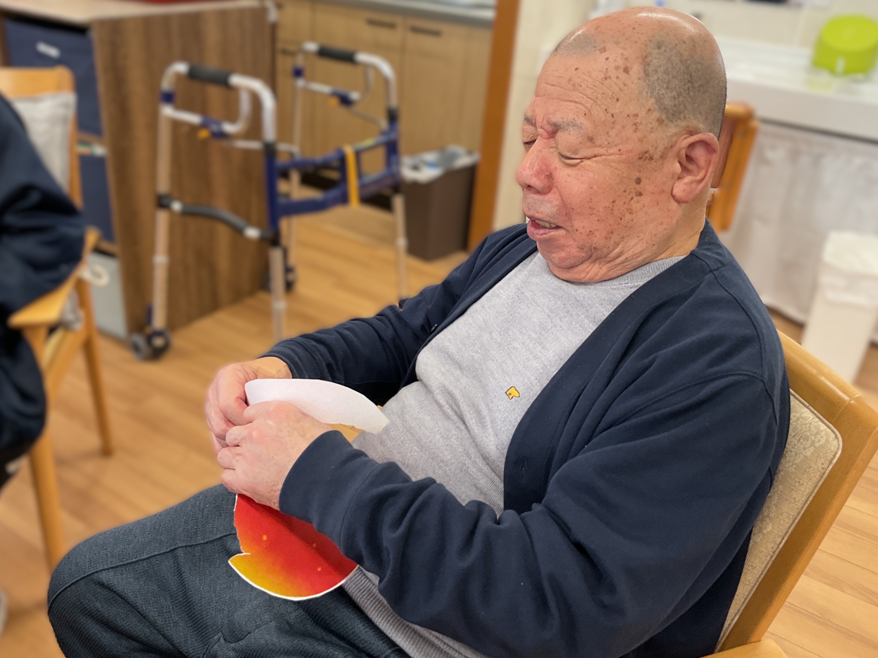 本日のレクリエーションはリンゴの皮むきに挑戦!と、言っても本物ではなく!りんごのイラストをどれだけ長く細く切れるかに挑戦しました✨指の機能訓練もかねて皆さん真剣に取り組んでおられました✌️