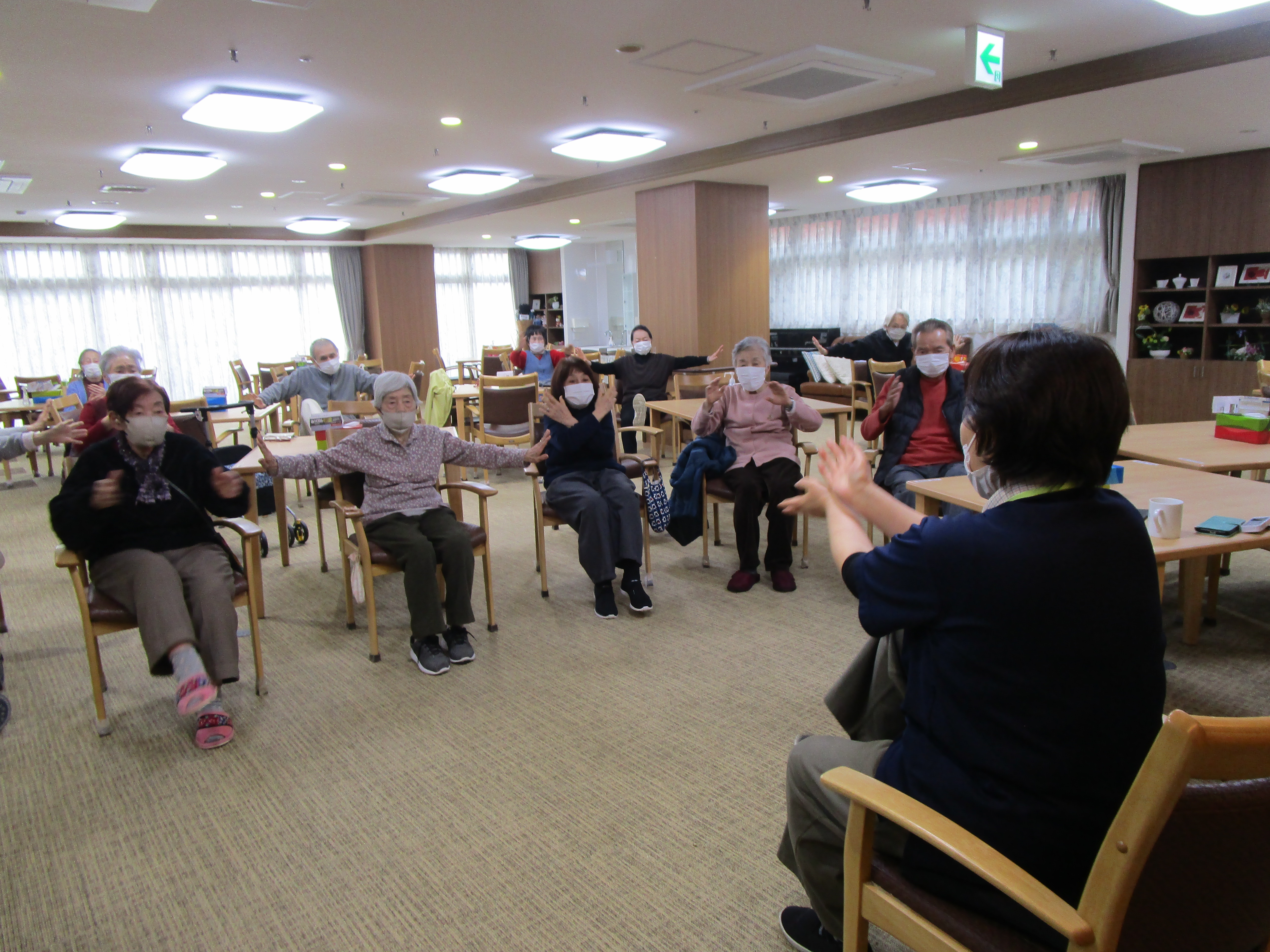 はまゆう苑ではレクリエーションの時間に、太極拳を行いました。 たくさんの入居者が参加され元気いっぱい太極拳を行いました(^^♪。