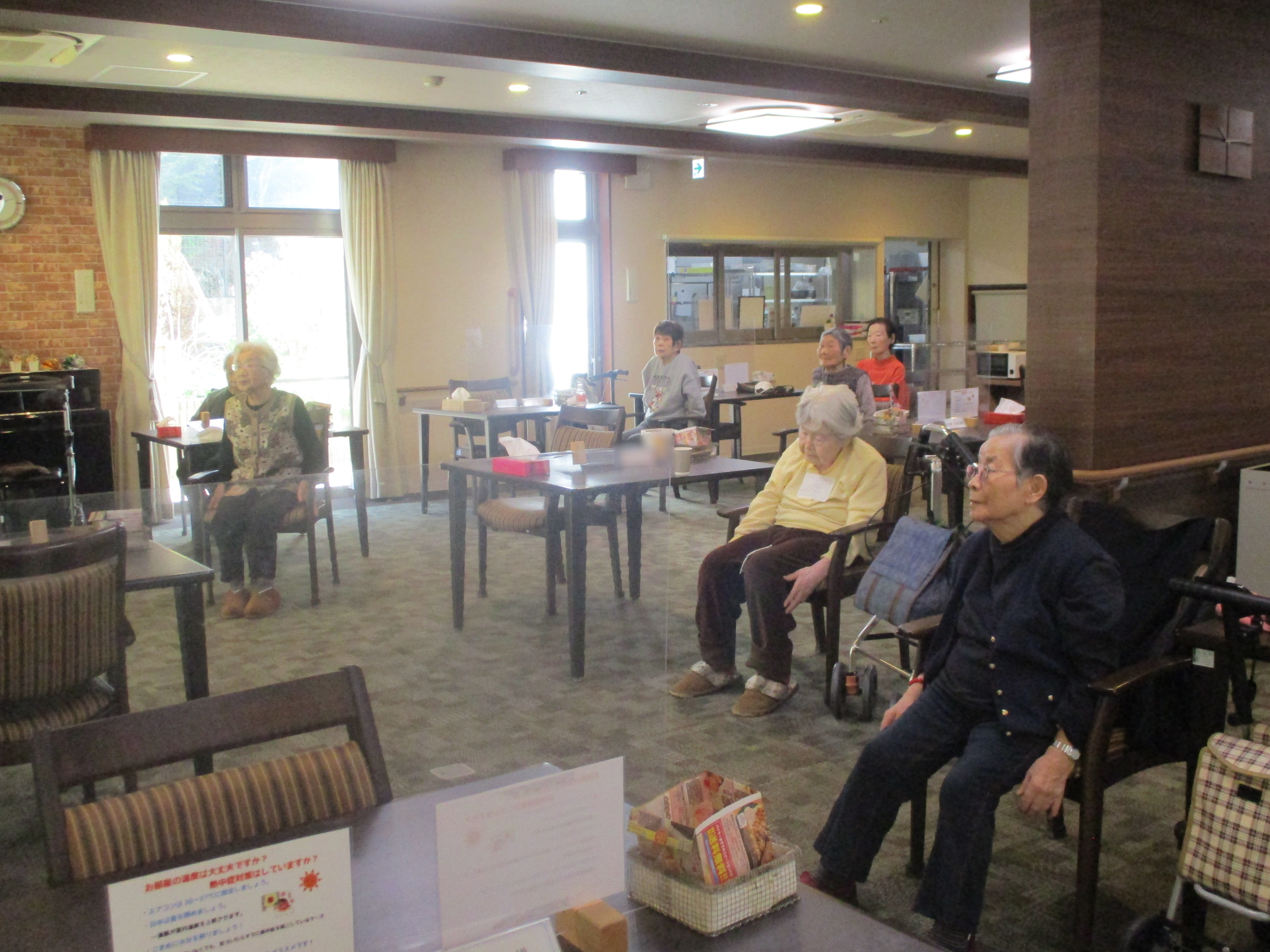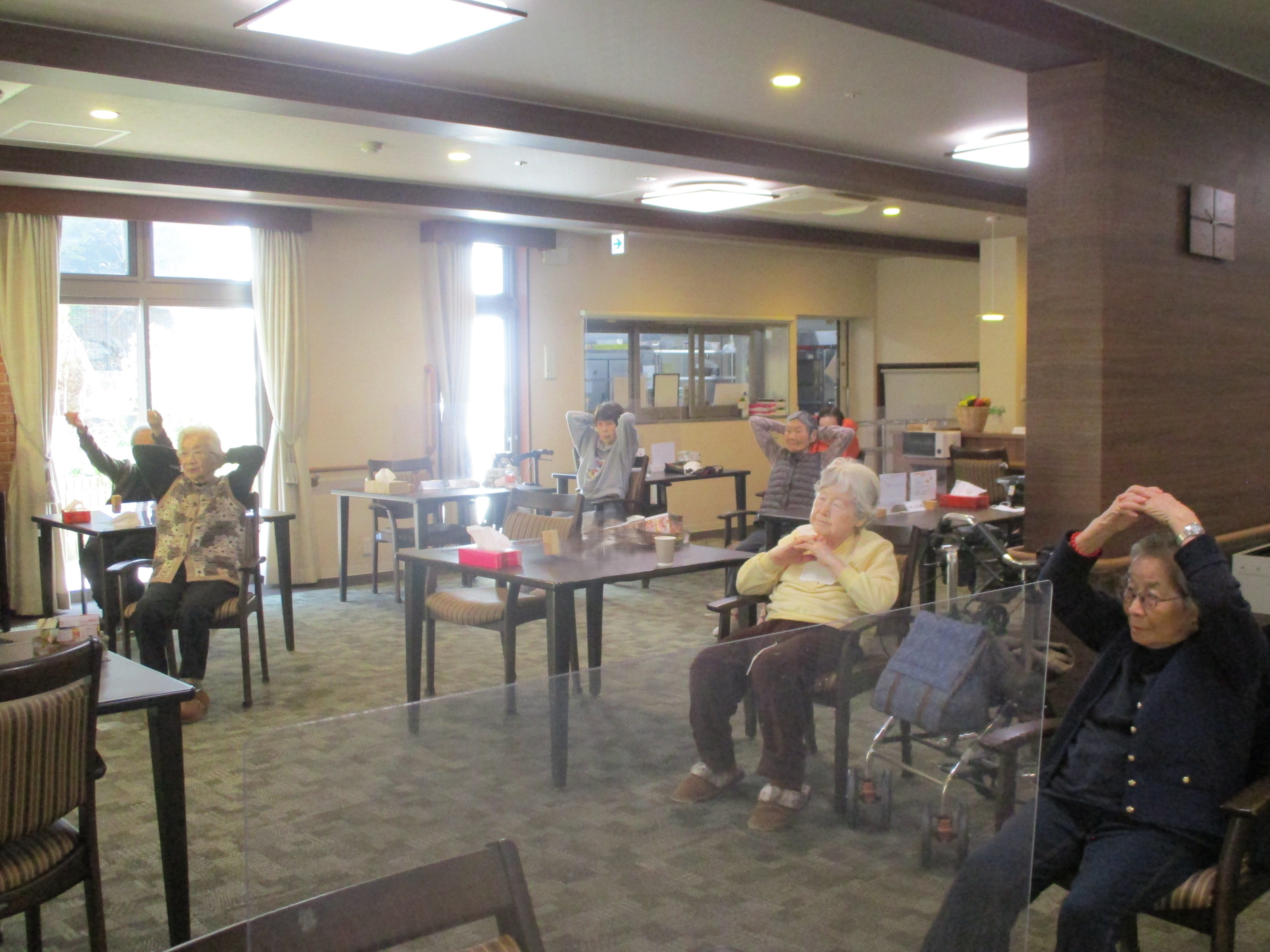 本日は、晴天。2月とは思えない暖かさです♪日曜日はデイサービスがお休みなのもあり、体操の時間も多数の方に参加して頂いてます♪