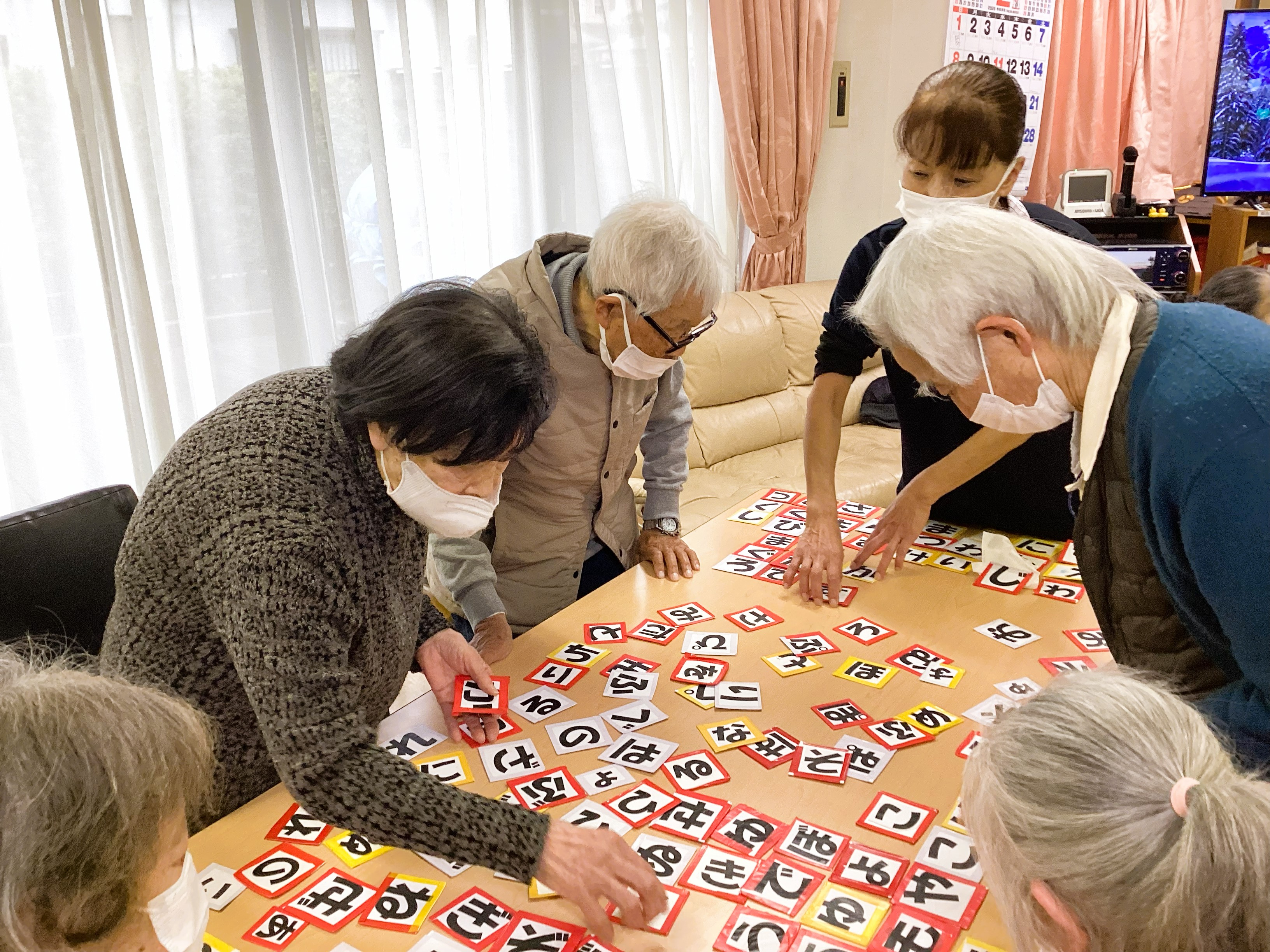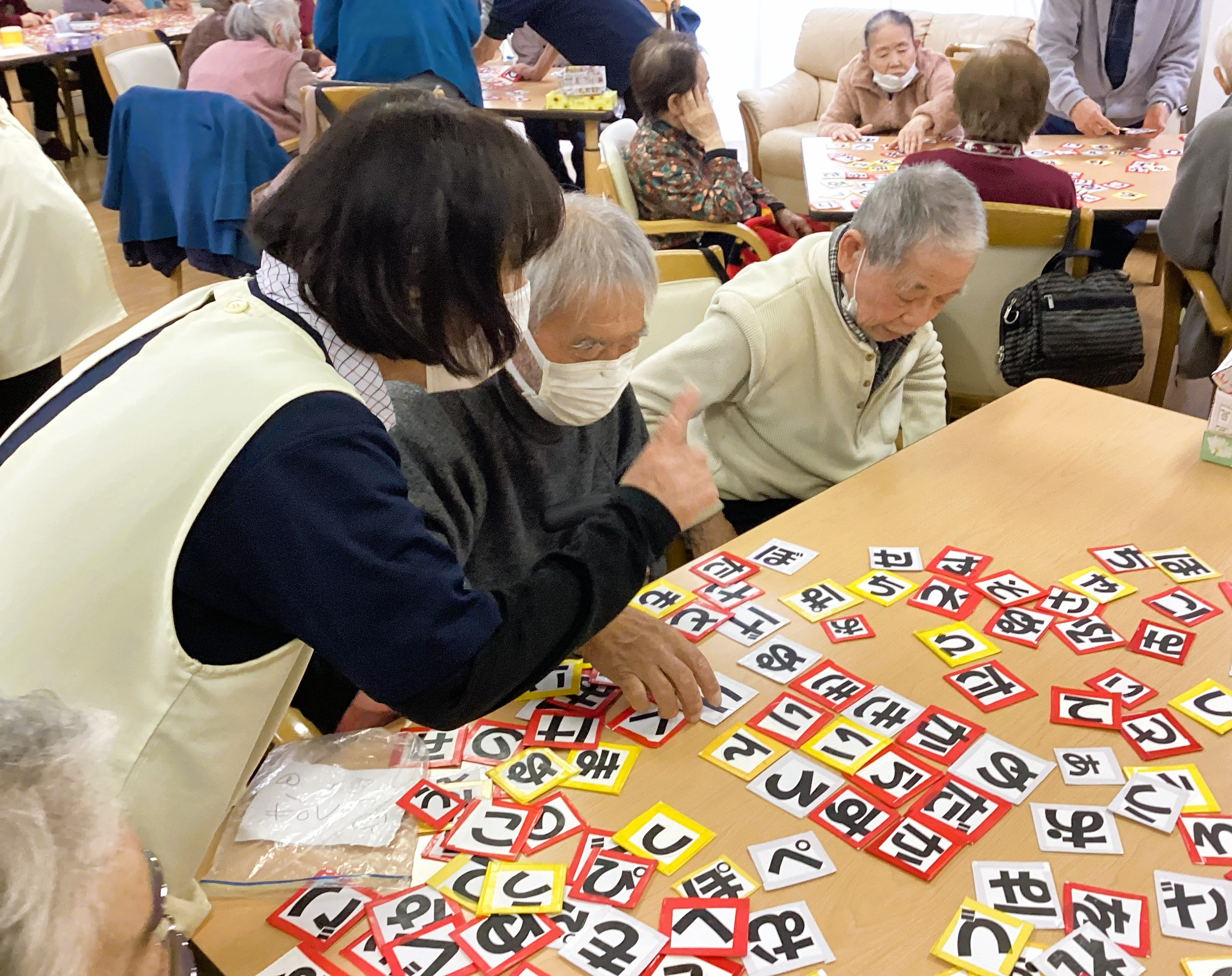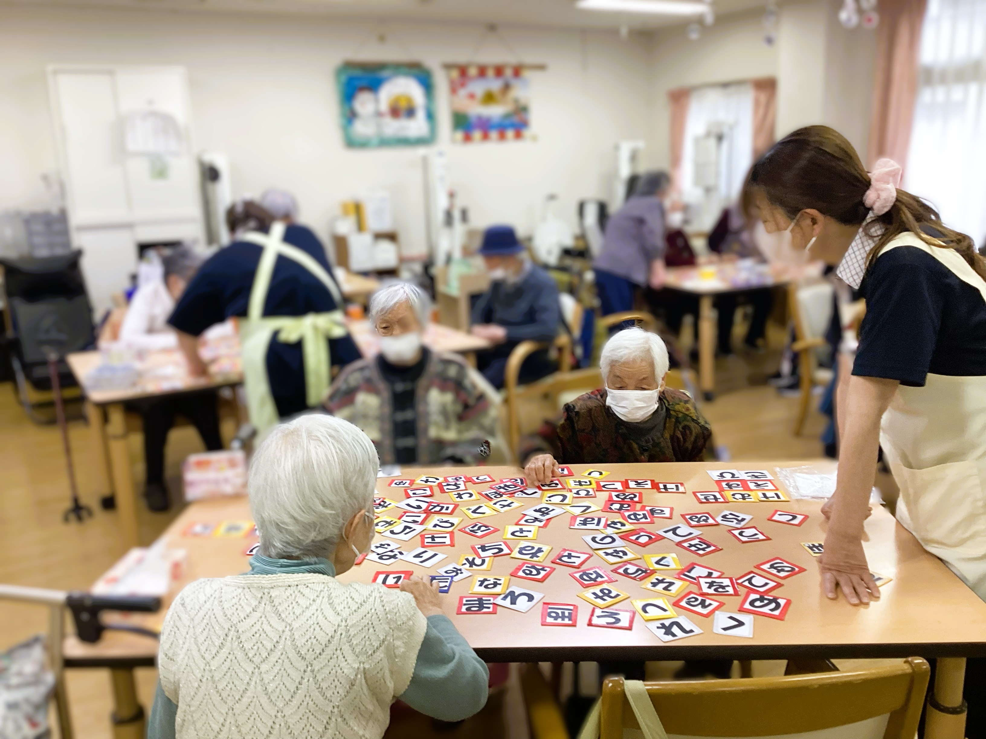レクリエーションは50音カードを使って言葉遊びを行いました👌今回のお題は「3文字の言葉」😊たくさんの言葉があがりました~✌️
