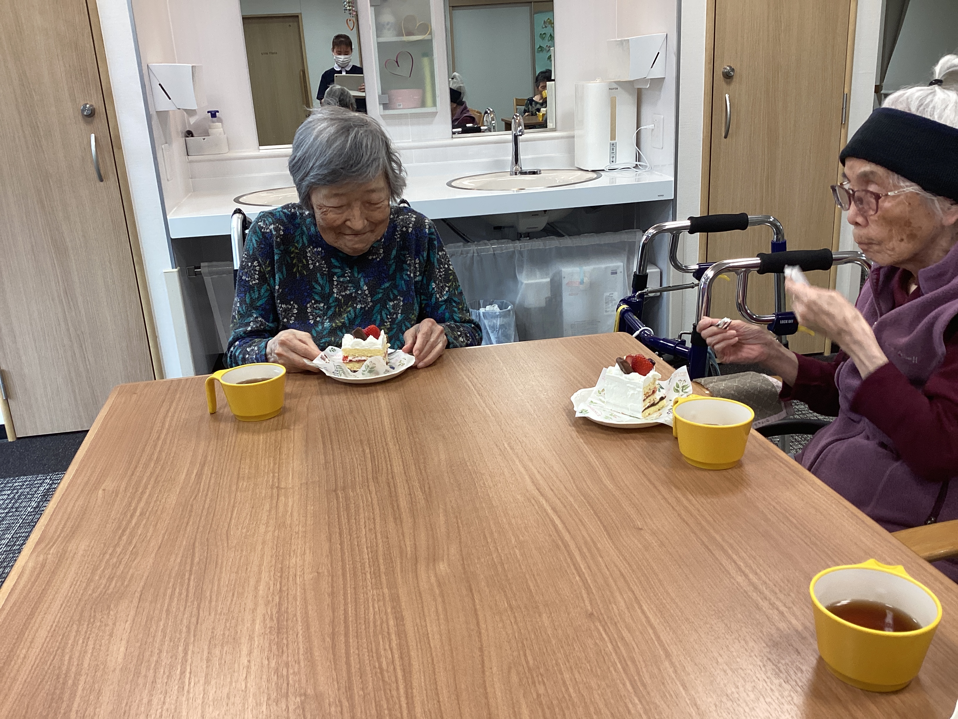 今月は2名の方のお誕生日でした。 美味しいイチゴのショートケーキを食べ、皆様で歌を歌いお祝いしました! 何度もありがとうと喜んでくださいました😊 素敵な思い出になった様です😊