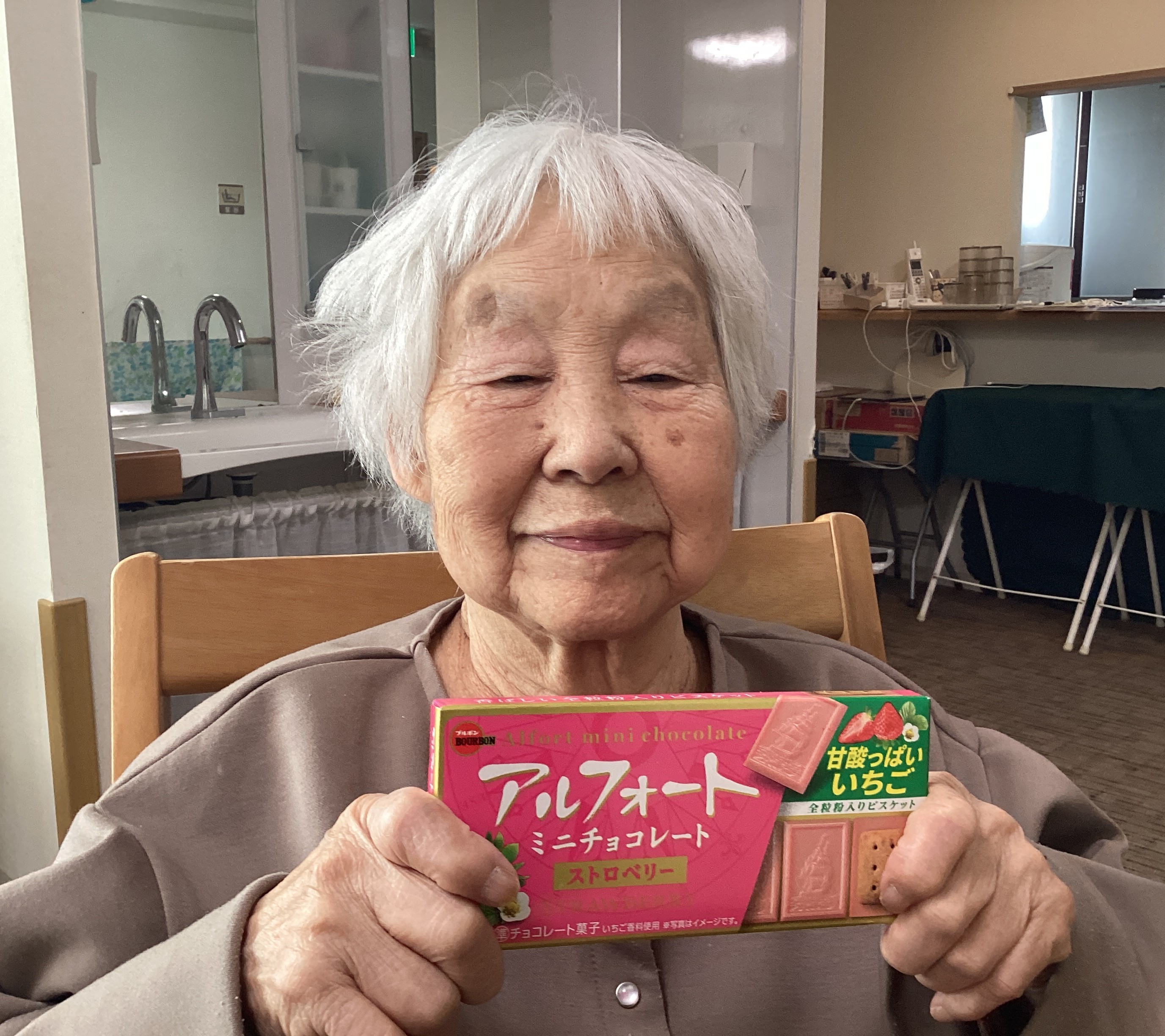 2月14日は、バレンタインデーおやつに感謝の気持ちを込めて、チョコレートをお渡ししました。4つの種類から好きな味を選び、「甘くておいしい」と大好評でした💛
