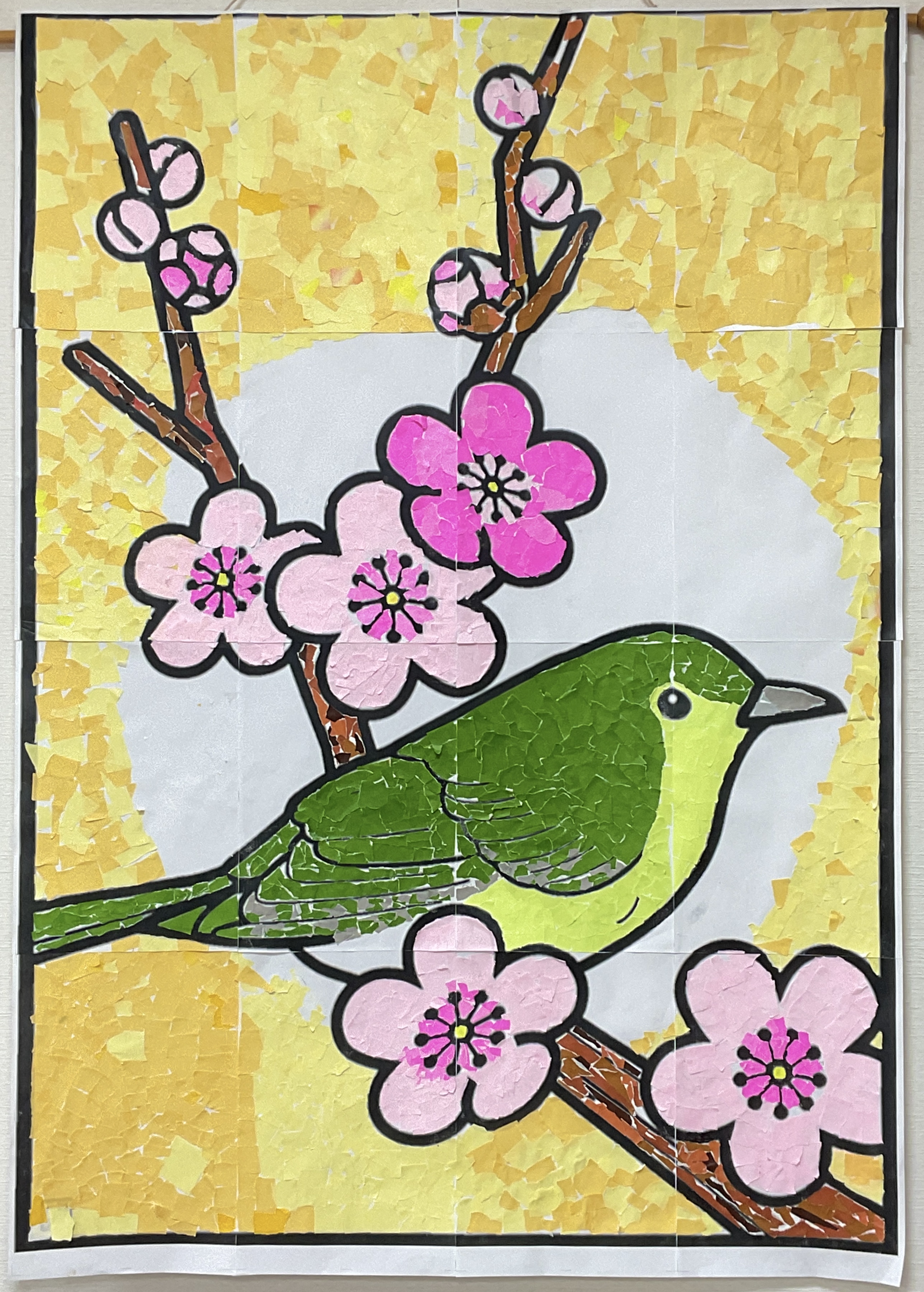 先月のダルマは鬼に、ちぎり絵は梅と鶯になりました♪ とってもかわいく仕上がりました♫