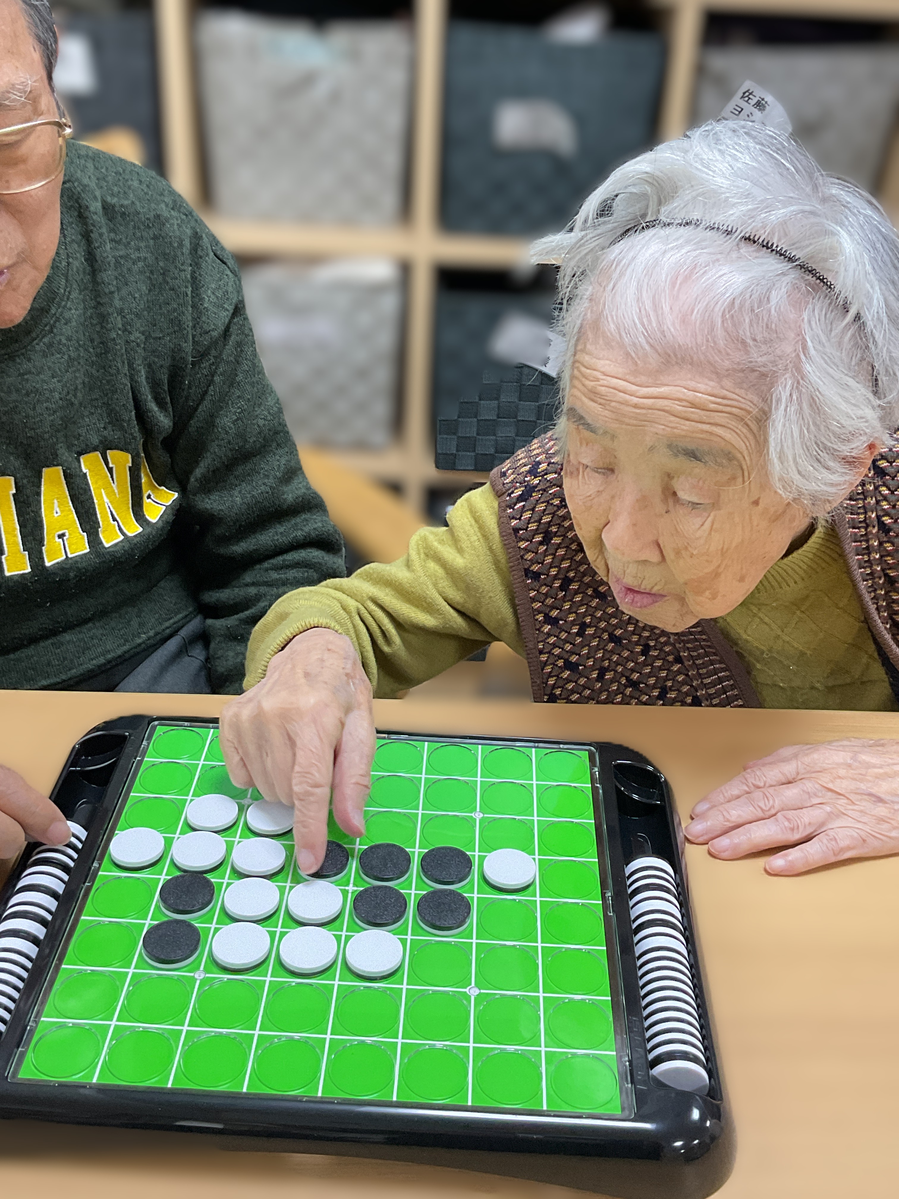 今回はお席の隣同士でオセロをされていたのでご紹介します! 場面を見るとシロがかなり優勢ですね😅 結果を見ることが出来なかったので次回の対戦が楽しみです✨