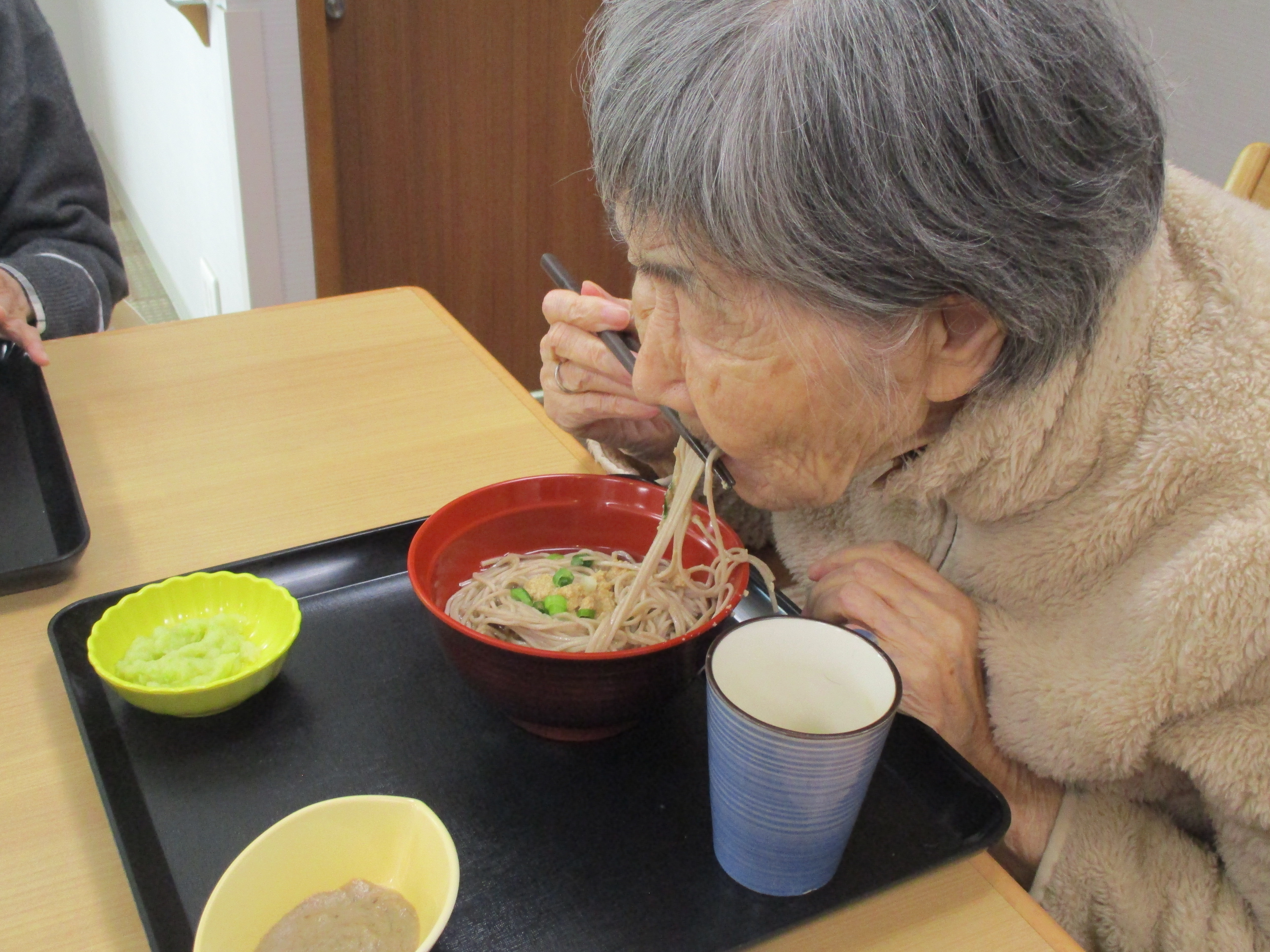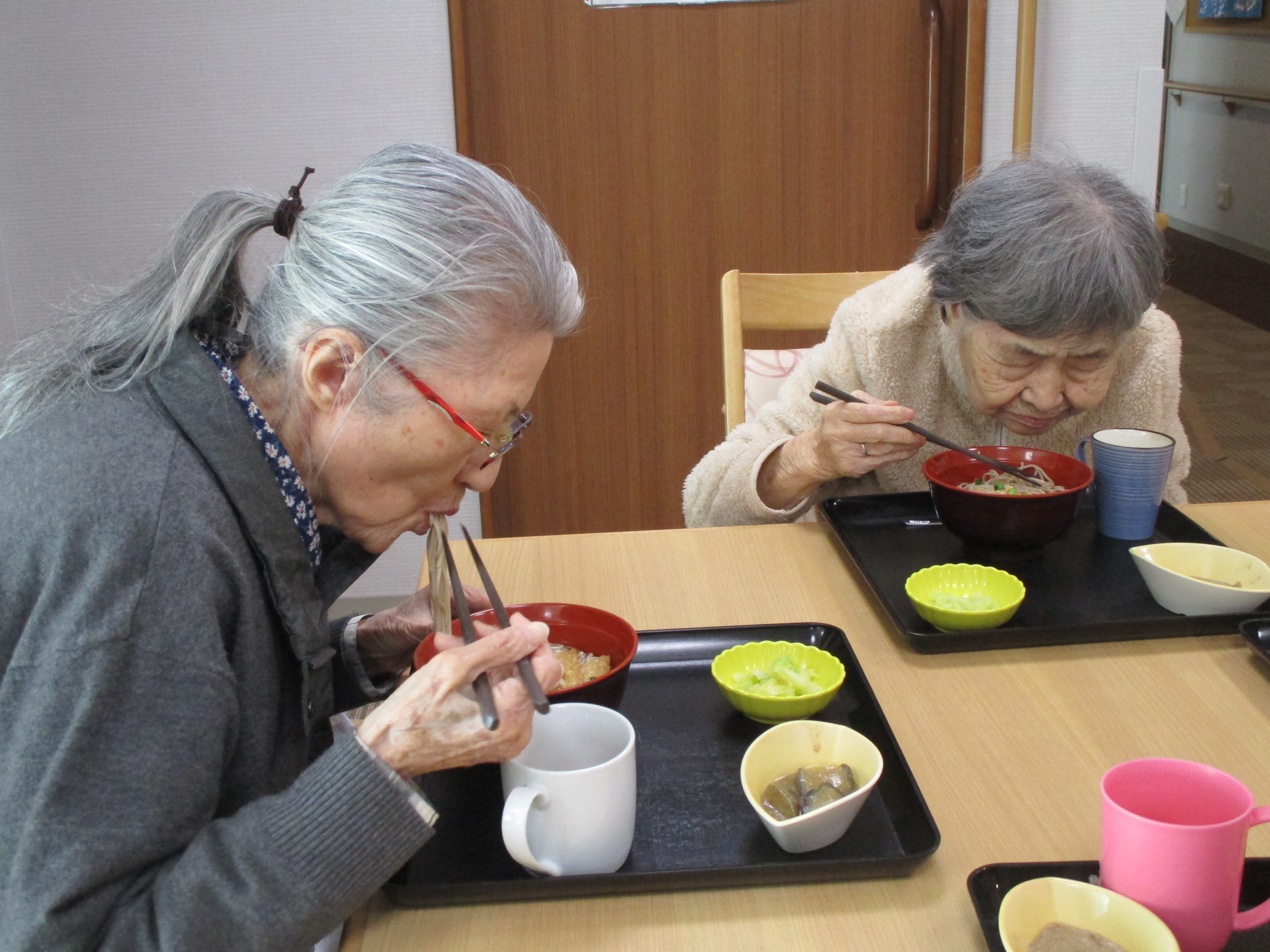 お昼はきつねそば!皆様麺類大好きです!夢中で食べておりました!(^^)!