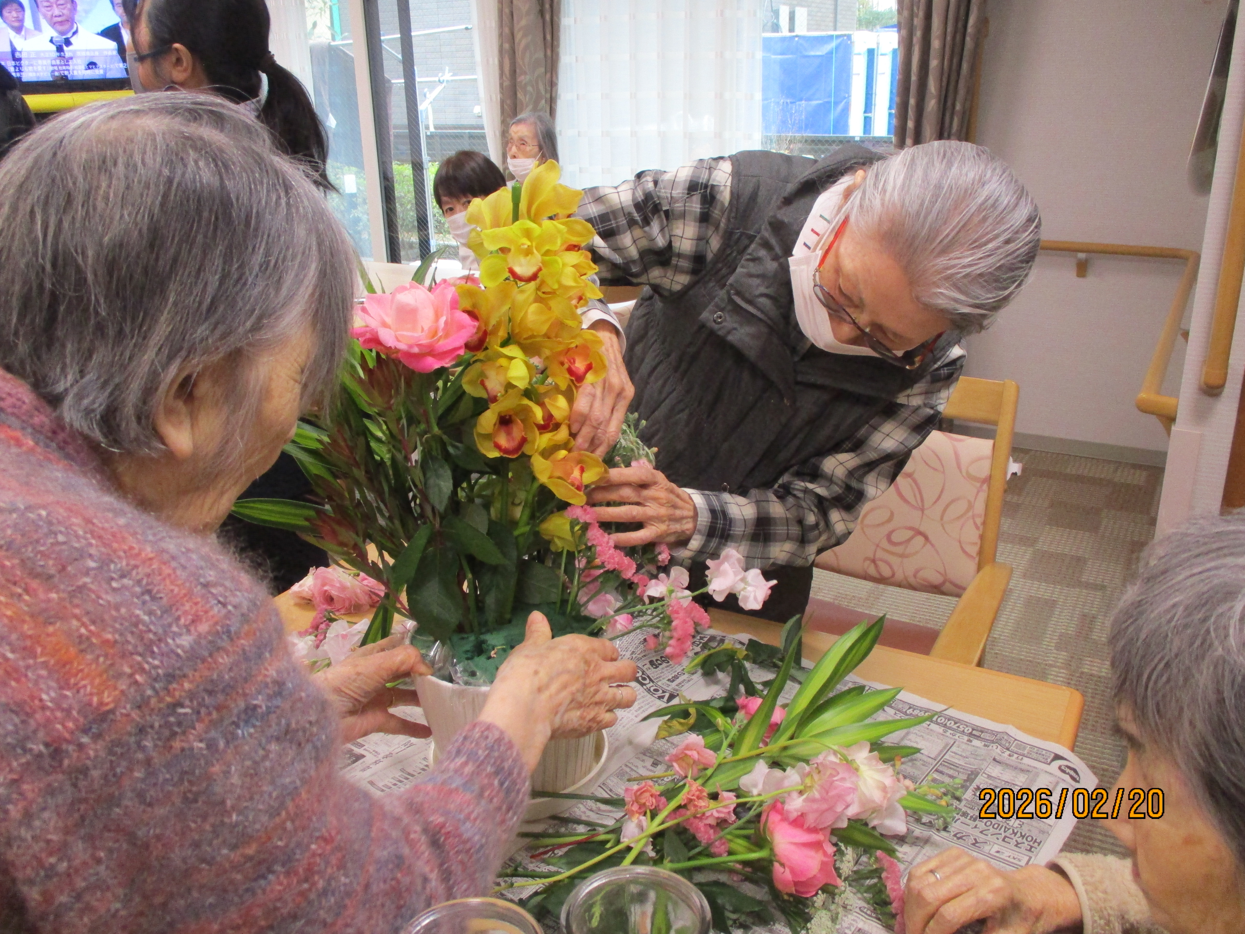 自身で頂いたお花のお手入れです。終わった花は抜いて、綺麗にしていきます!みんなもお手伝い!あちこちから手が伸びてきます!お花、綺麗だね~♪