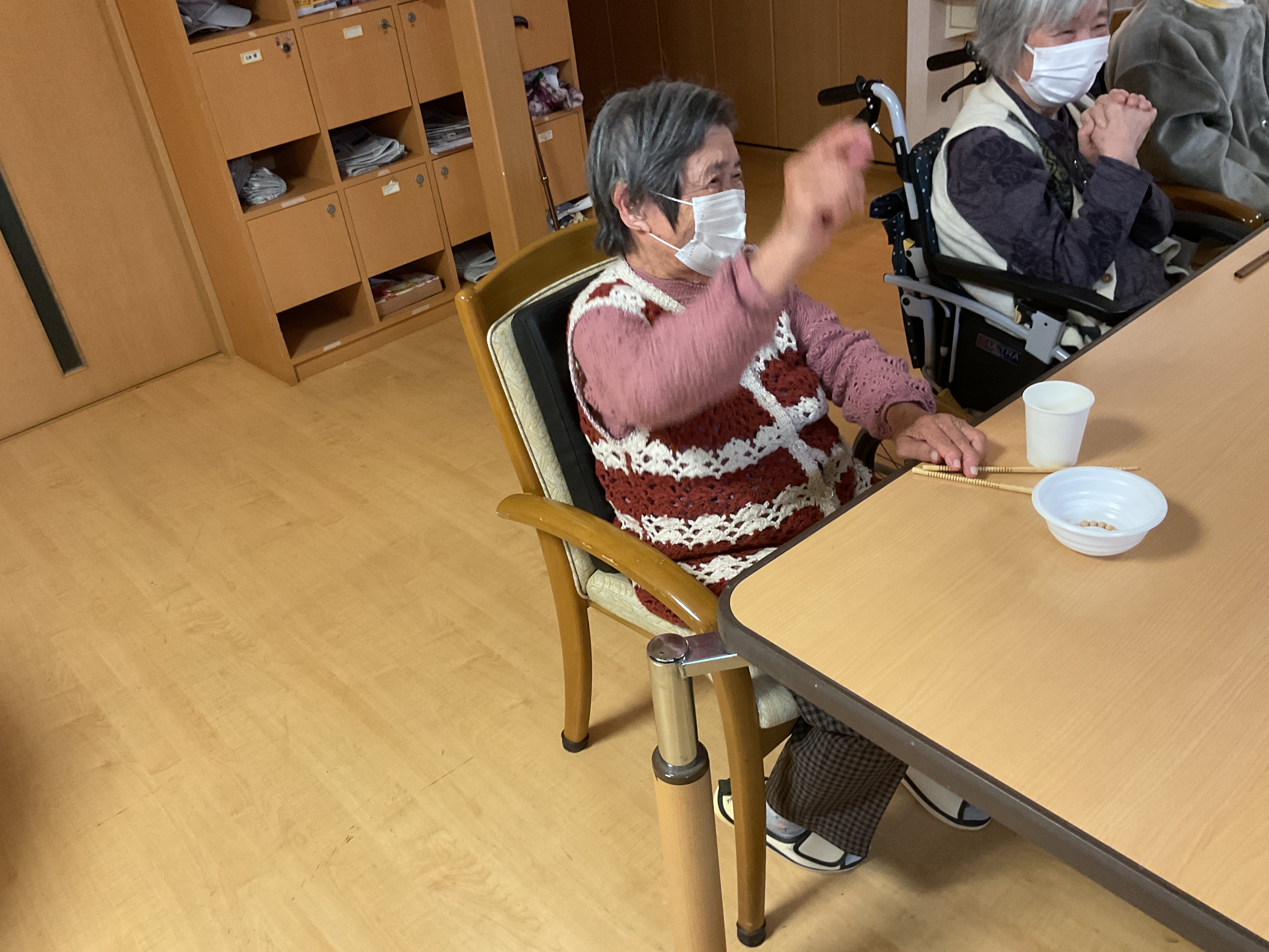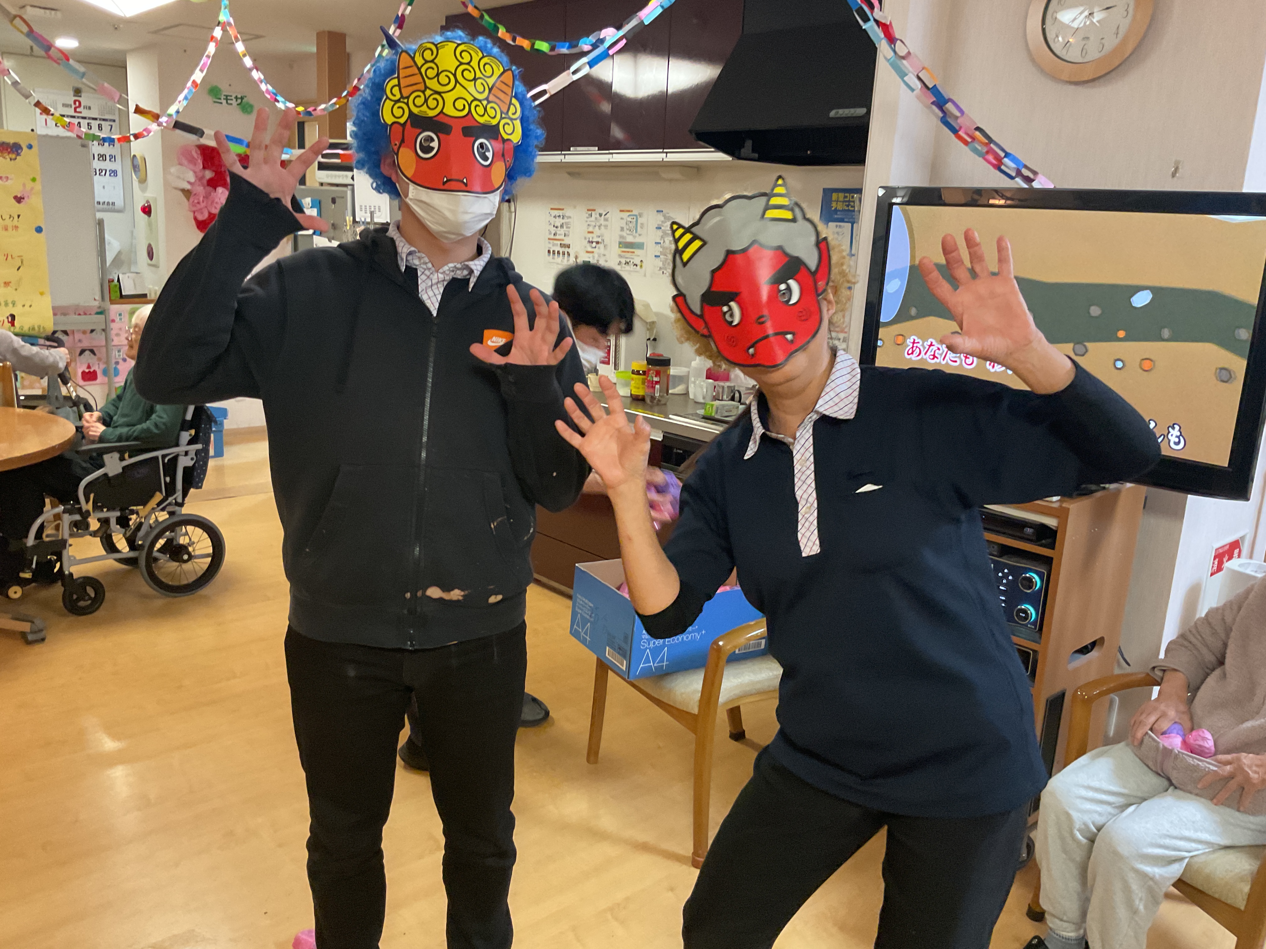 先日久喜では節分会を実施いたしました!皆様で久喜にやってきた鬼を退治しました👹皆様が鬼に豆をぶつけて退治してくれたおかげで久喜から出て行ってくれました! その後、皆様で豆つかみリレーを行い盛り上がりました!