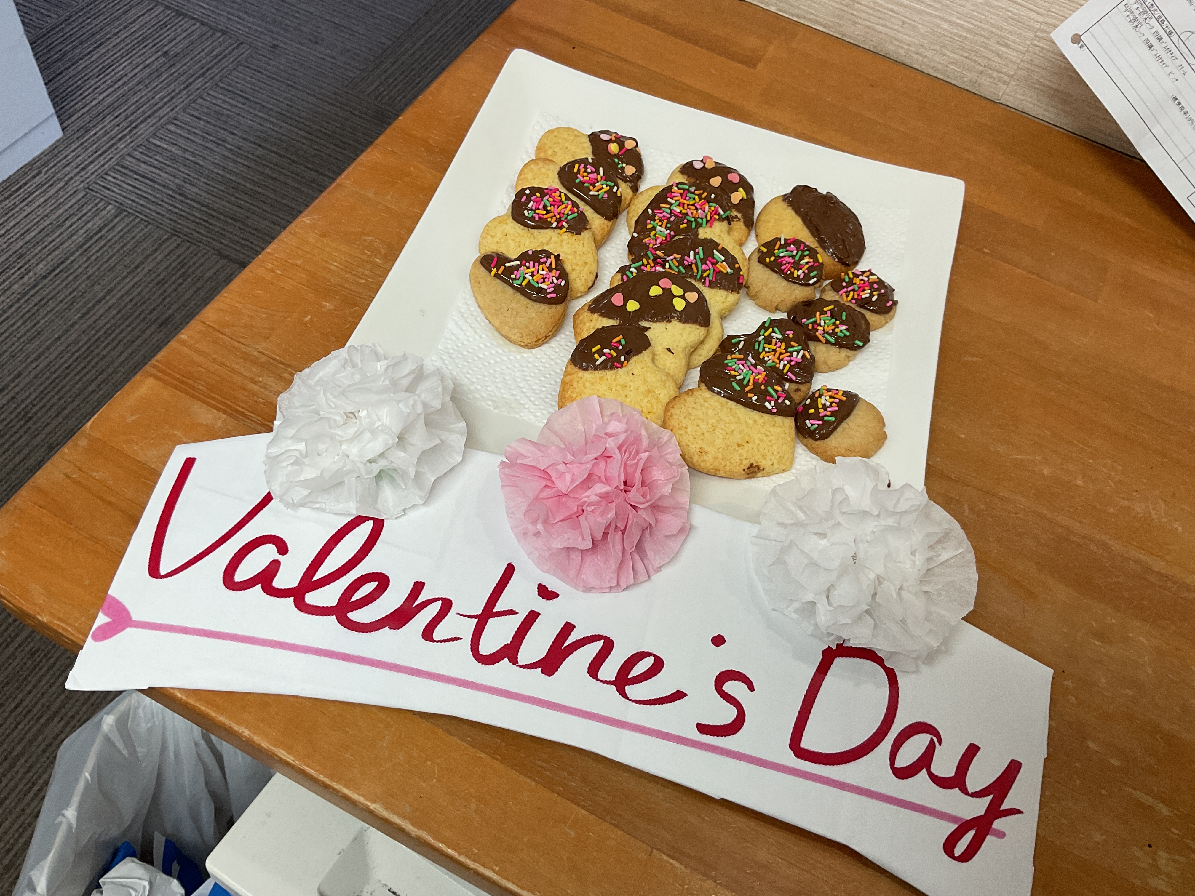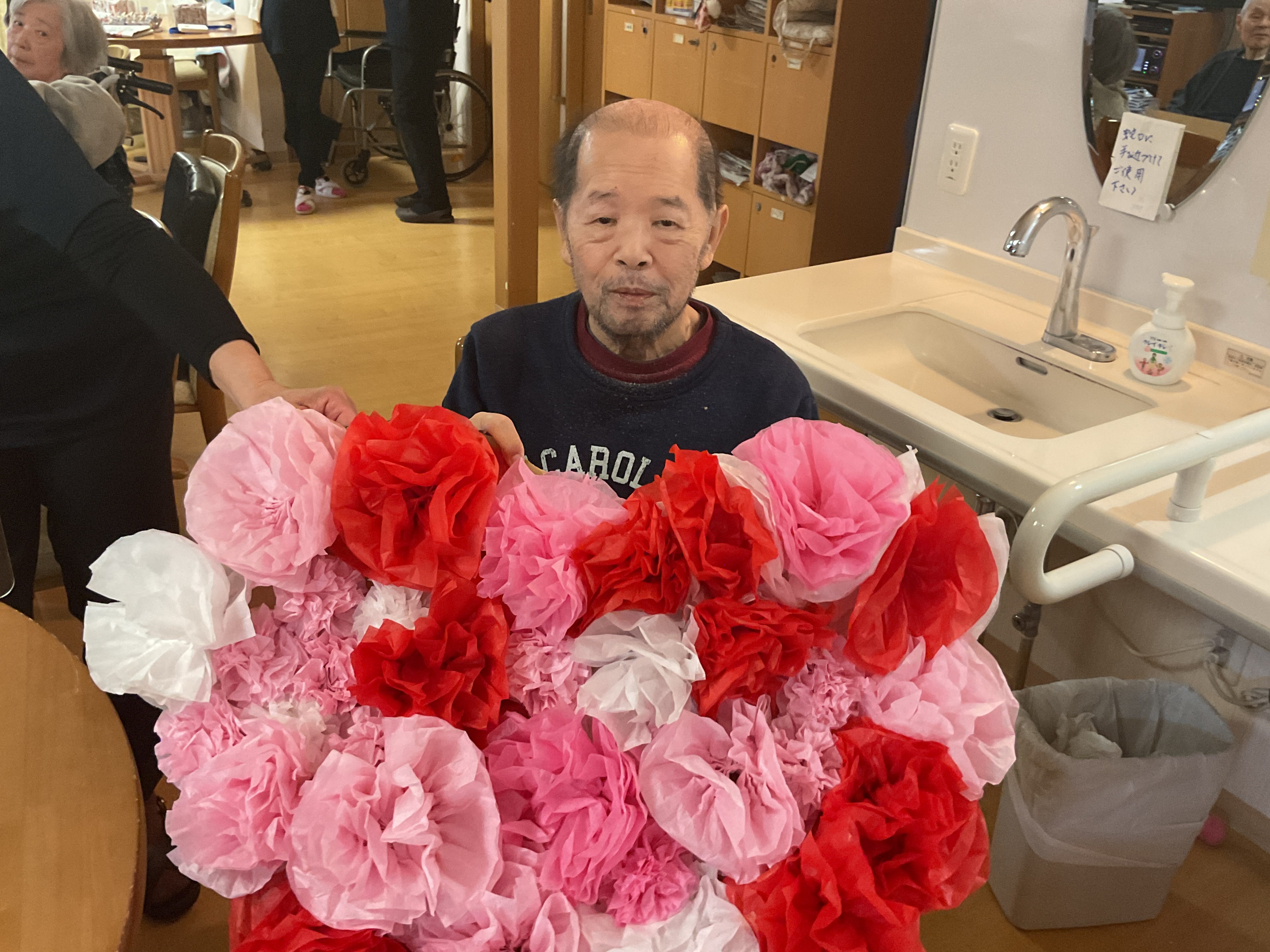 先日バレンタイン会を実施いたしました❤️前に作成したハートのパネルを持って皆様で写真撮影をしました📸皆様良い表情です😊その後キッチンさんの手作りクッキーを頂きました😋皆様とても満足されておりました!