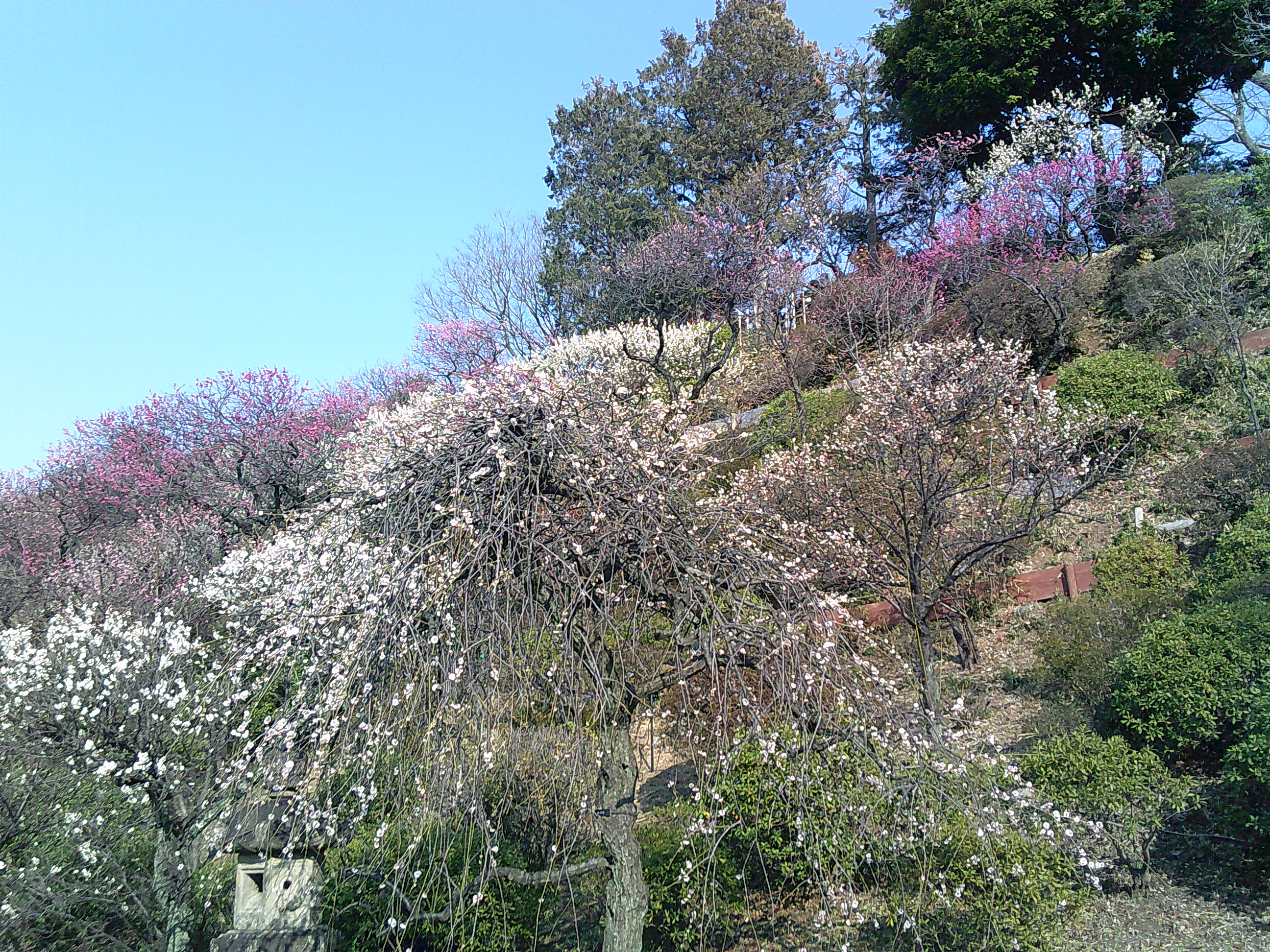 前回に引き続き、梅鑑賞の写真です📷開花状況は「見頃」です。満開の梅をバックに写真撮影です😊