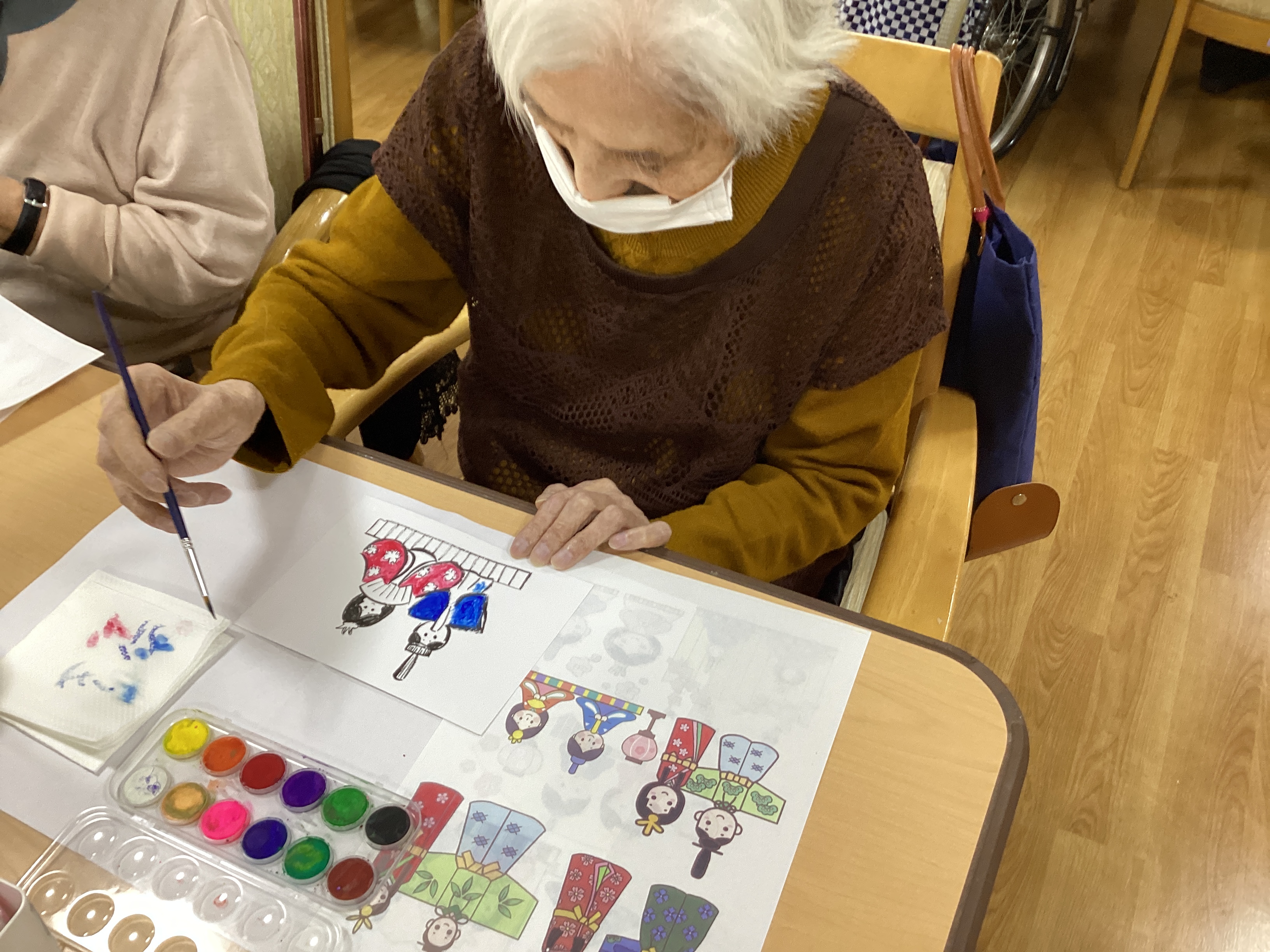 2月20日、水彩画教室を実施しました。絵具を用いて皆さん上手にひな祭りの絵を彩りました。